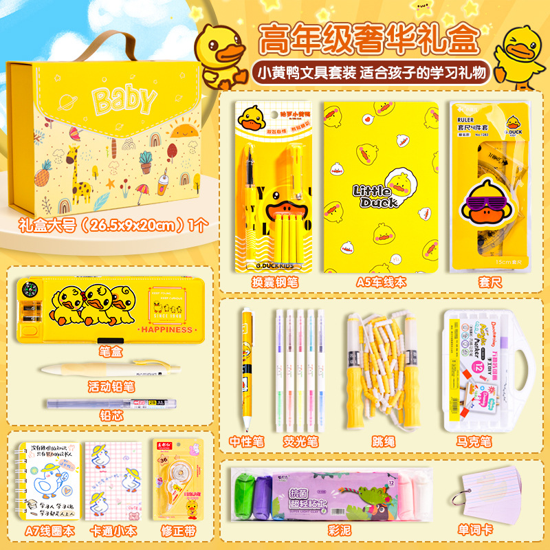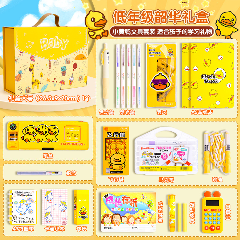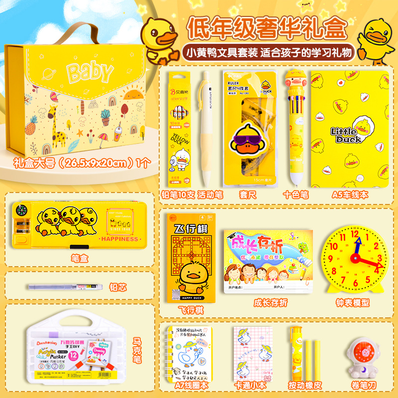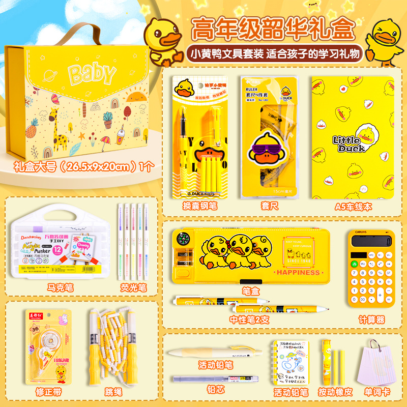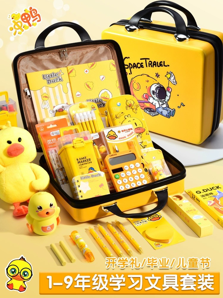 Set Kotak Hadiah Alat Tulis Little Yellow Duck, Perlengkapan Sekolah untuk Siswa SD dan SMP, Paket Hadiah Liburan, Grosir untuk Supermarket, Penting untuk Permulaan Sekolah