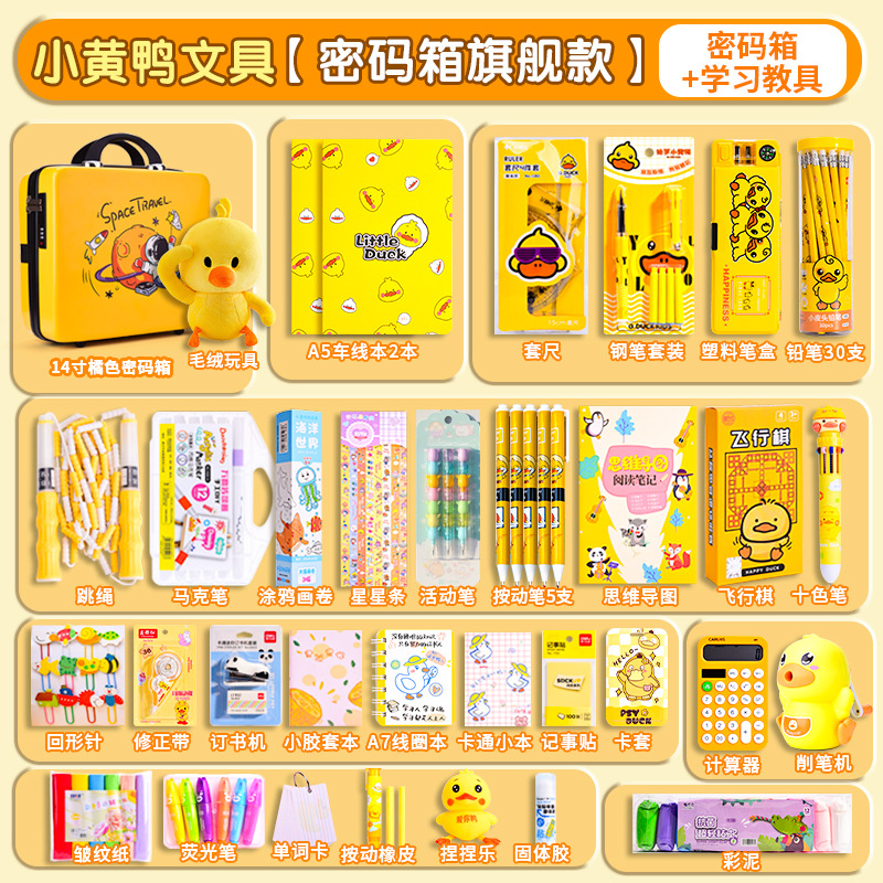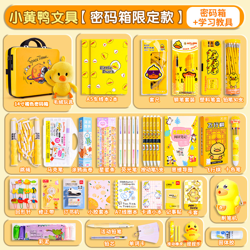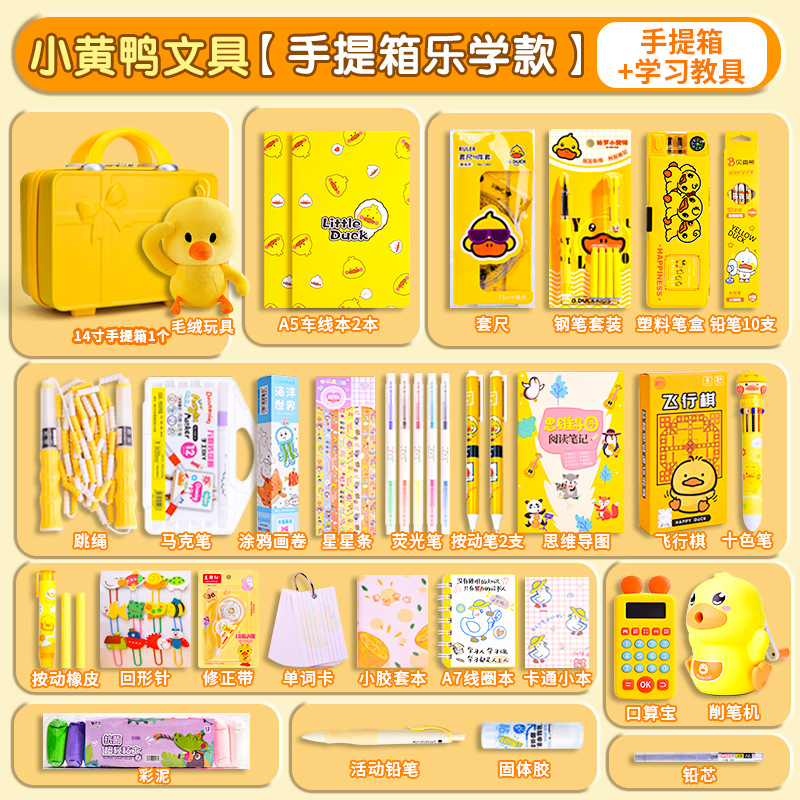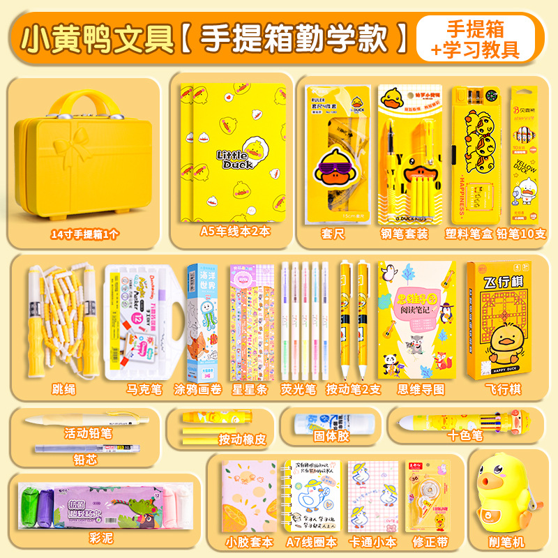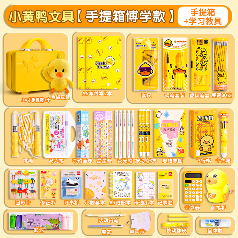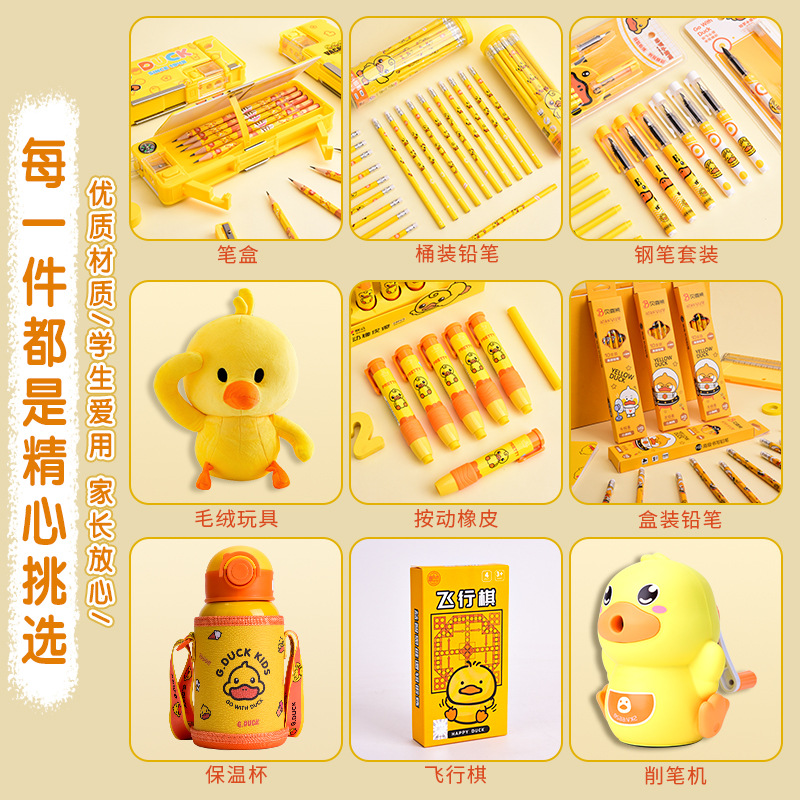 Set Kotak Hadiah Alat Tulis Little Yellow Duck, Perlengkapan Sekolah untuk Siswa SD dan SMP, Paket Hadiah Liburan, Grosir untuk Supermarket, Penting untuk Permulaan Sekolah