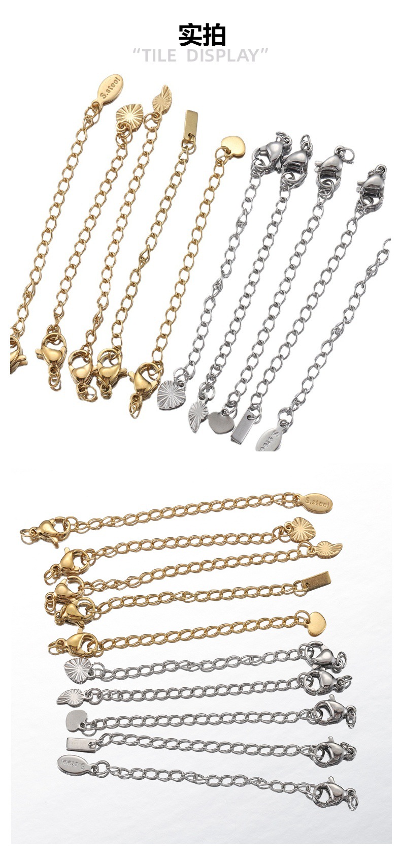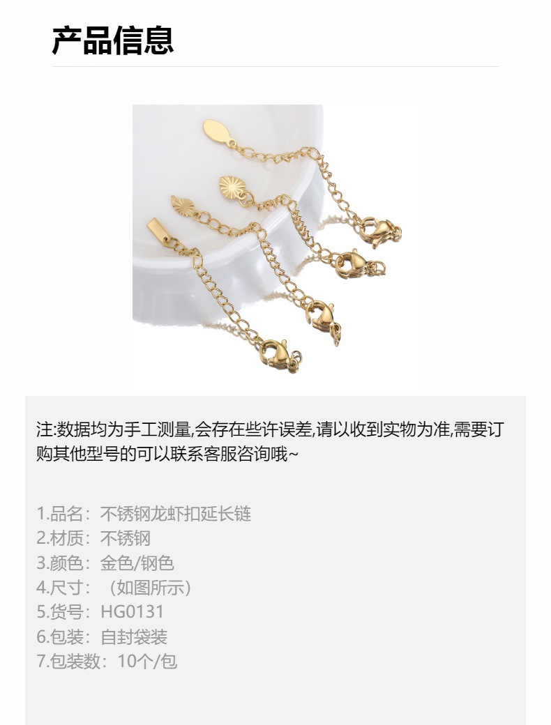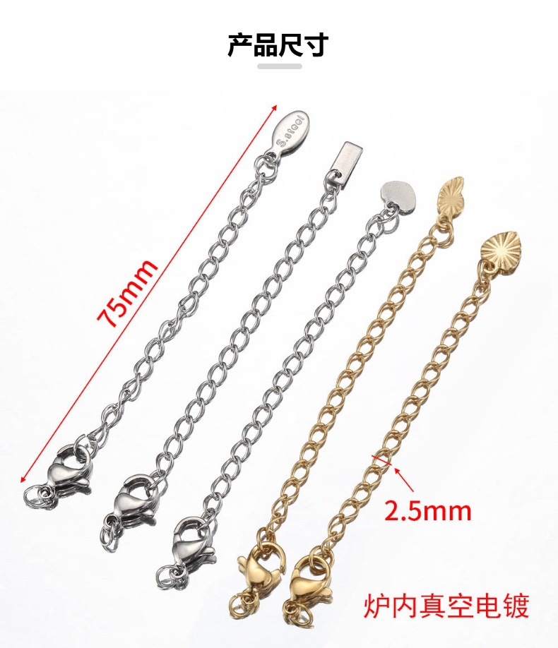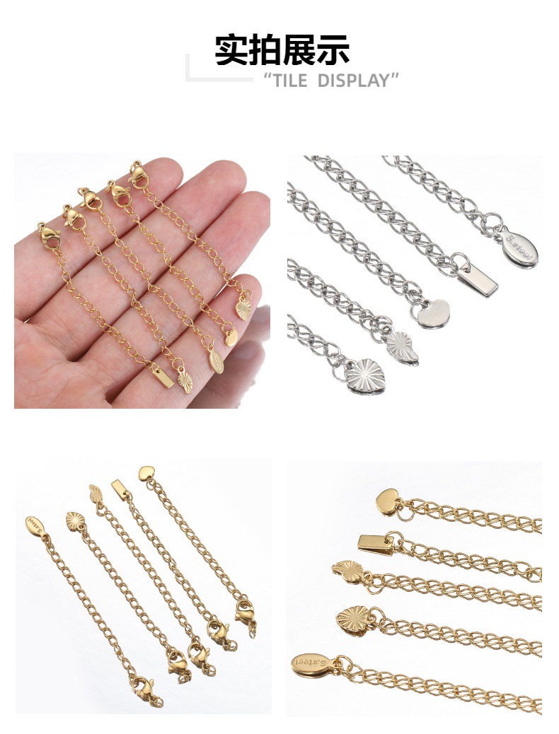 Rantai ekor tag Hati baja tahan karat emas asli 18K Aksesori rantai ekstensi ekor gesper lobster penahan warna baja titanium Aksesori rantai diy