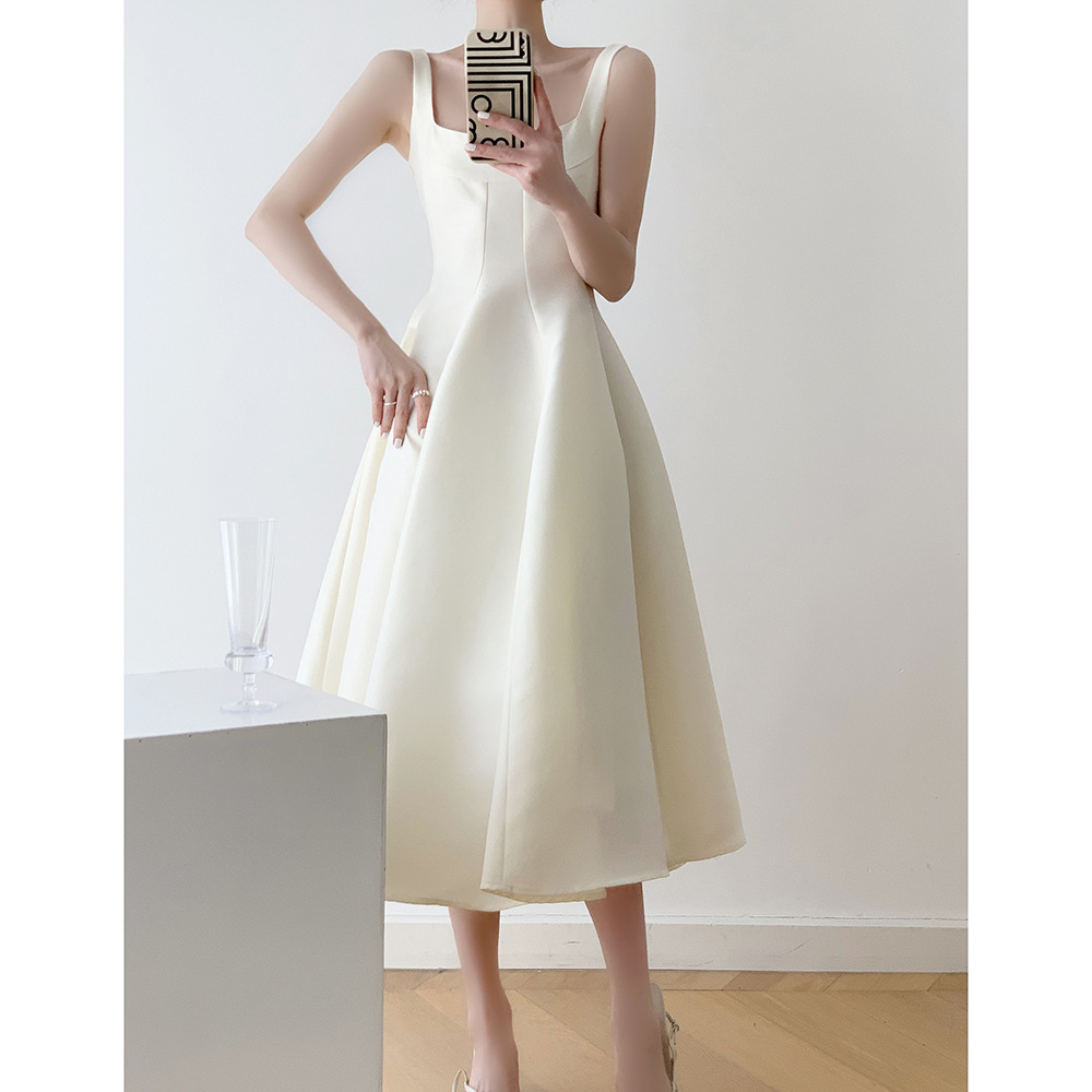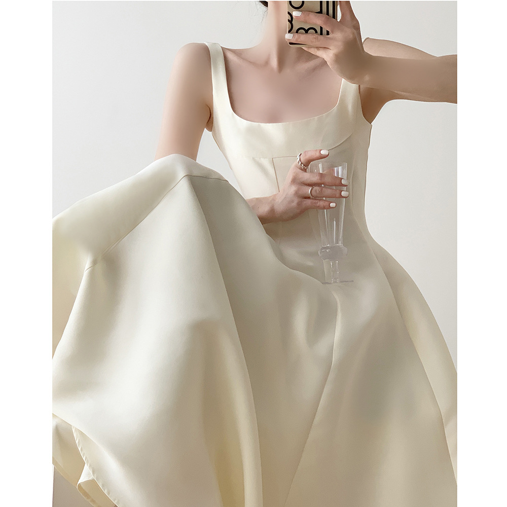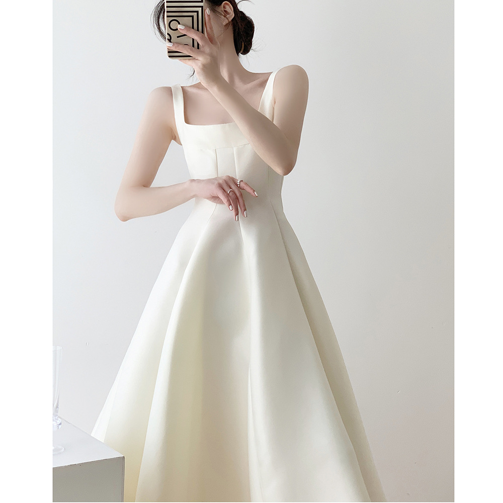 Gaun pernikahan gaya Perancis, warna solid satin sederhana kecil Upacara dewasa pesta perjamuan gaun malam bisa dipakai di waktu biasa