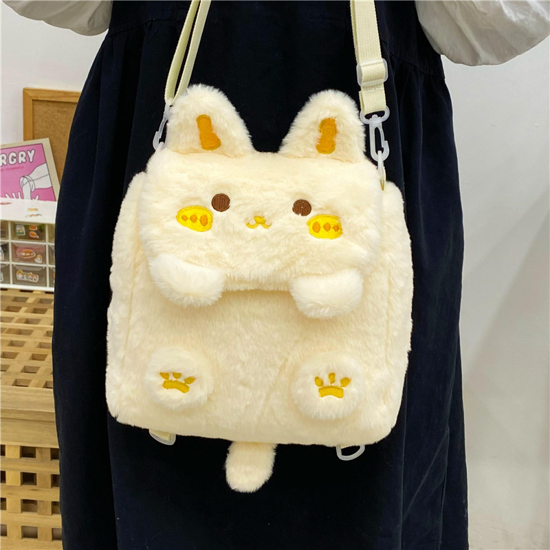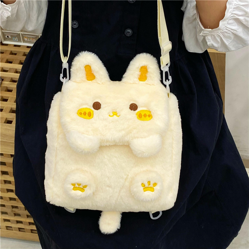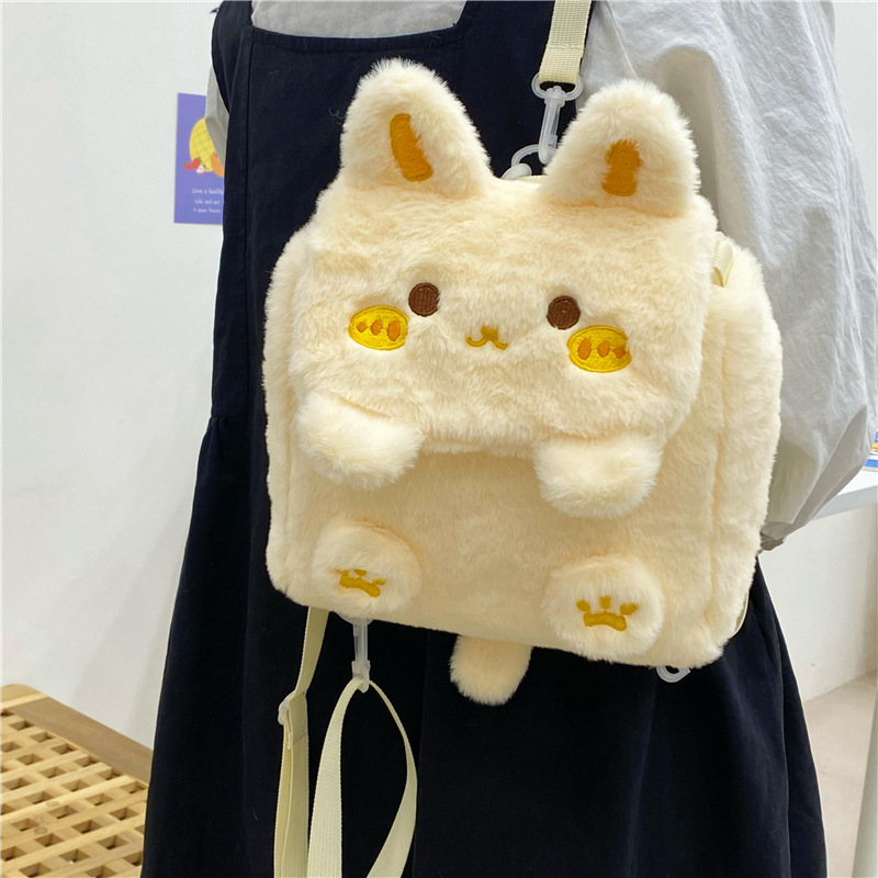 Tas ransel empuk kelinci multifungsi, tas selempang kecil kapasitas besar ringan musim dingin 2024
