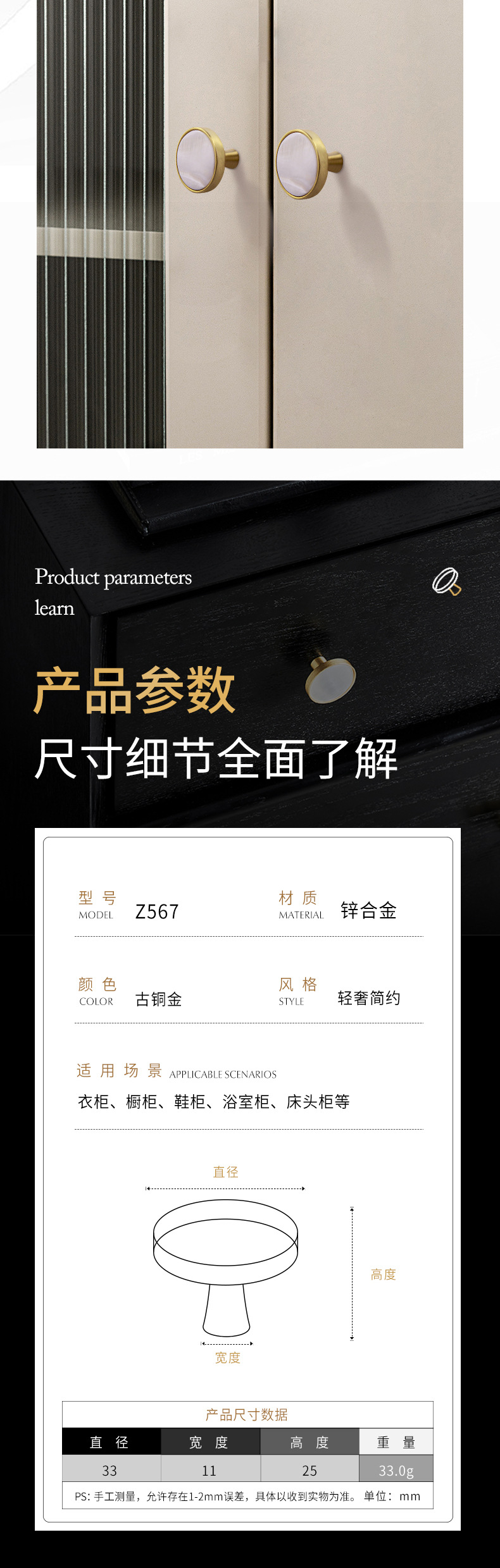 Pegangan pintu kabinet lubang tunggal, aksesori perangkat keras furnitur pegangan kabinet lemari baju logam campuran seng pegangan pintu kabinet lubang bulat