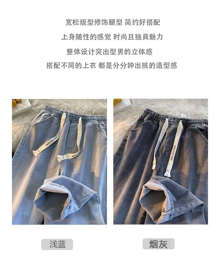 Celana jeans lurus berpinggang elastis dengan tali serut, celana kerja longgar tahan lama ukuran besar untuk pria, celana kerja lebar.