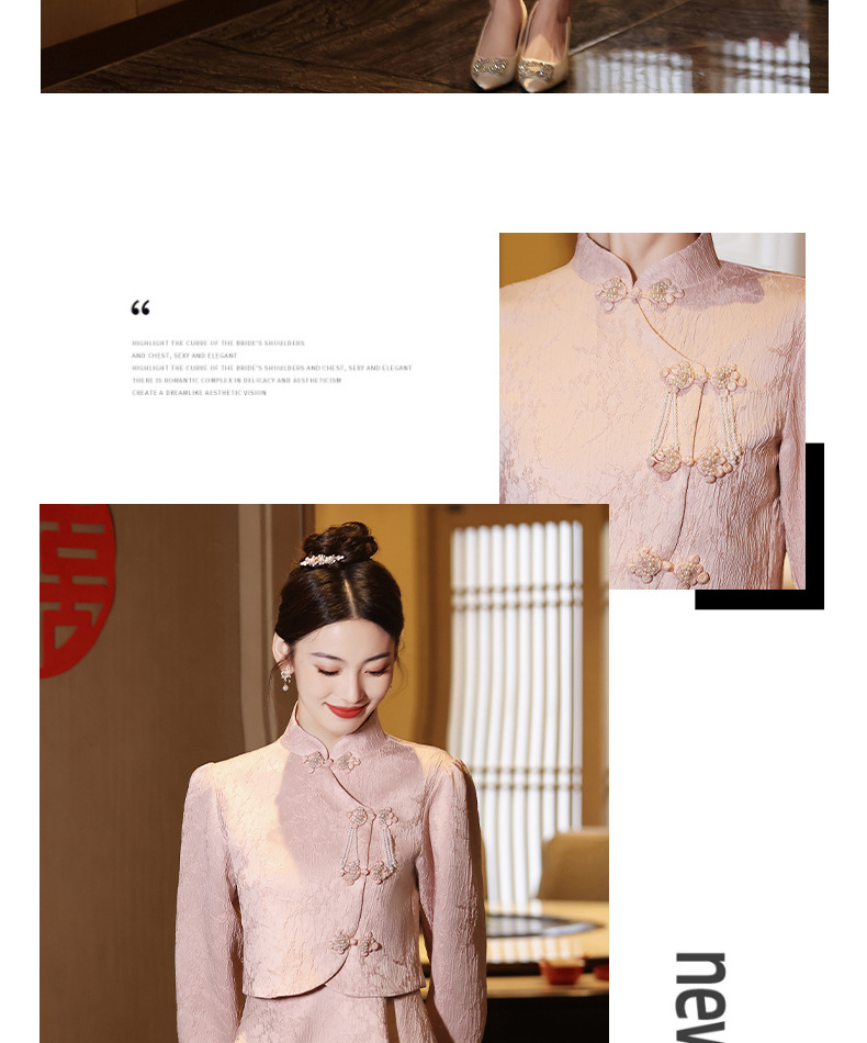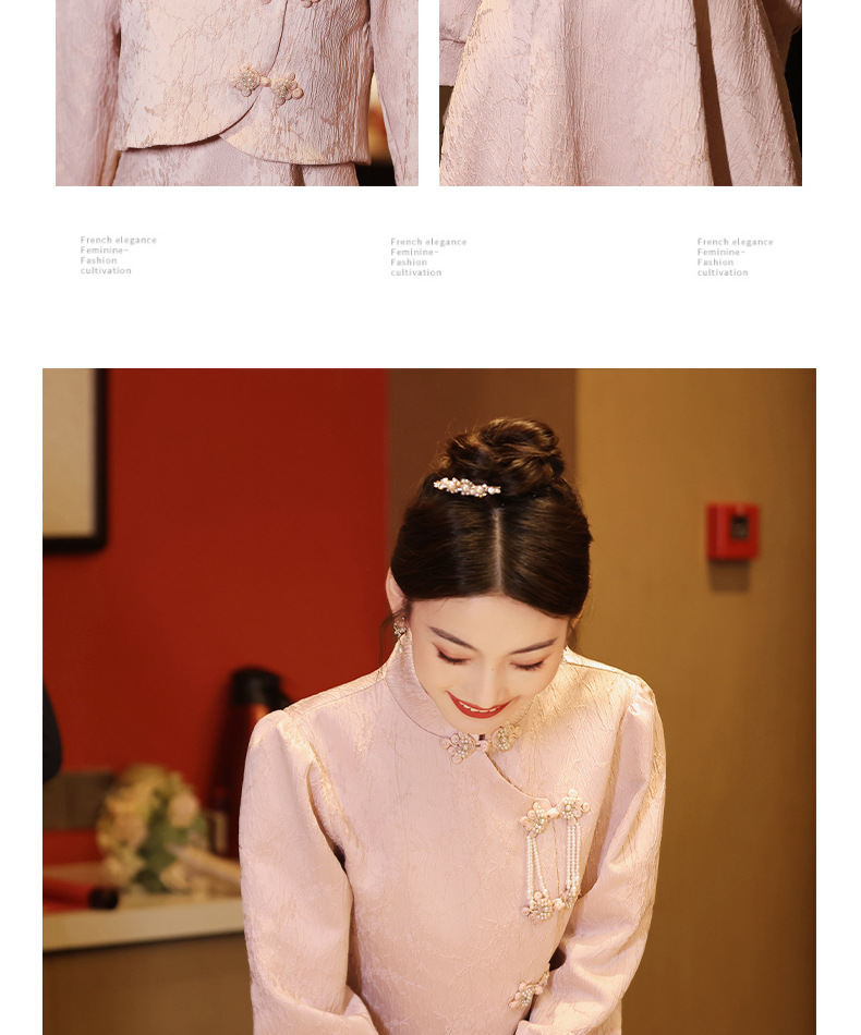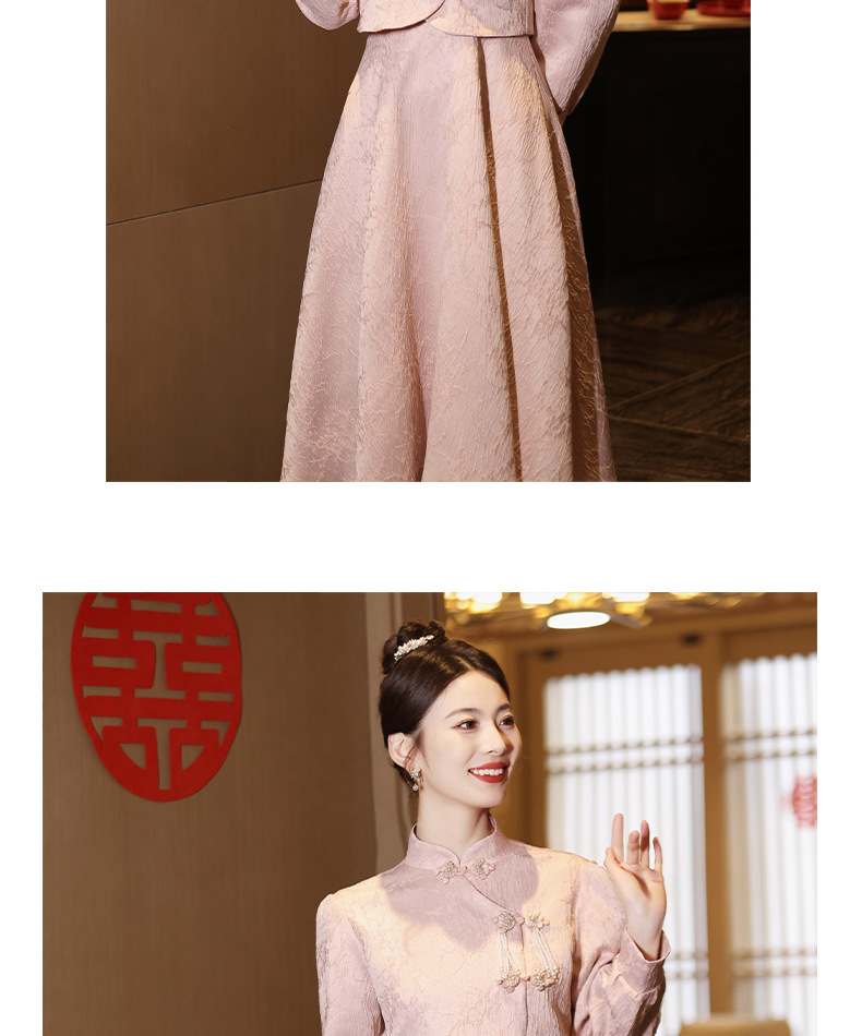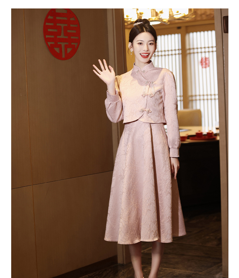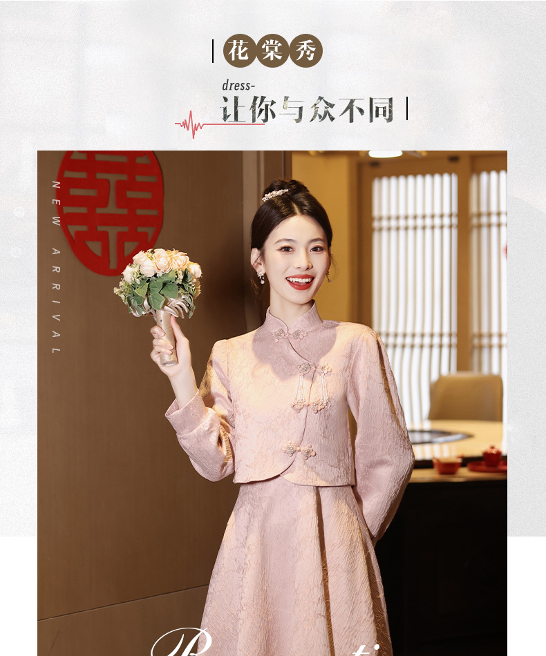 Gaun pengantin qipao merah muda untuk pengantin wanita, setelan dua potong gaya baru 2026, gaun pertunangan gaya Cina baru untuk wanita bertubuh mungil, gaun homecoming.