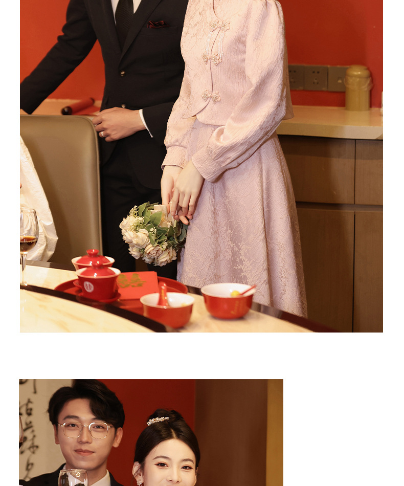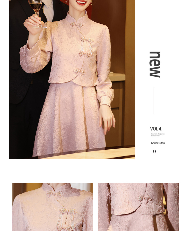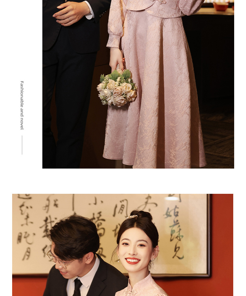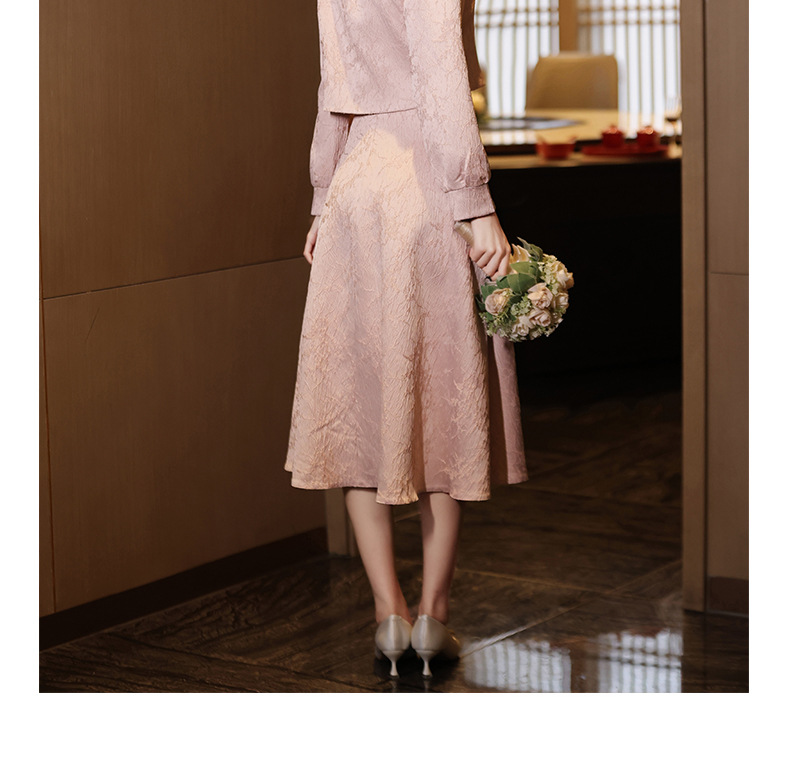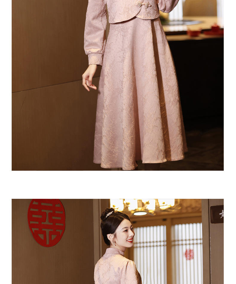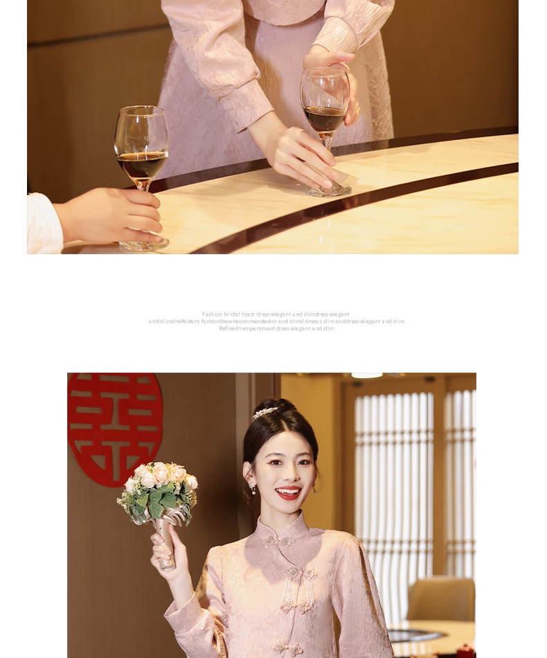 Gaun pengantin qipao merah muda untuk pengantin wanita, setelan dua potong gaya baru 2026, gaun pertunangan gaya Cina baru untuk wanita bertubuh mungil, gaun homecoming.