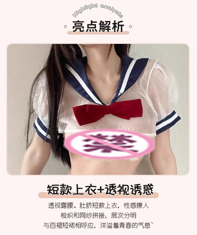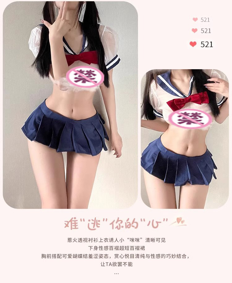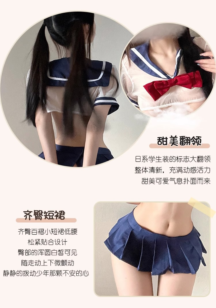 Pakaian dalam seksi, seragam seksi, rok pendek JK pelajar, produk QQNY, set pesona tengah malam yang mudah dilepas.