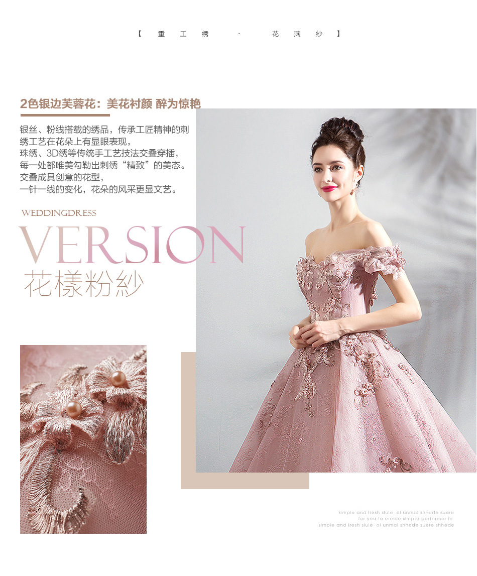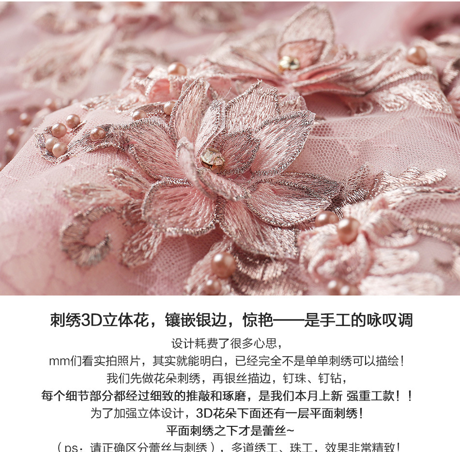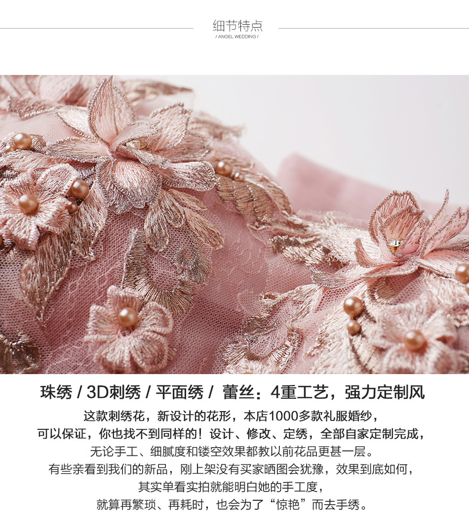 Gaun malam benang warna-warni dengan bunga merah muda untuk pengantin, gaun pesta pernikahan gaya baru 2026, penampilan panggung, gaun pernikahan ujian seni.