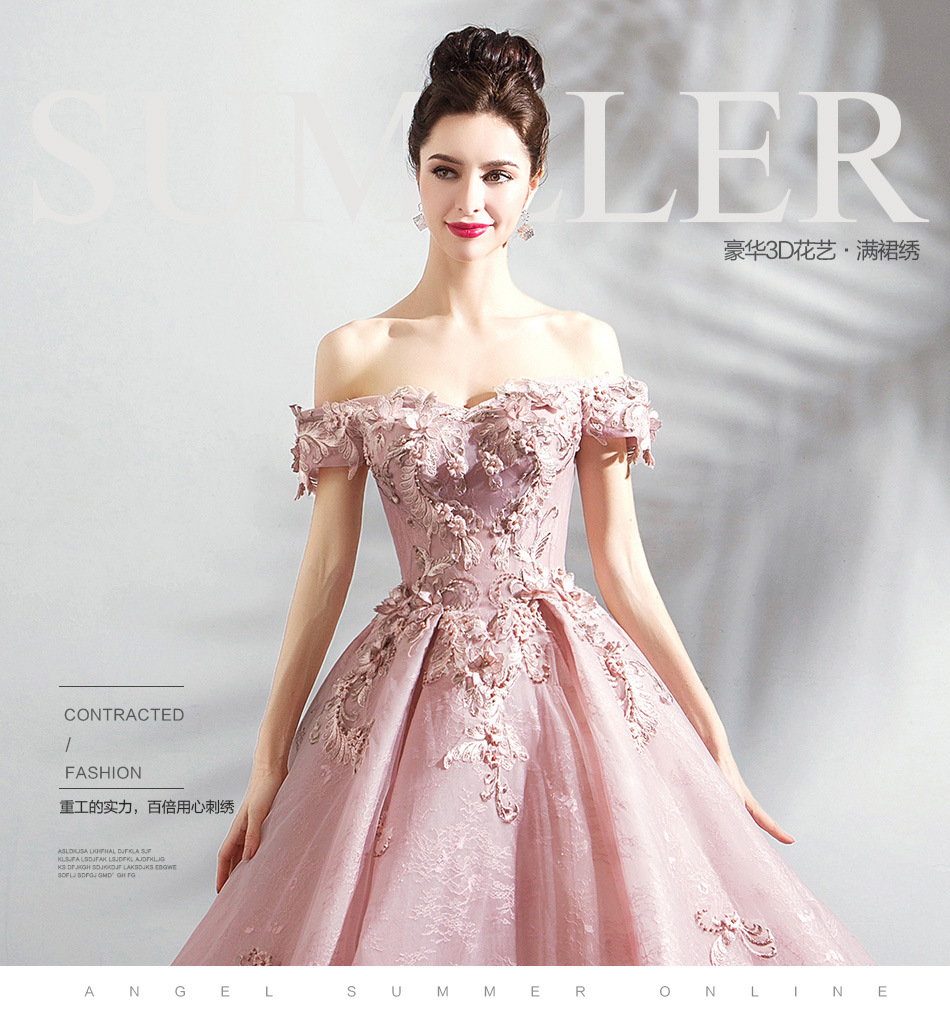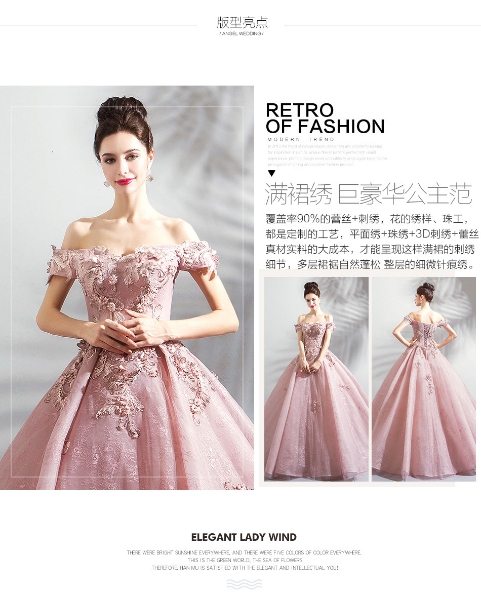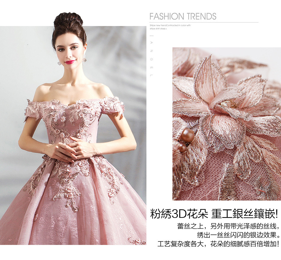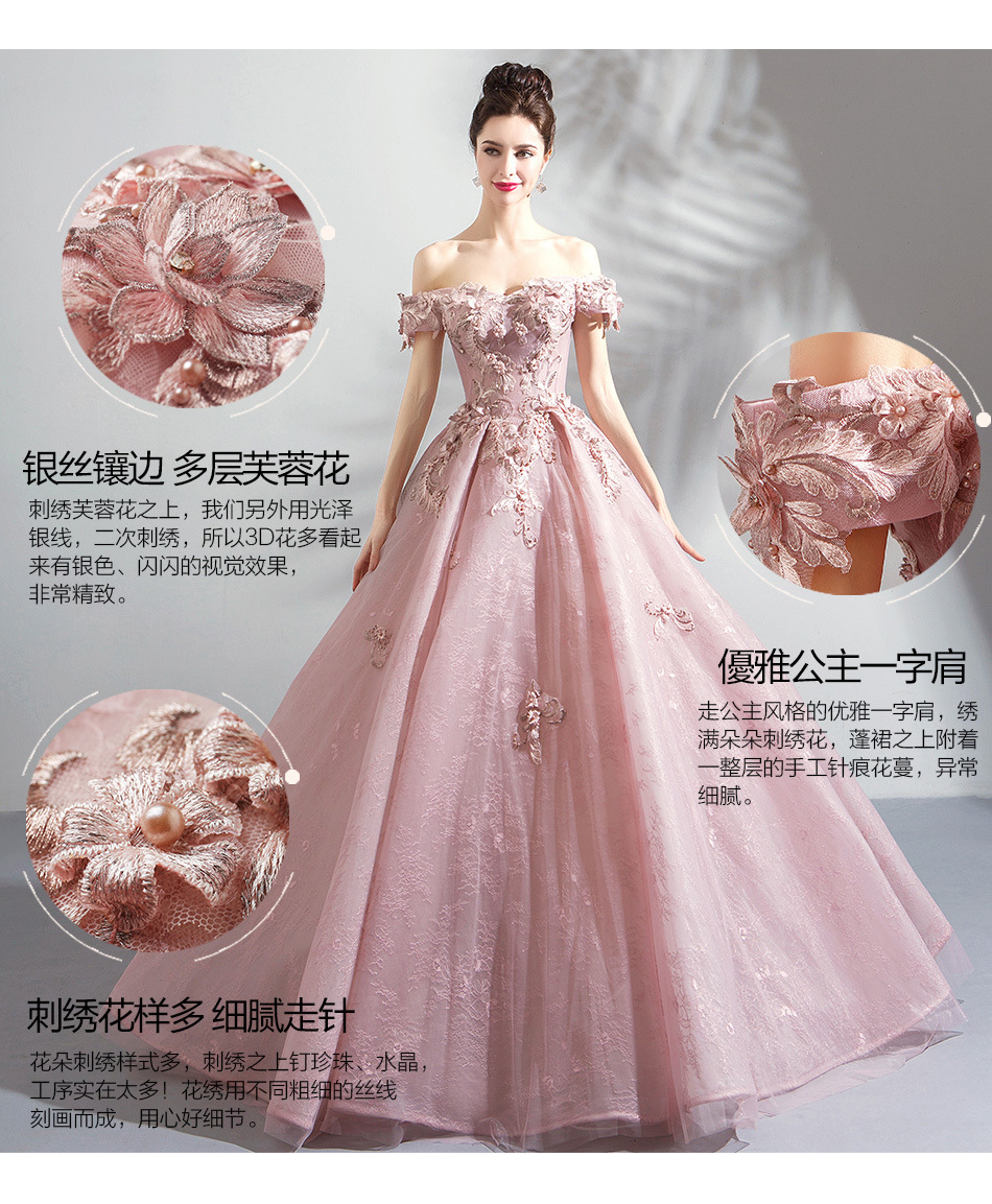 Gaun malam benang warna-warni dengan bunga merah muda untuk pengantin, gaun pesta pernikahan gaya baru 2026, penampilan panggung, gaun pernikahan ujian seni.