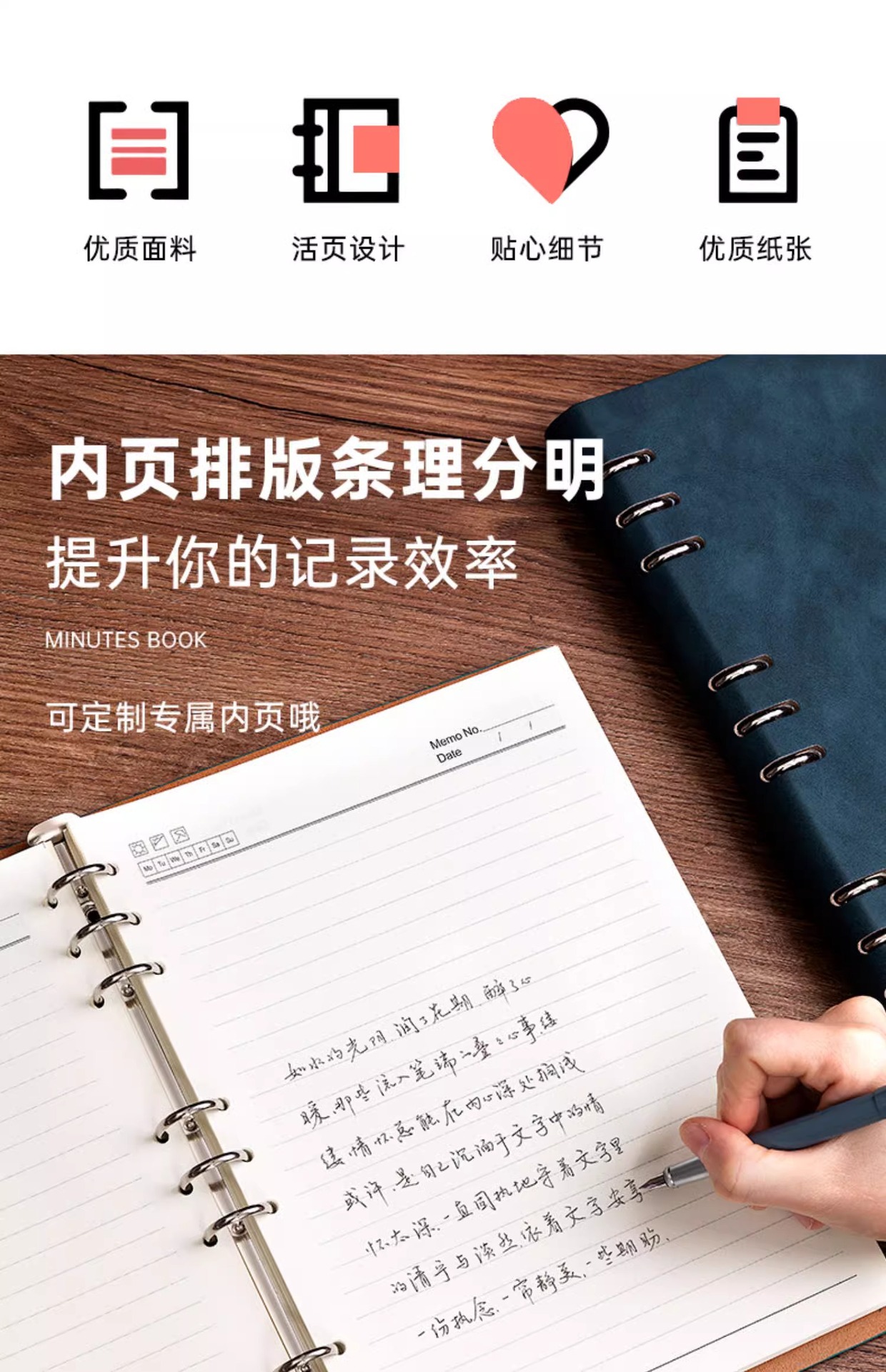 Buku catatan lepas A4 lintas batas, buku catatan rapat kantor bisnis 2026 yang dapat dilepas, notepad B5 tebal kelas atas.