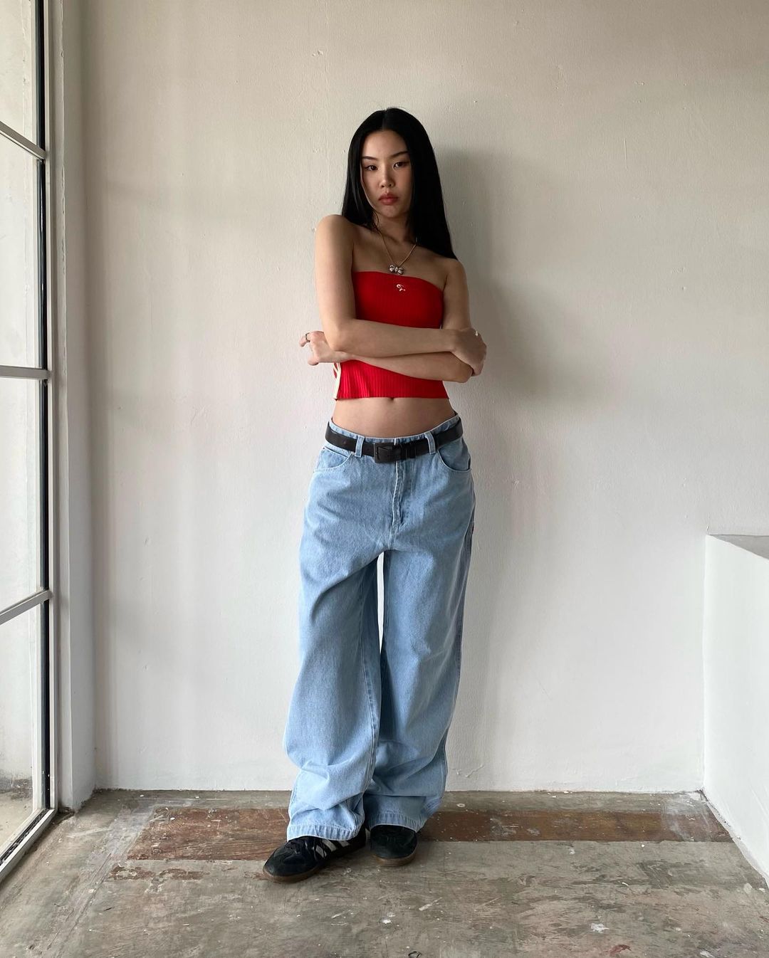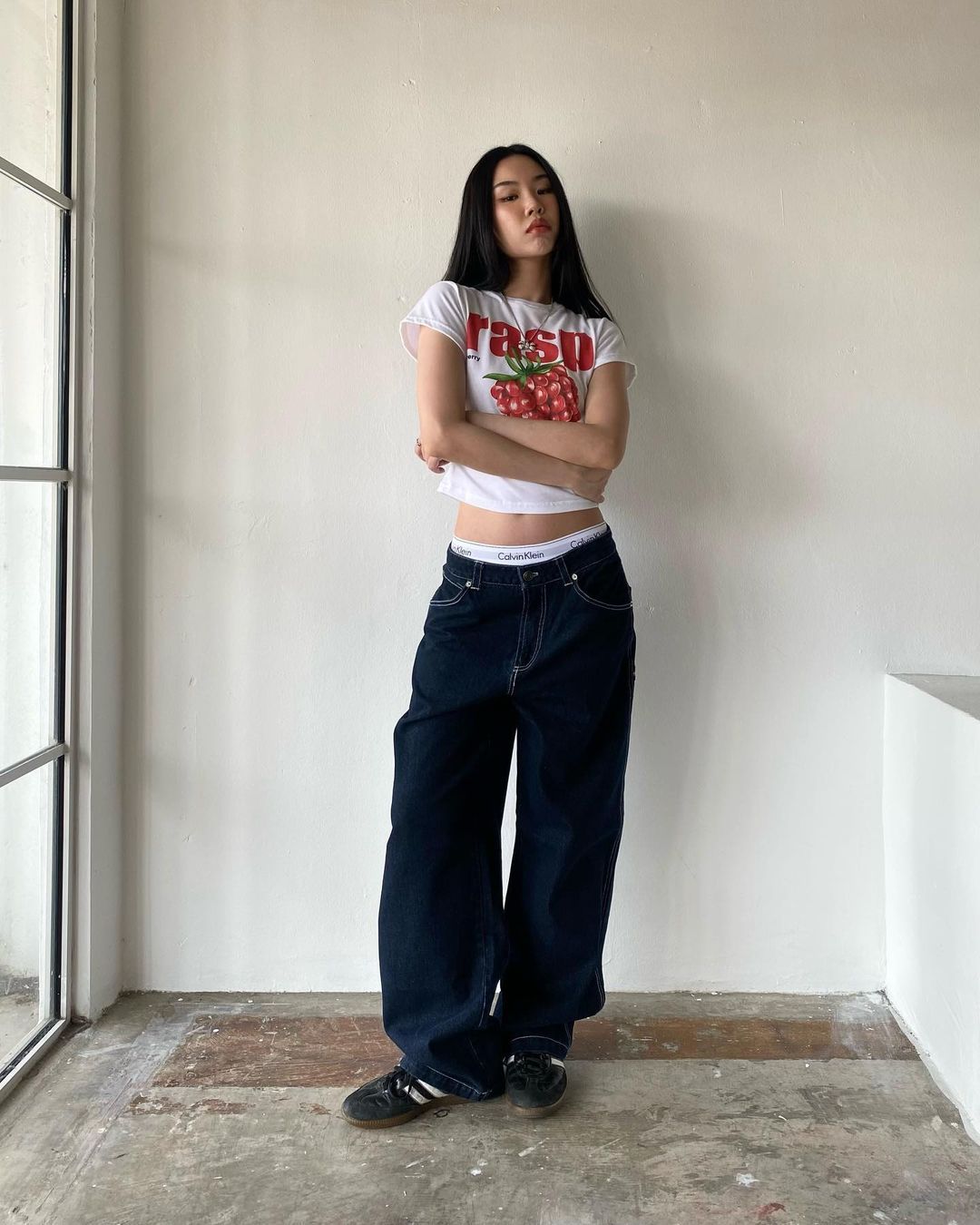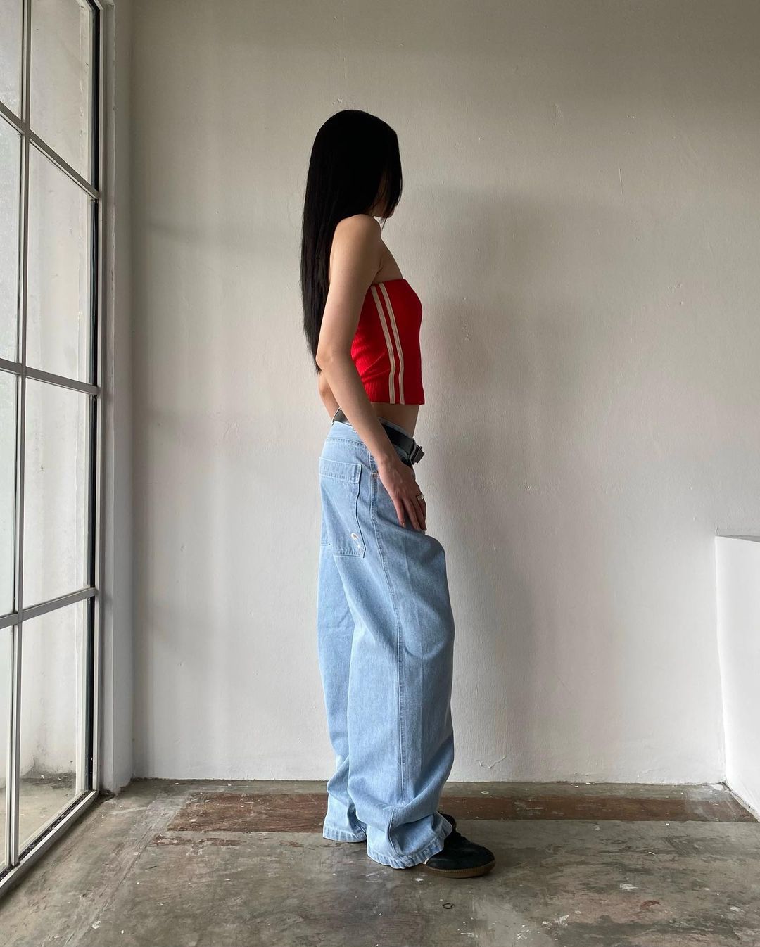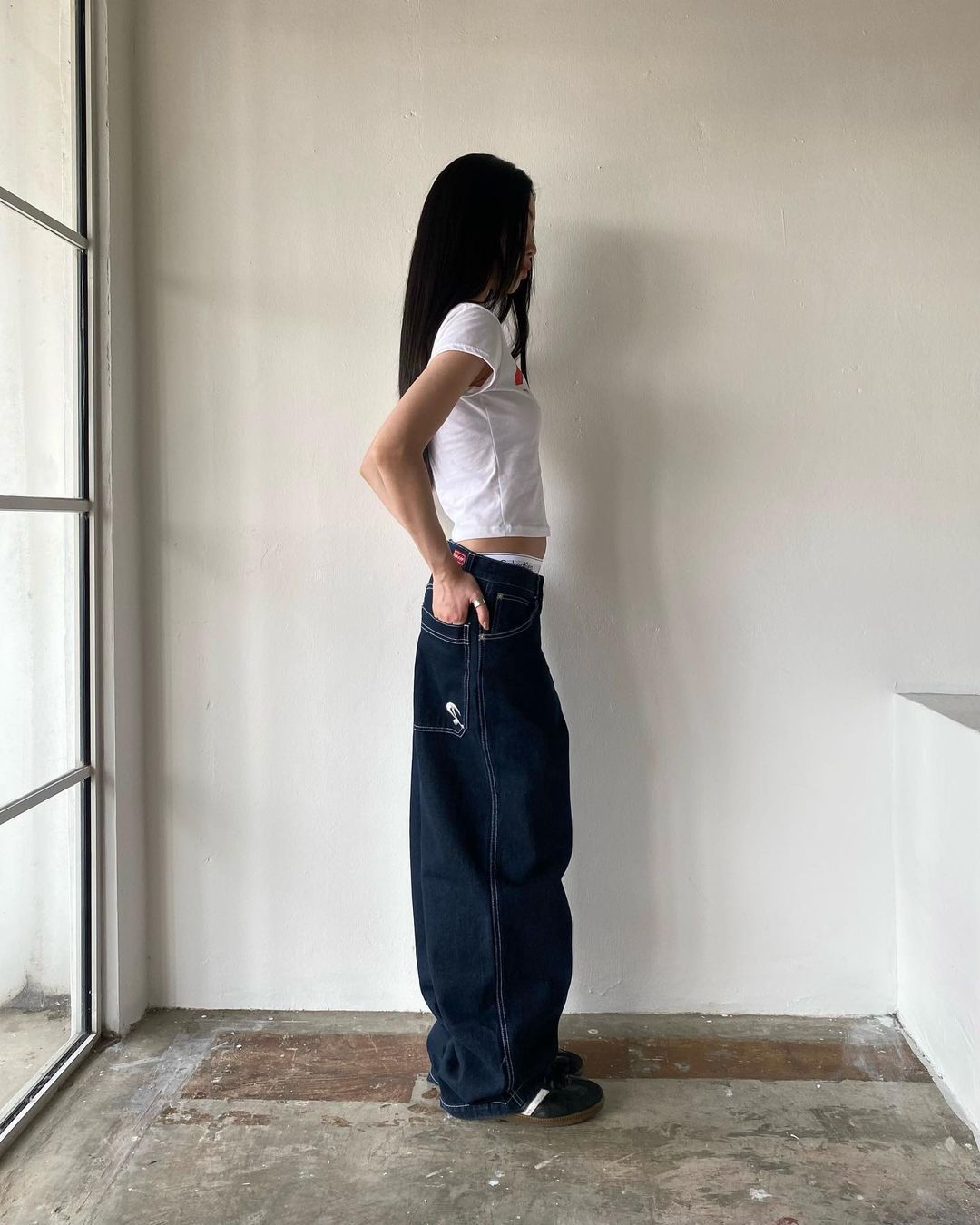 Celana panjang Denim kasual jalanan Amerika kaus kaki lebar ramping longgar Semua cocok berbordir wanita populer modis