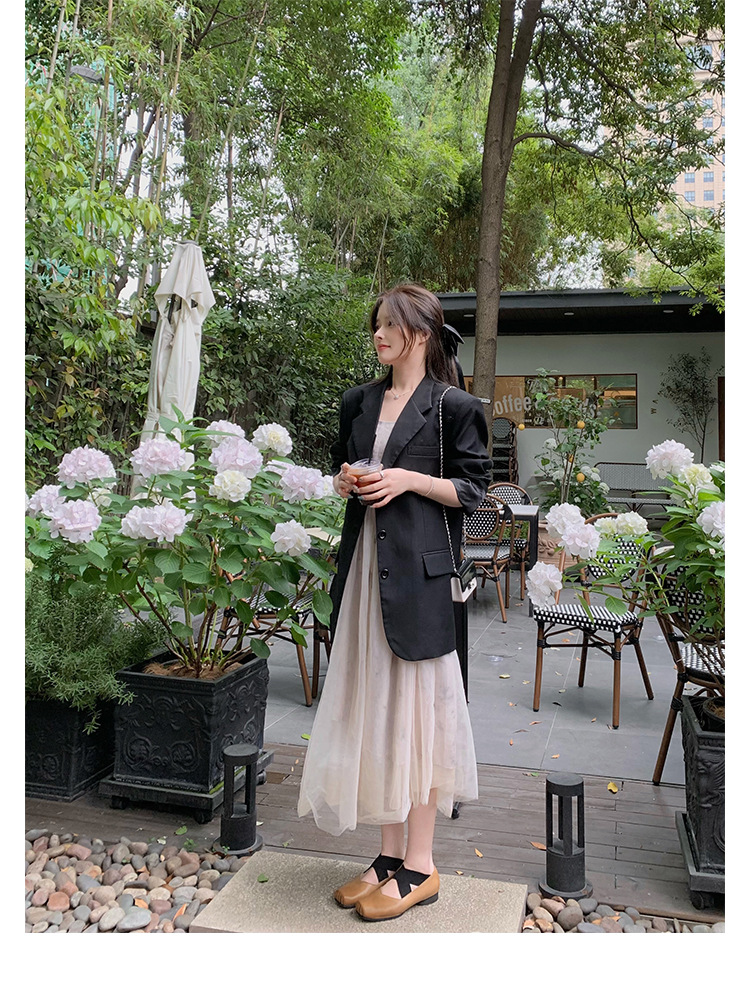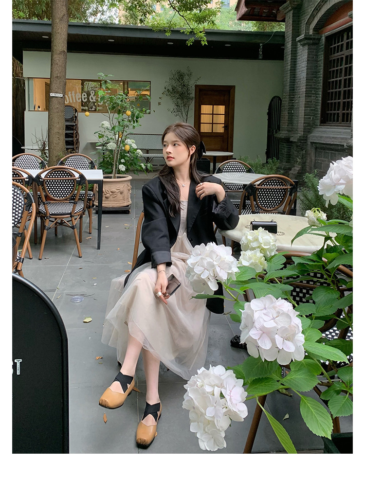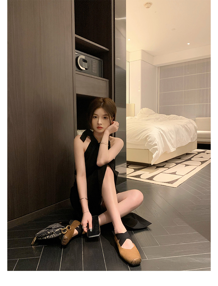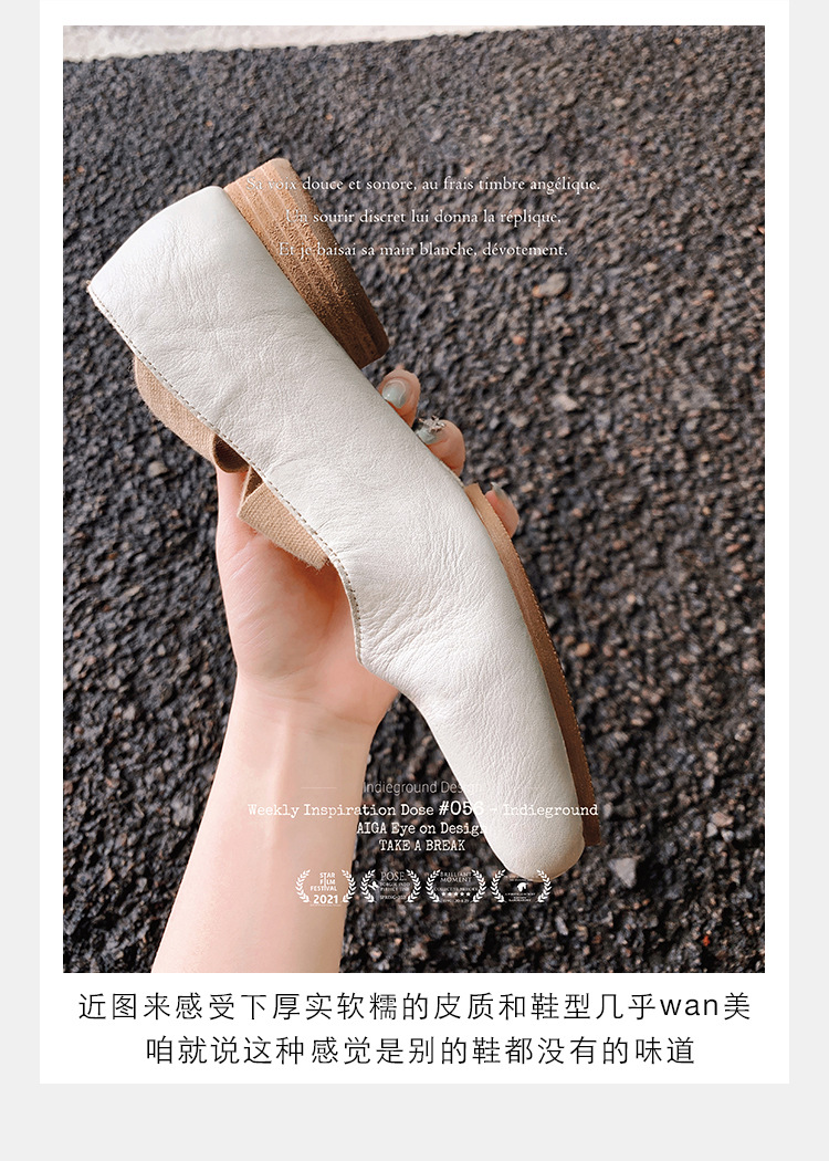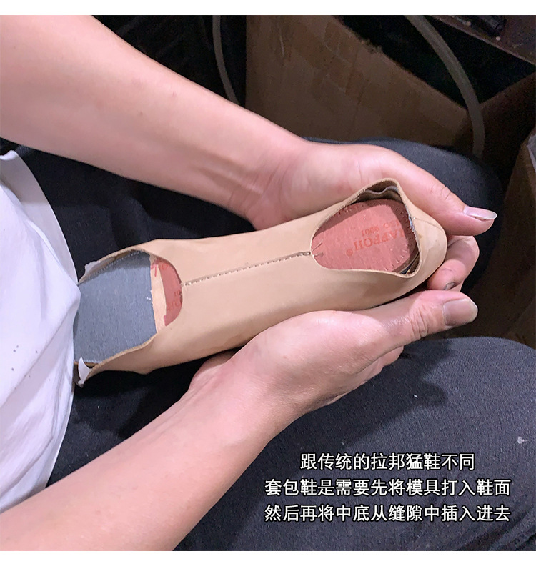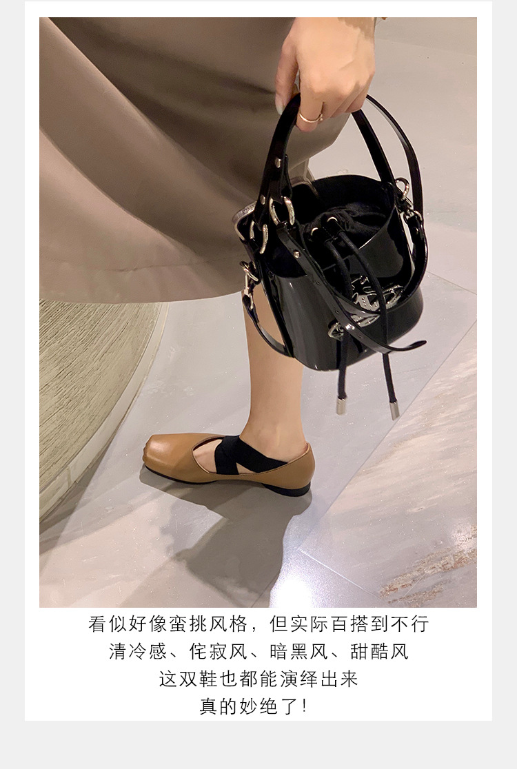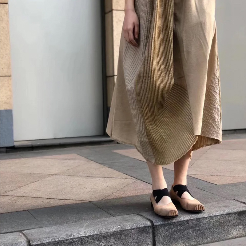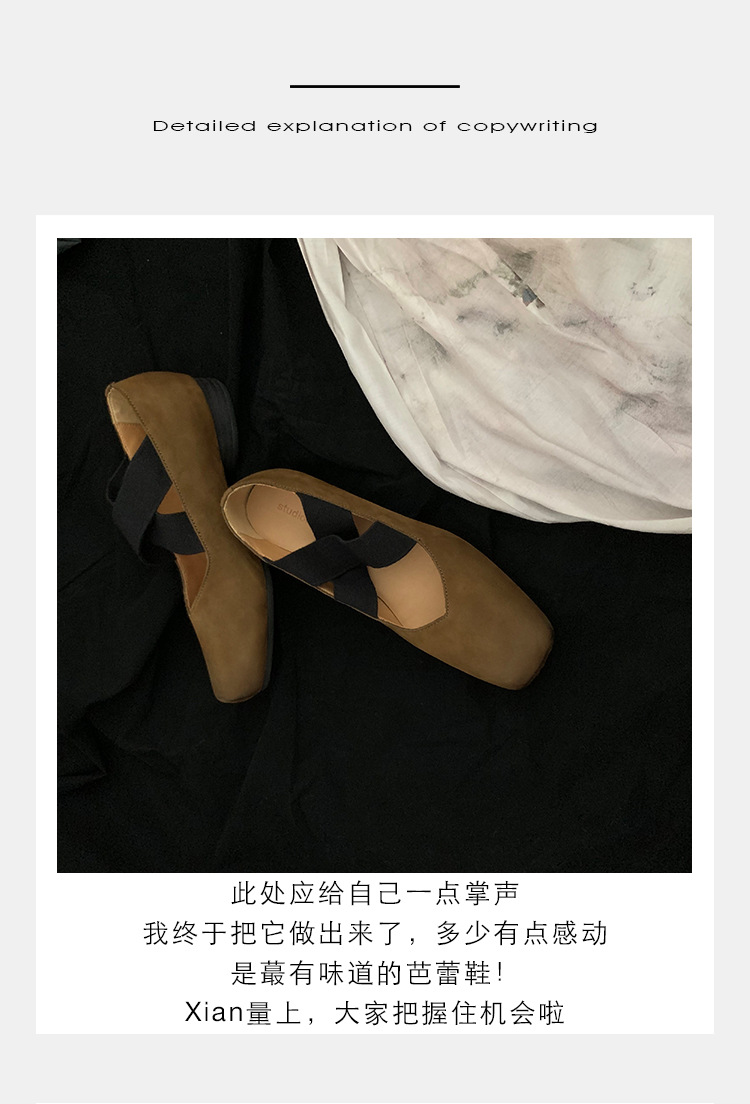 Sepatu lapisan tunggal sepatu balet wanita kulit asli ujung persegi retro Prancis tali silang mulut dangkal sepatu hidung babi sol lembut sepatu Mary Jane