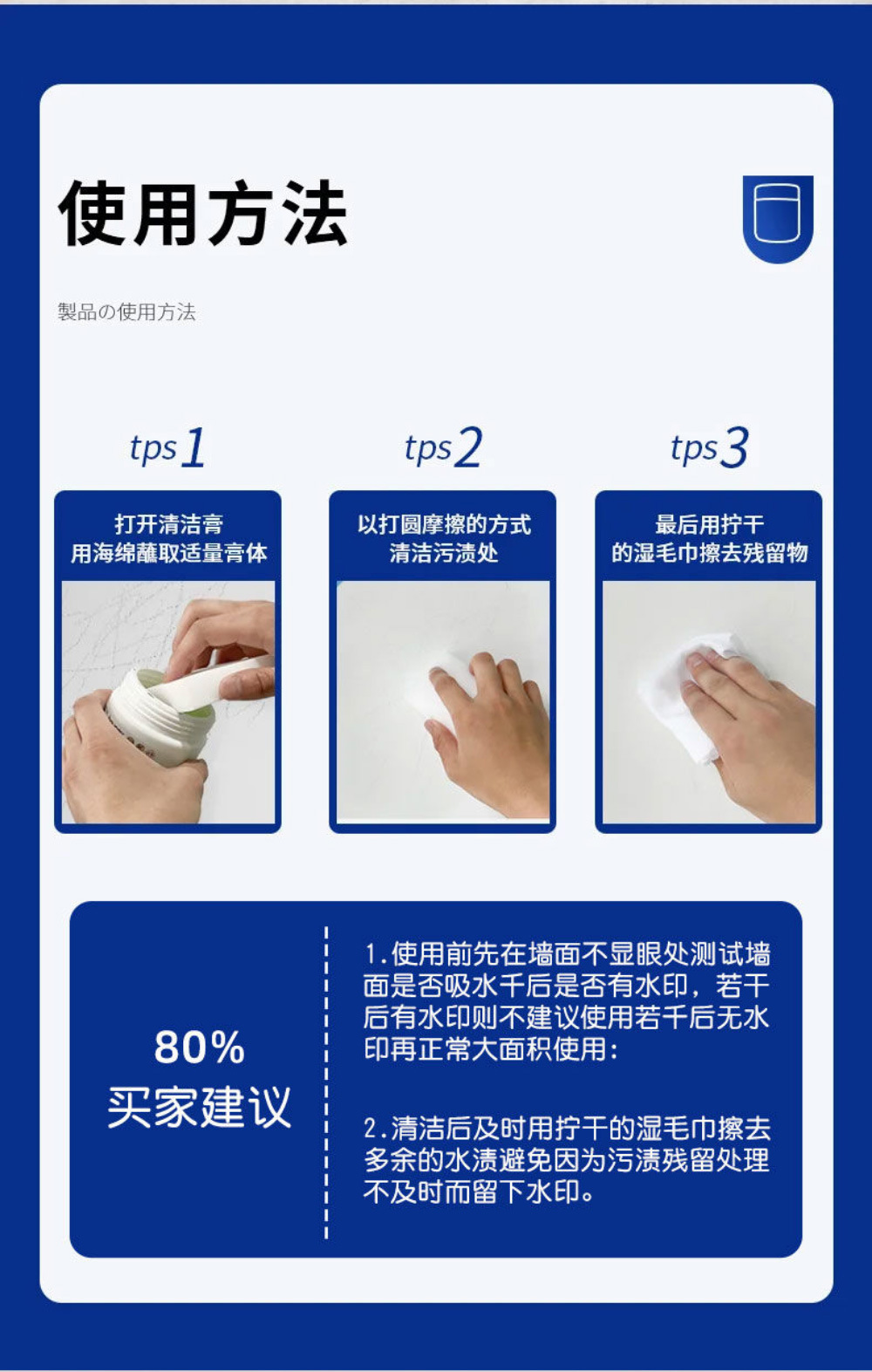 Krim reparasi dinding, krim pembersihan dinding, grafiti putih perbaikan dinding, artefak dekontaminasi tahan kelembaban dan anti jamur, Krim reparasi rumah tangga