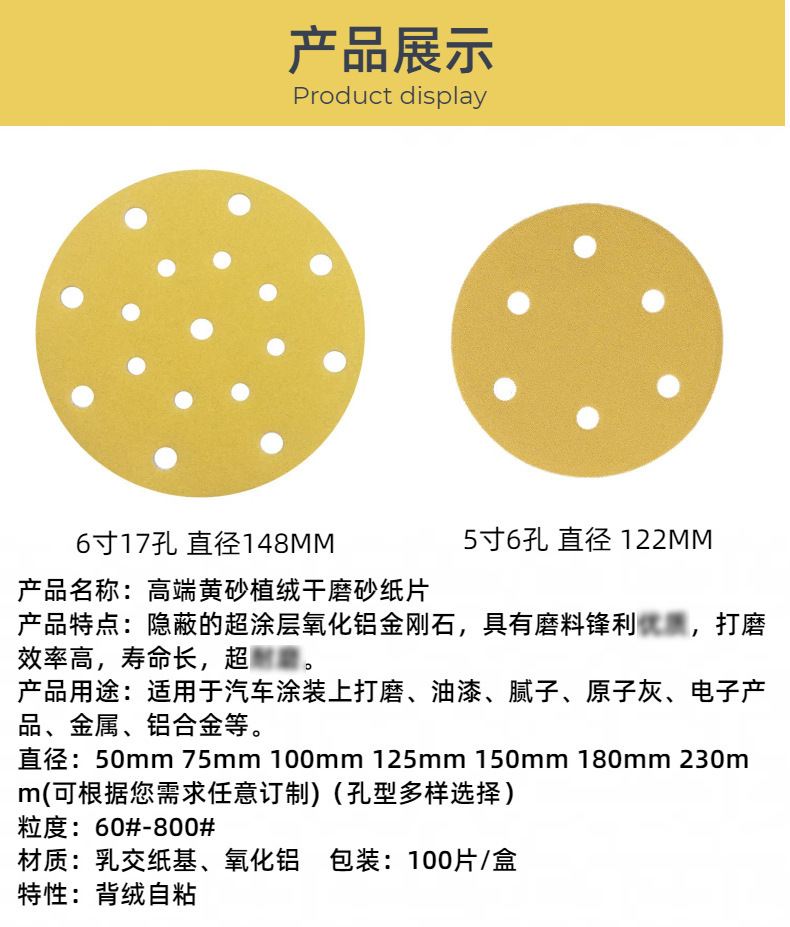 6-inch 17-lubang 5-inci 6-lubang kembali beludru amplas 150mm cat mobil berminyak poles amplas kering grinding pasir kuning amplas