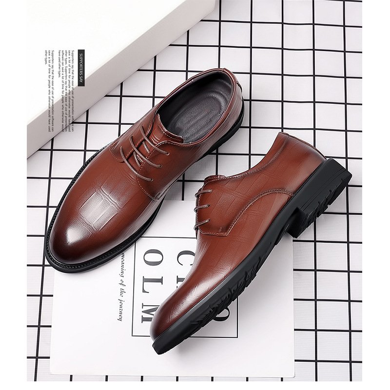 Sepatu kulit formal bisnis kulit pria, Kasut Inggris ujung lancip kasual musim semi dan panas untuk lelaki