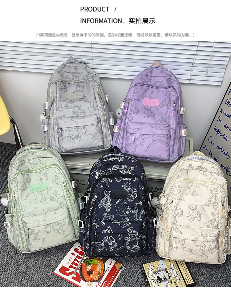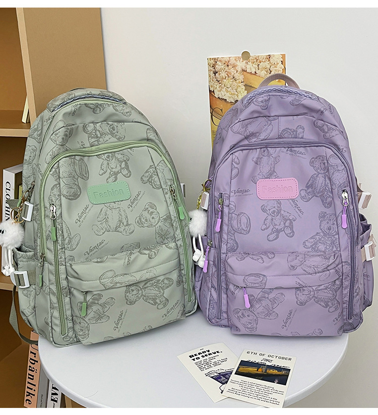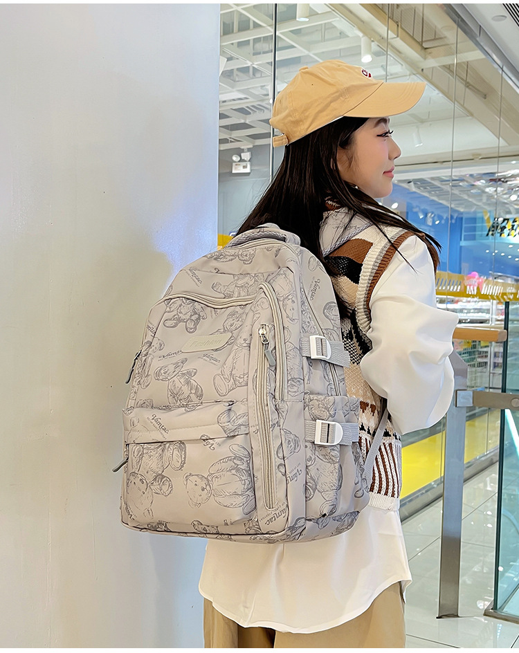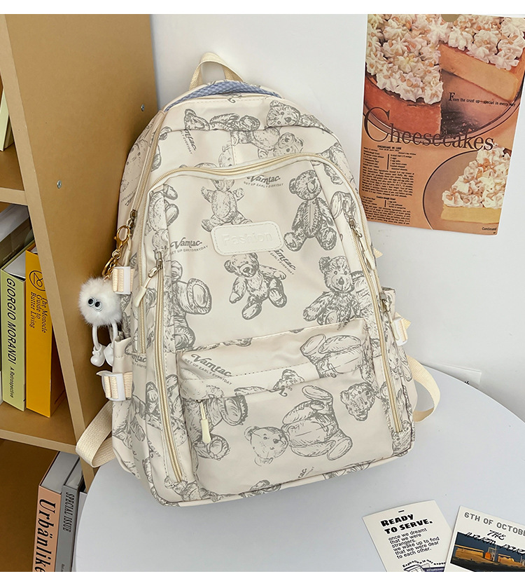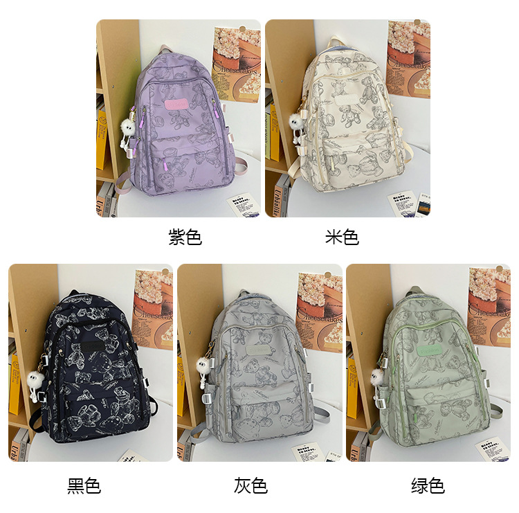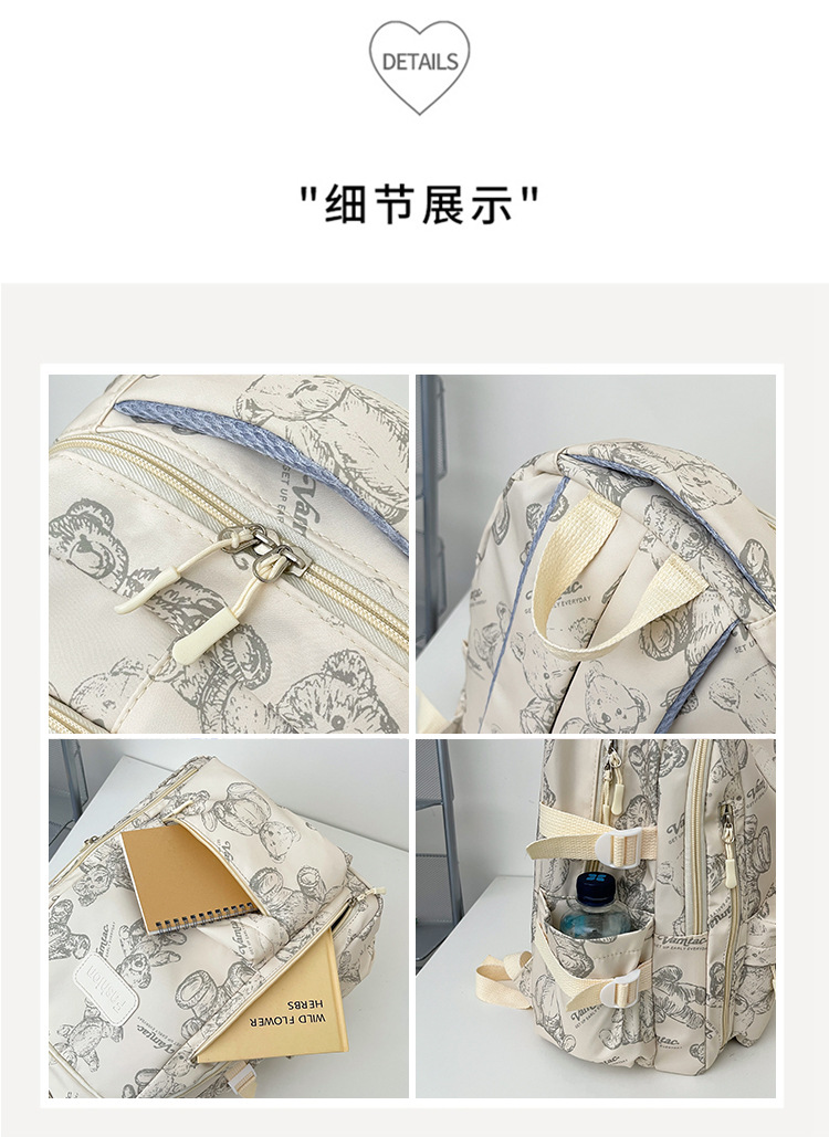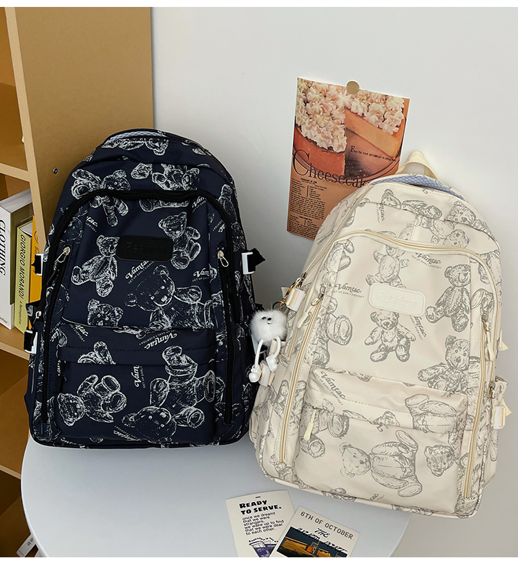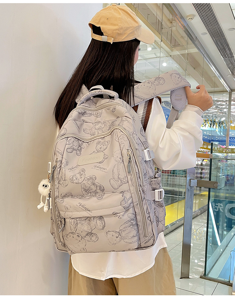 新款高颜值书包简约包包女大学生大容量背包休闲运动小熊印花双背