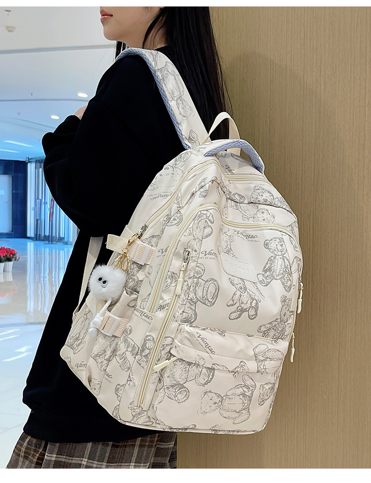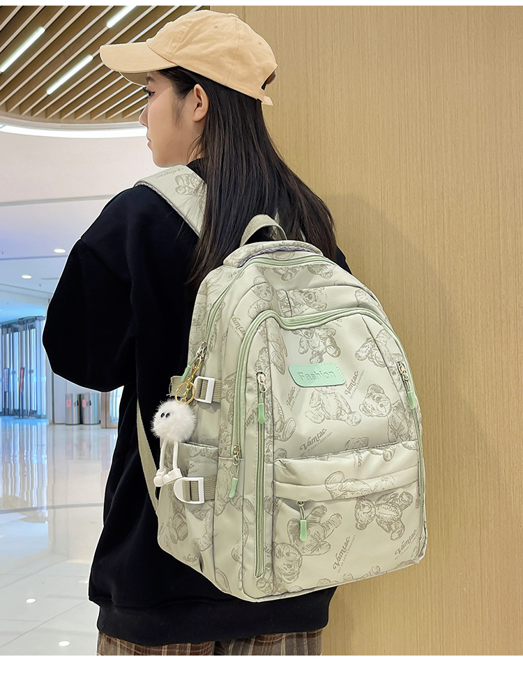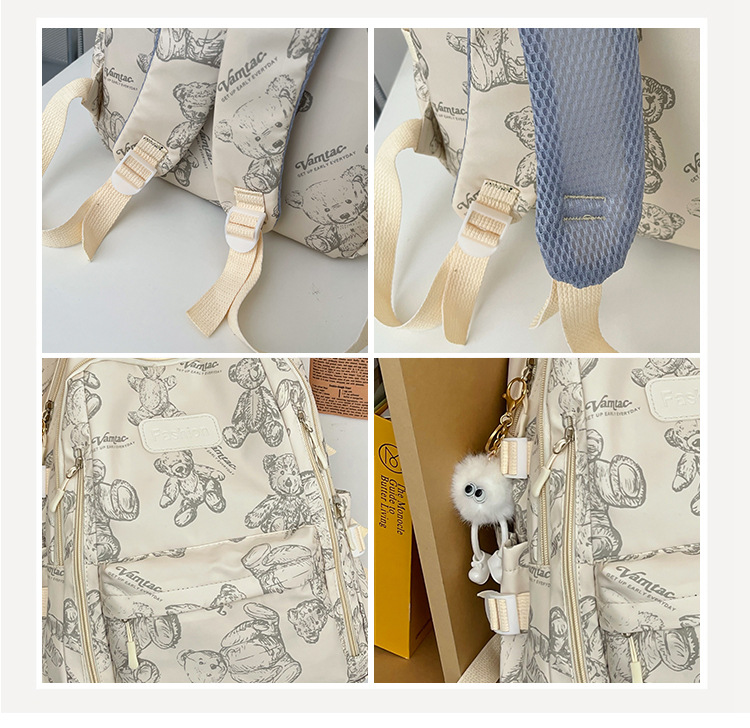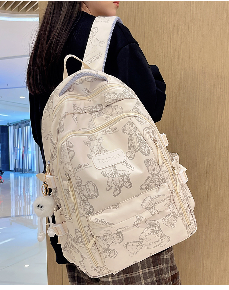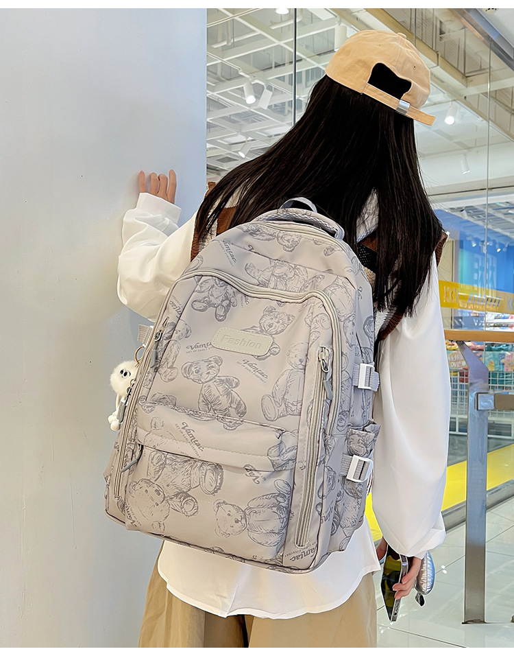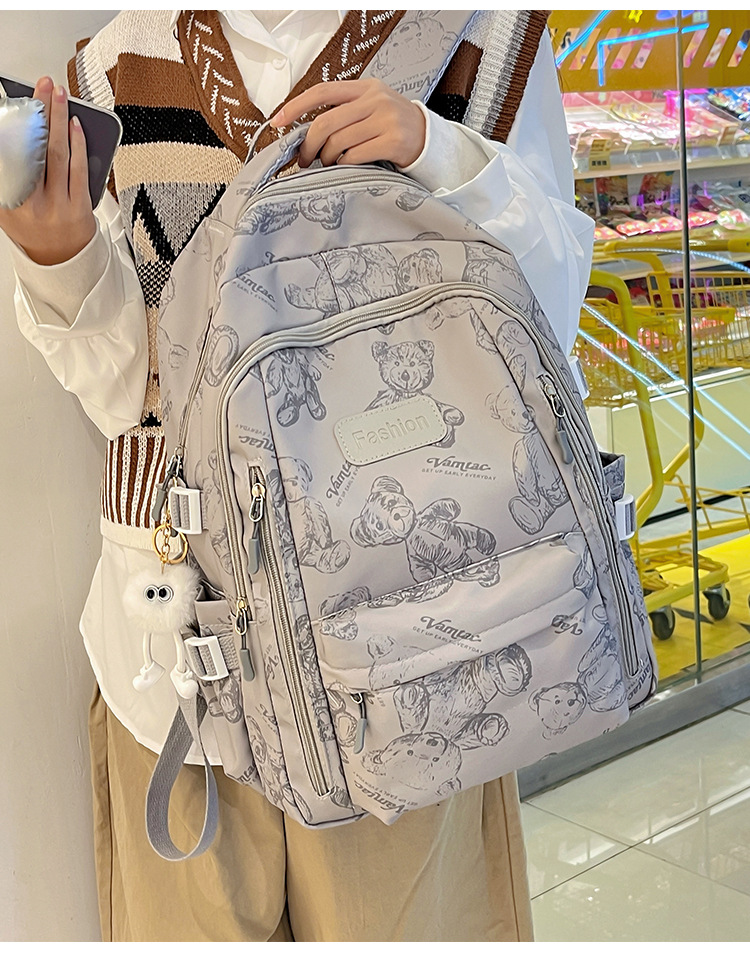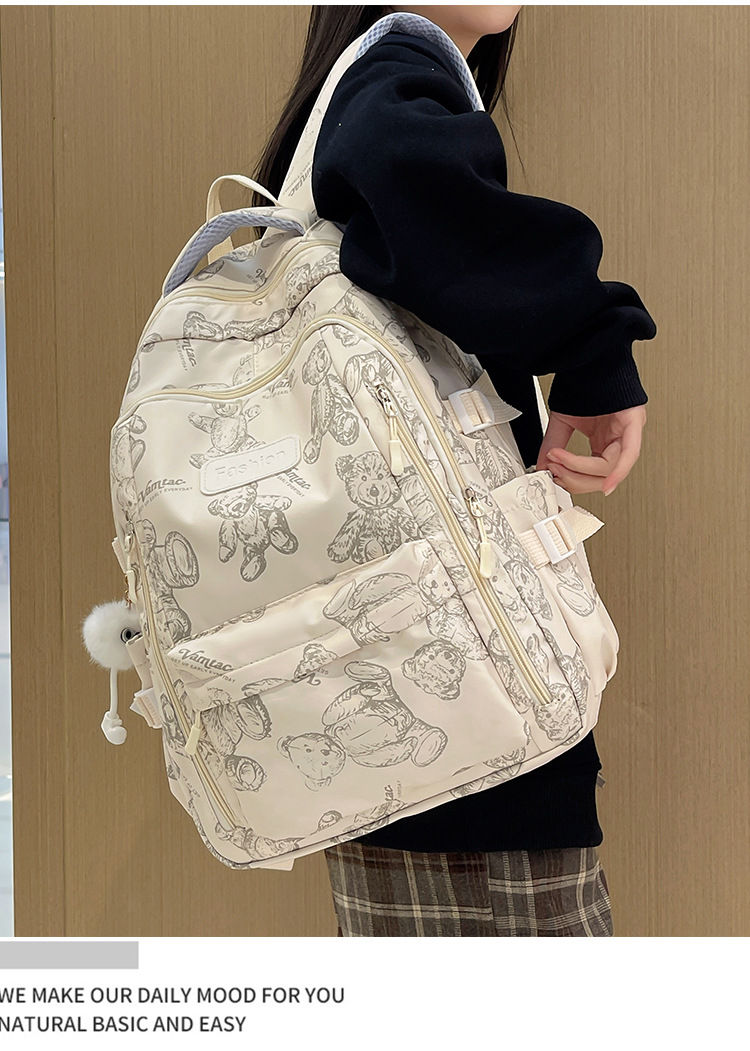 新款高颜值书包简约包包女大学生大容量背包休闲运动小熊印花双背