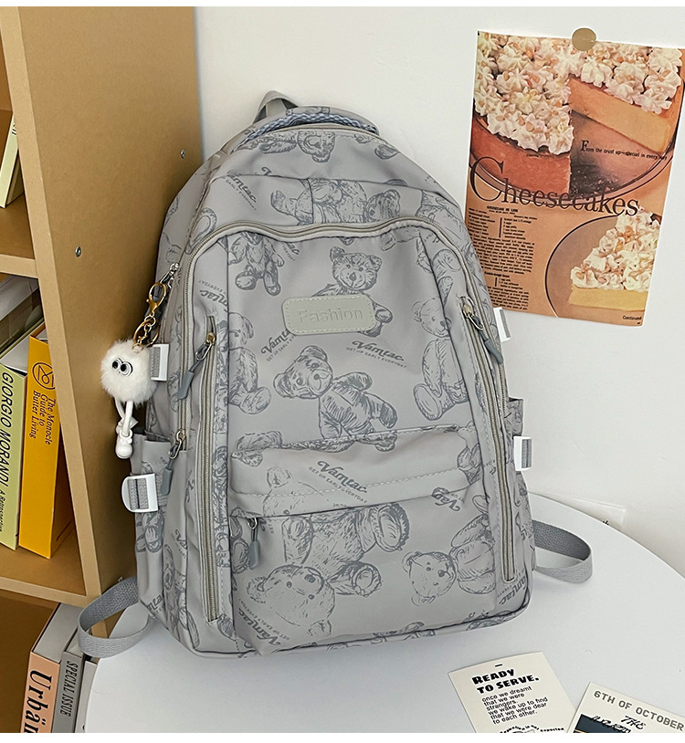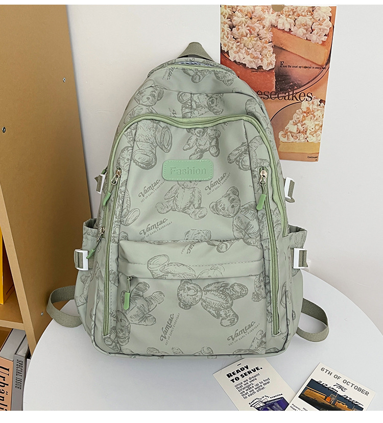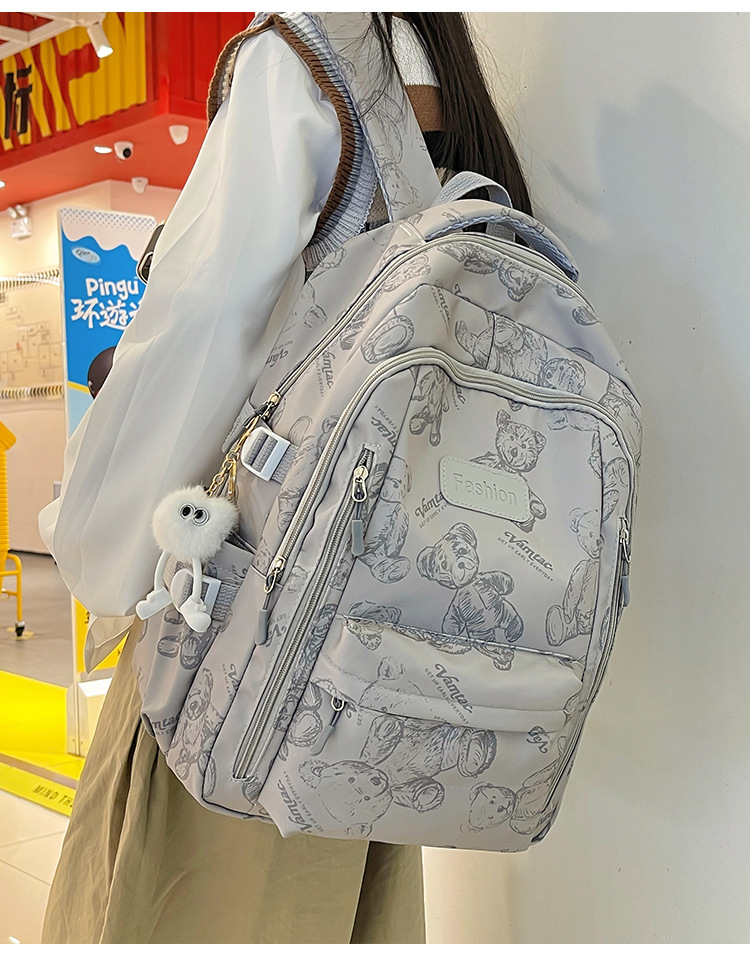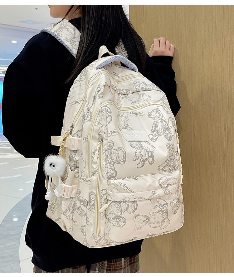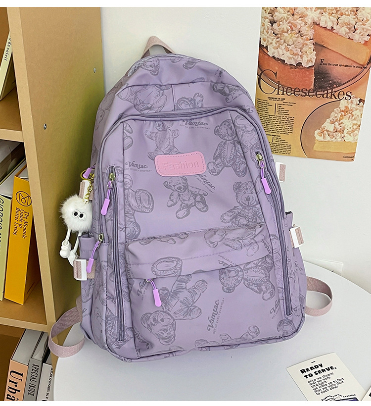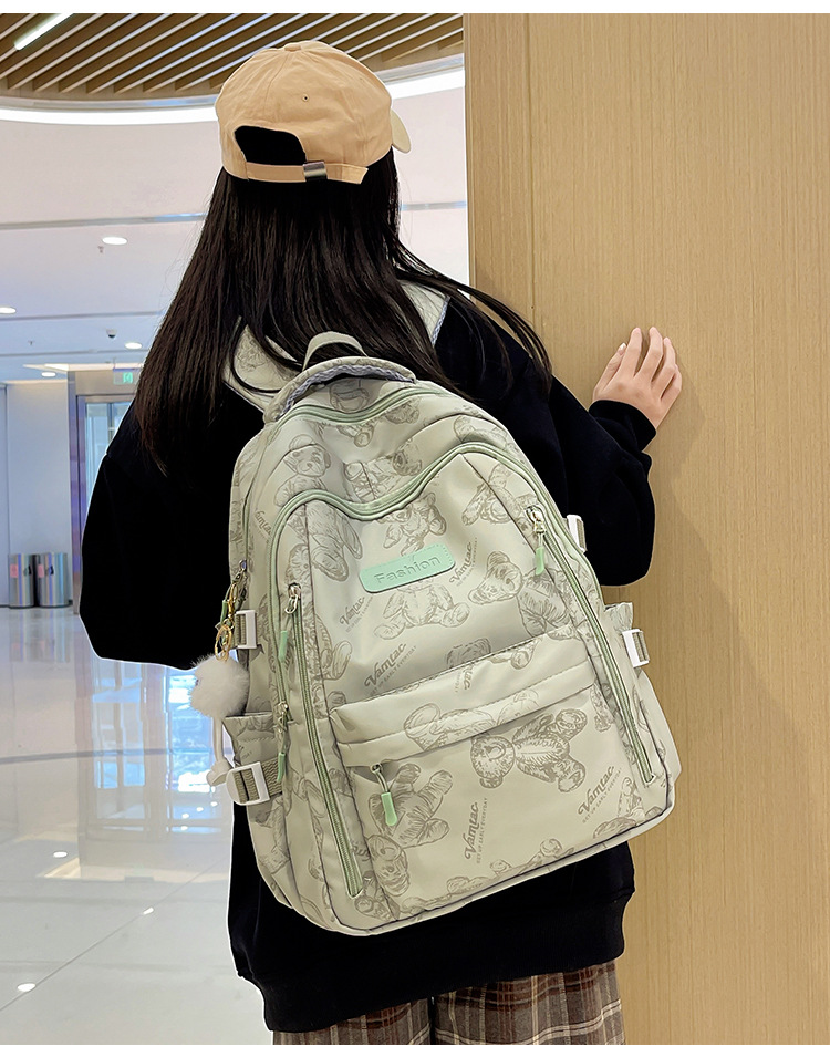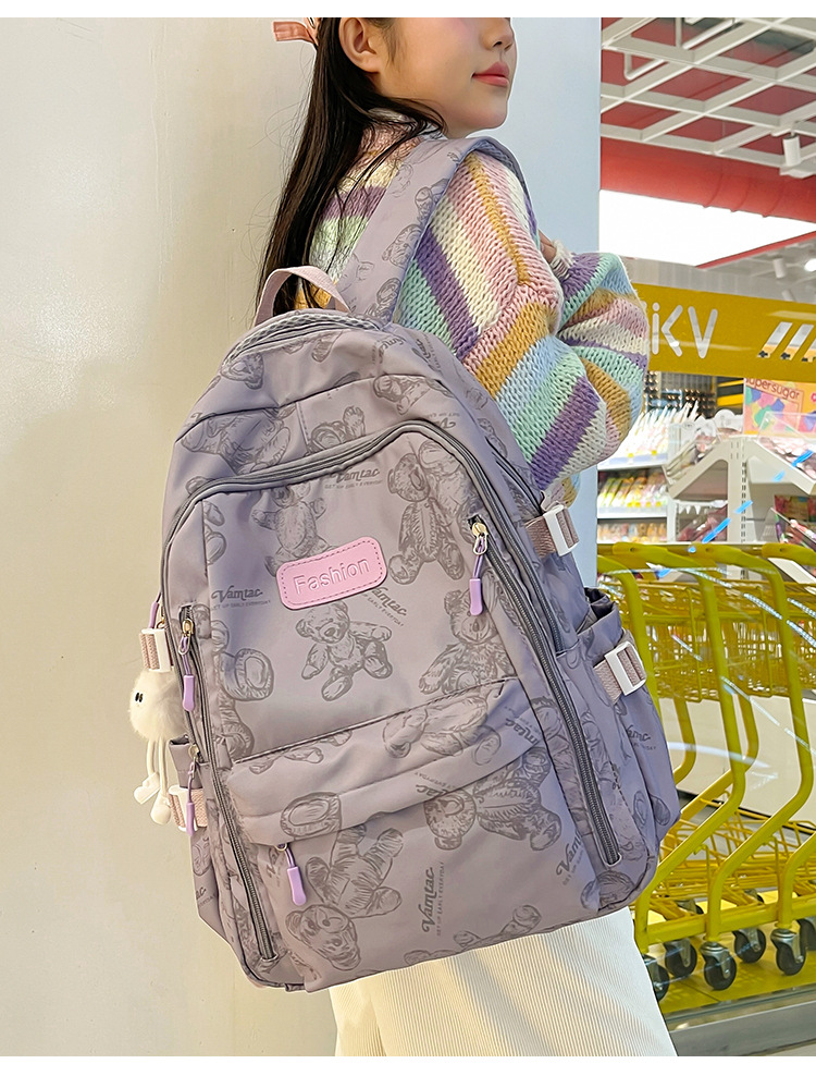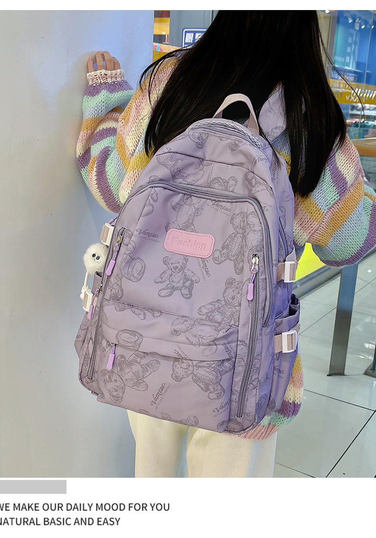 新款高颜值书包简约包包女大学生大容量背包休闲运动小熊印花双背