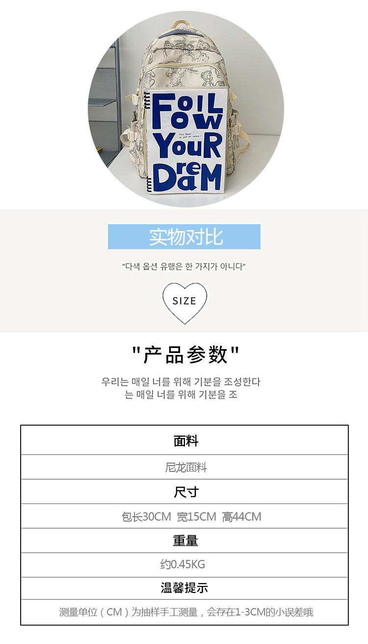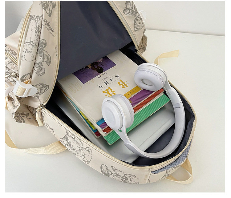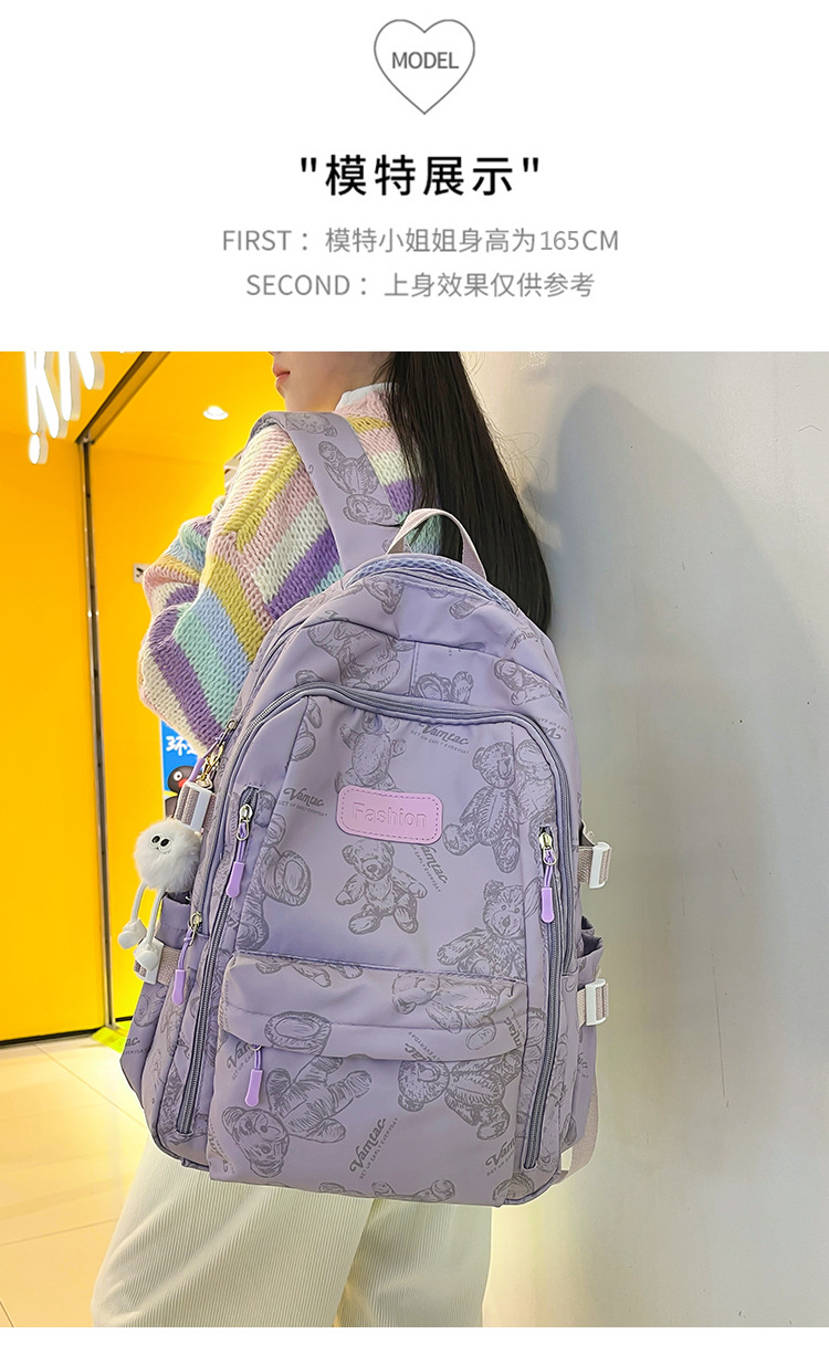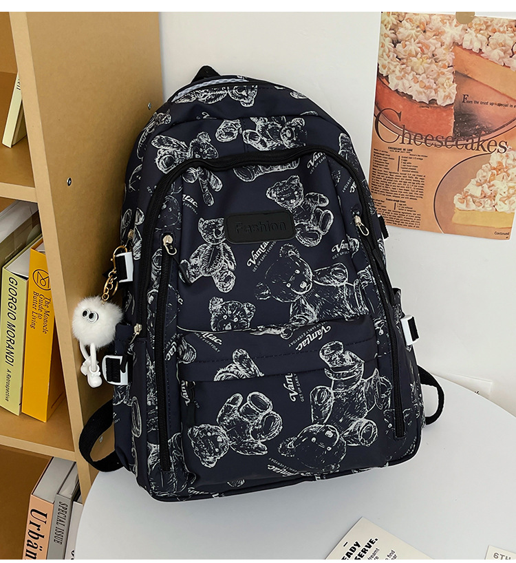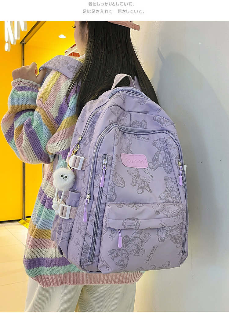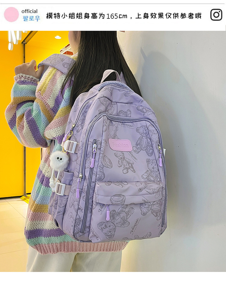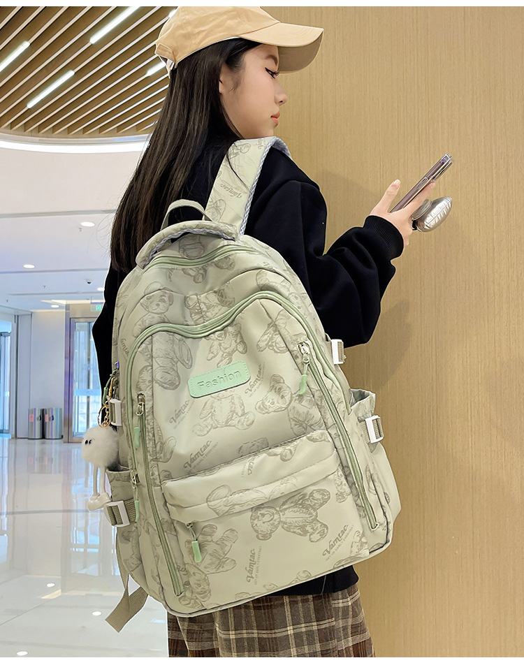 新款高颜值书包简约包包女大学生大容量背包休闲运动小熊印花双背