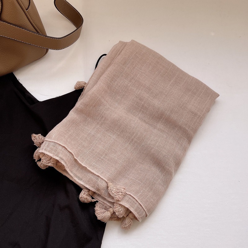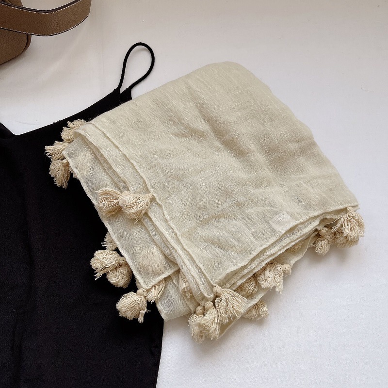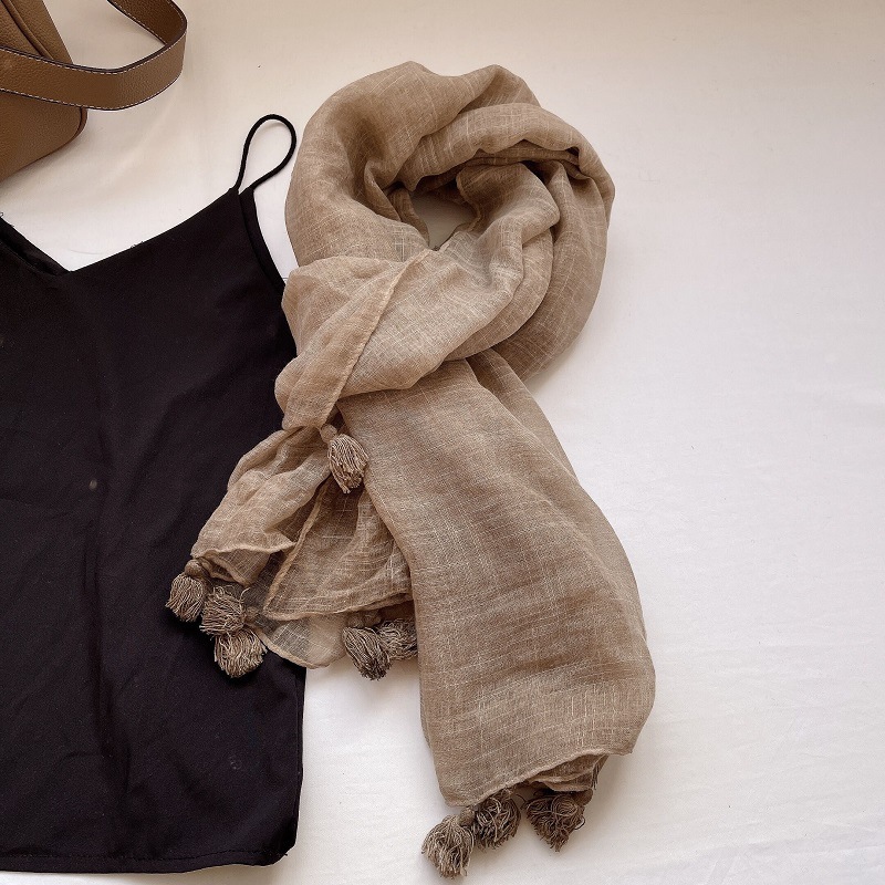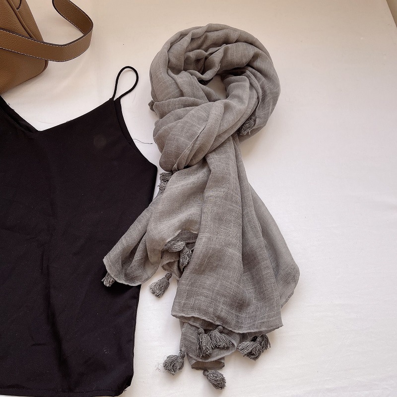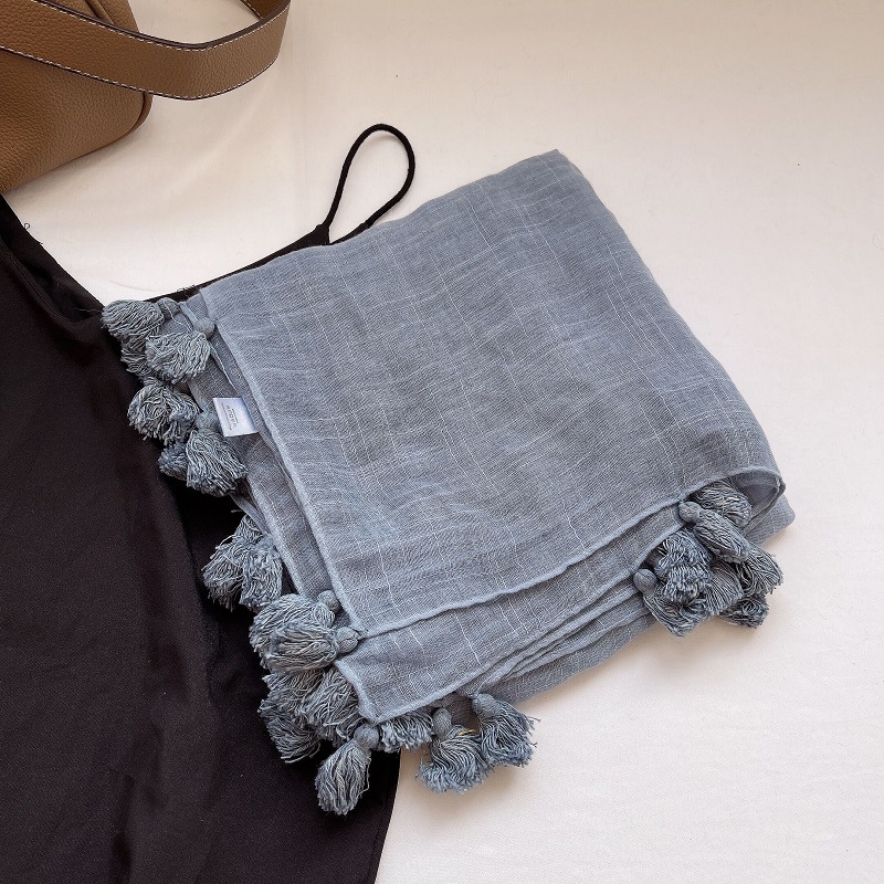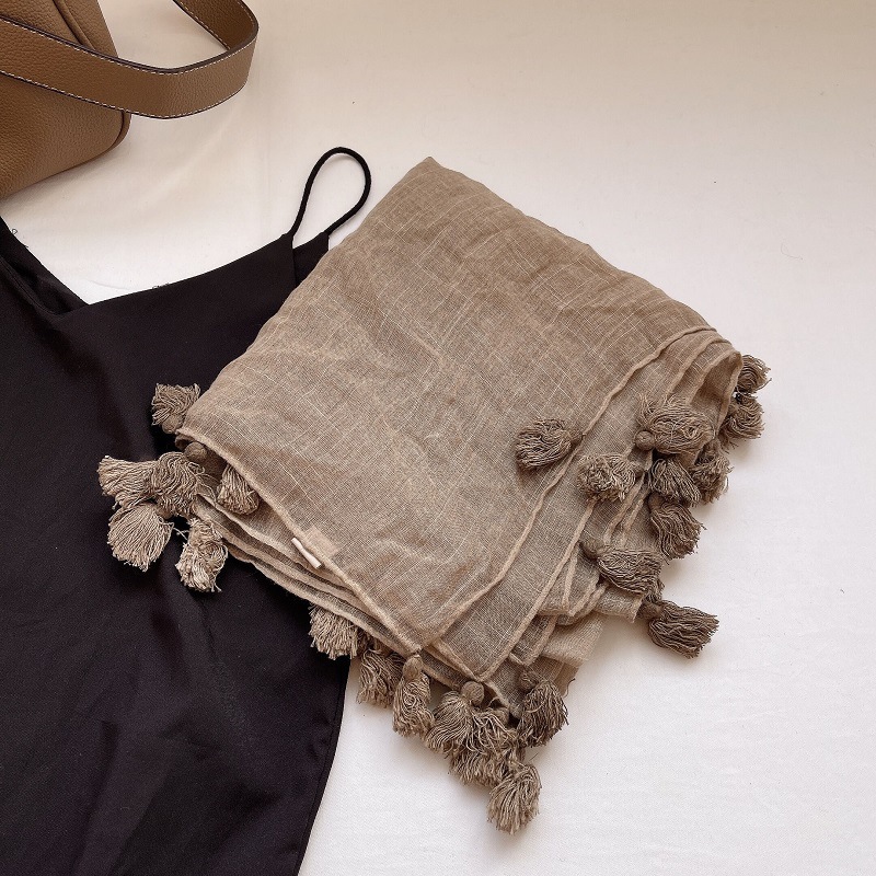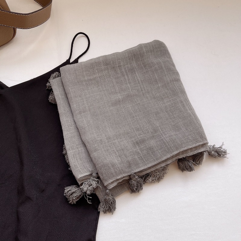 Syal katun dan linen! Syal selendang gaya kuno setengah jenggot warna Solid syal Abu DY Dubai gurun multifungsi panjang