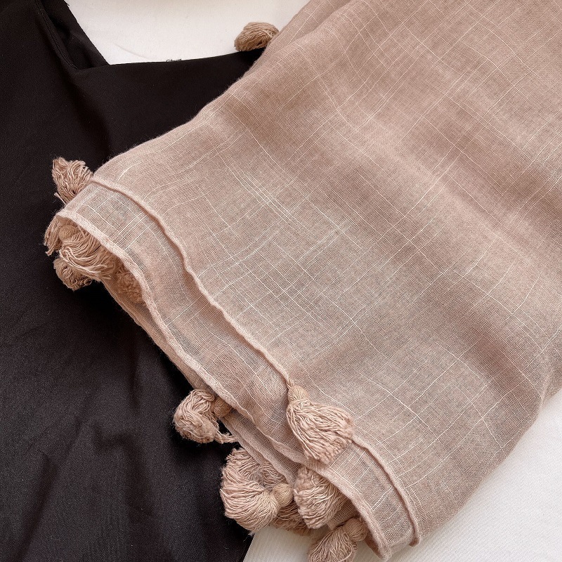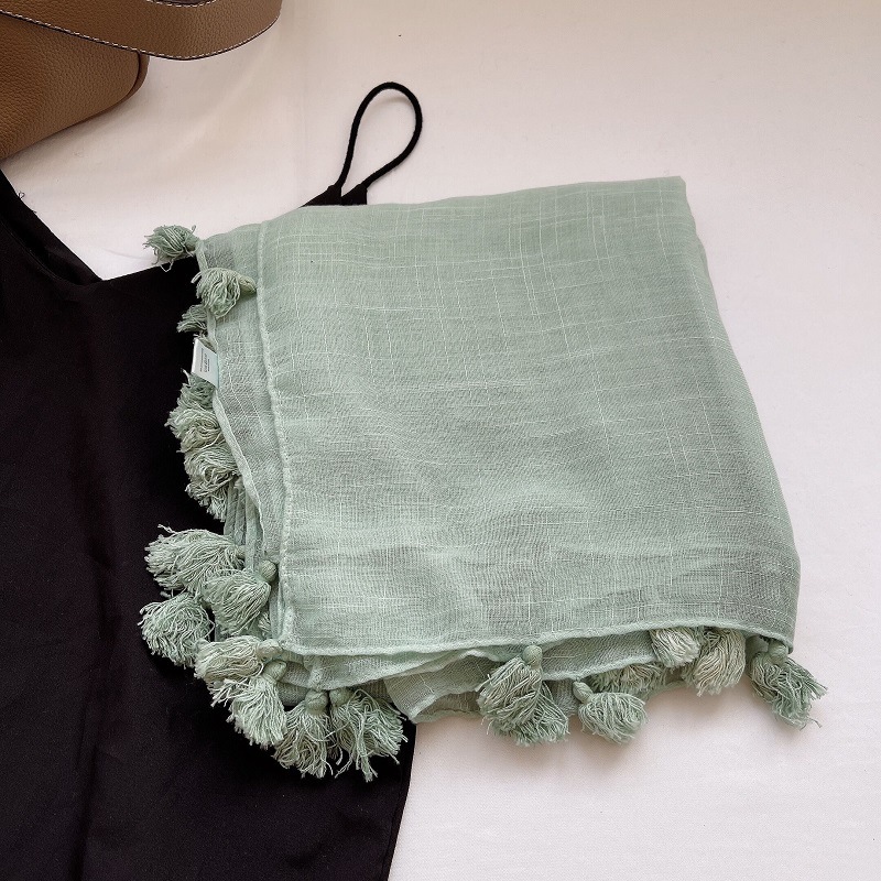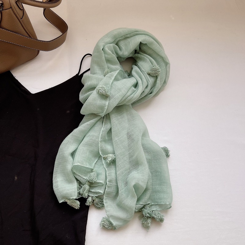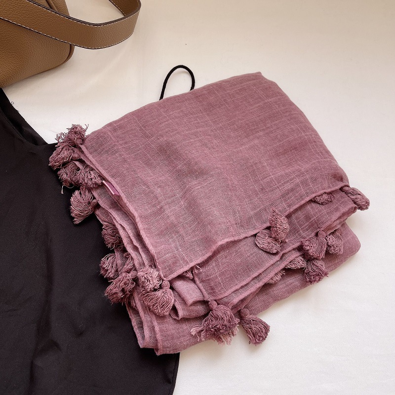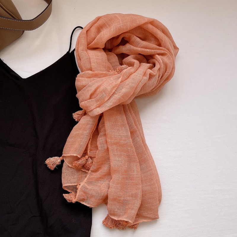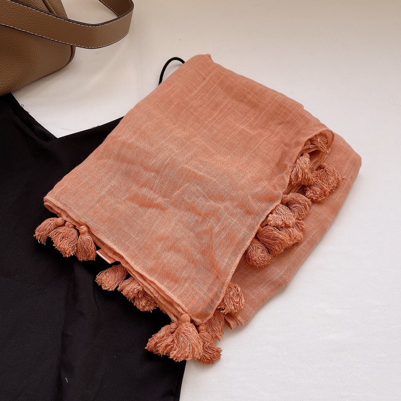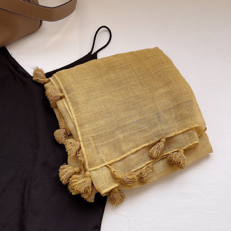 Syal katun dan linen! Syal selendang gaya kuno setengah jenggot warna Solid syal Abu DY Dubai gurun multifungsi panjang