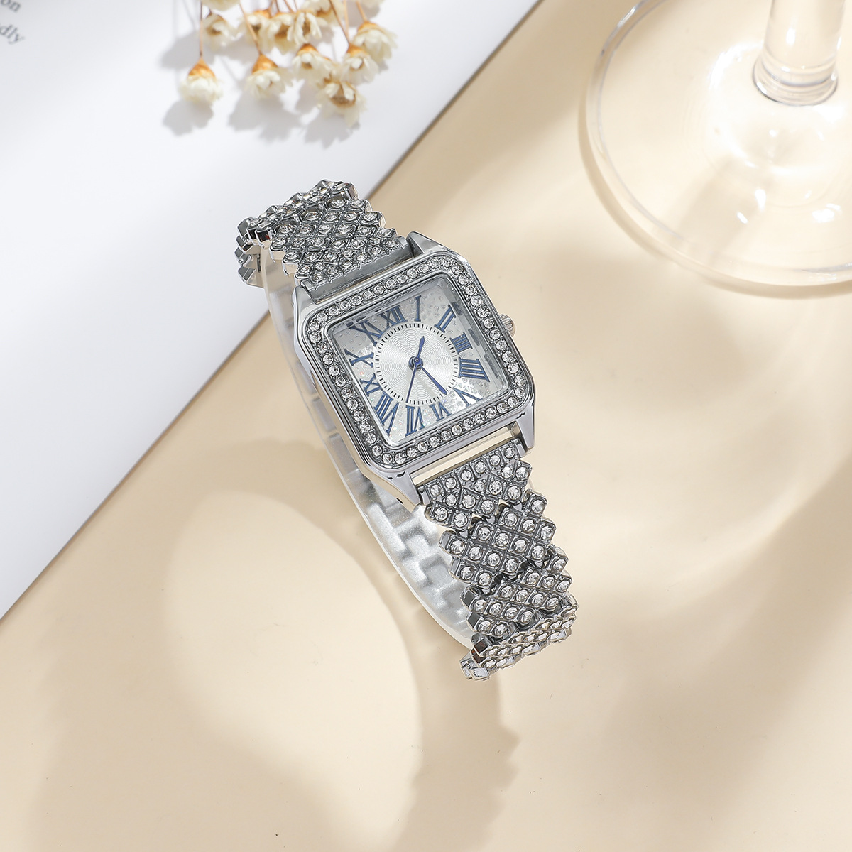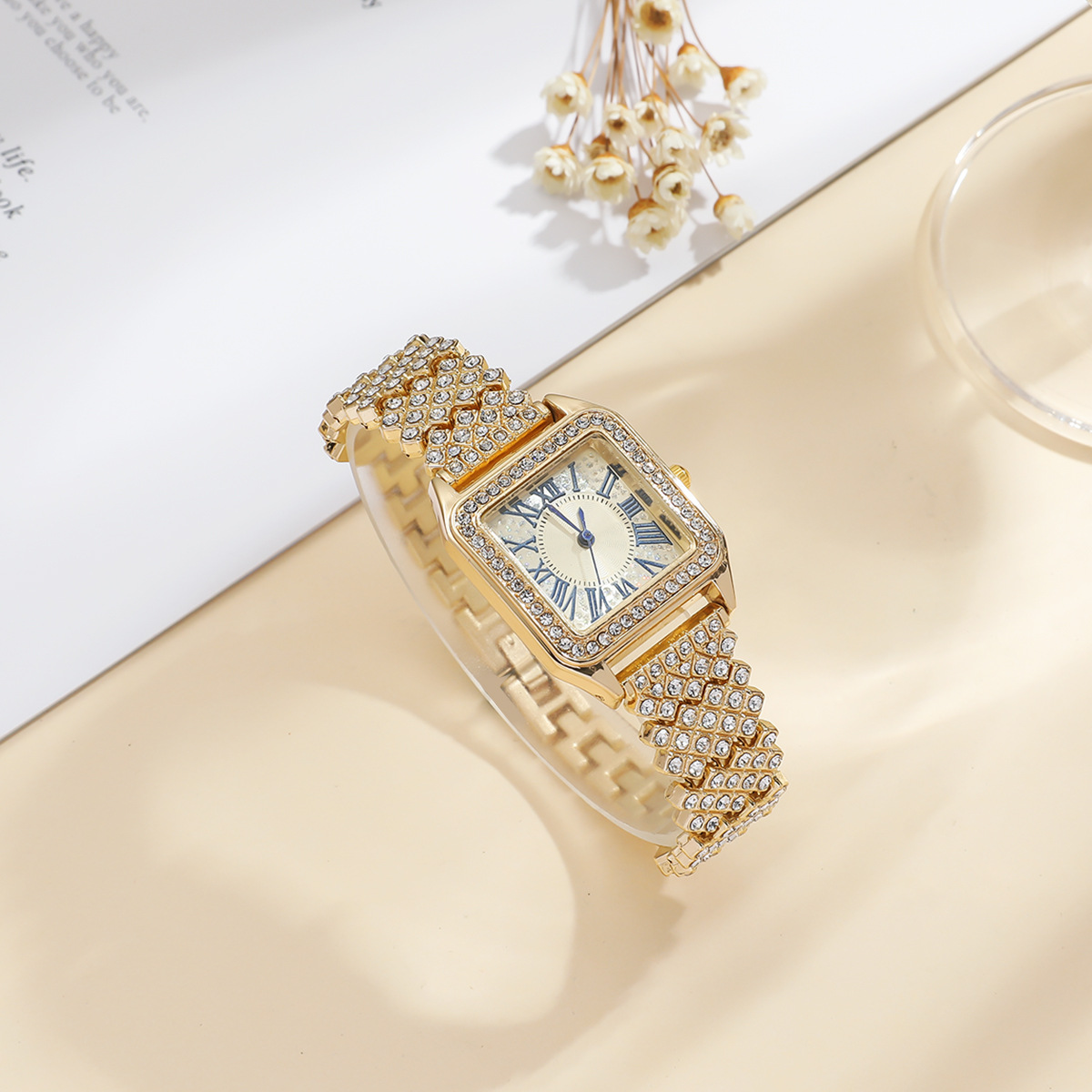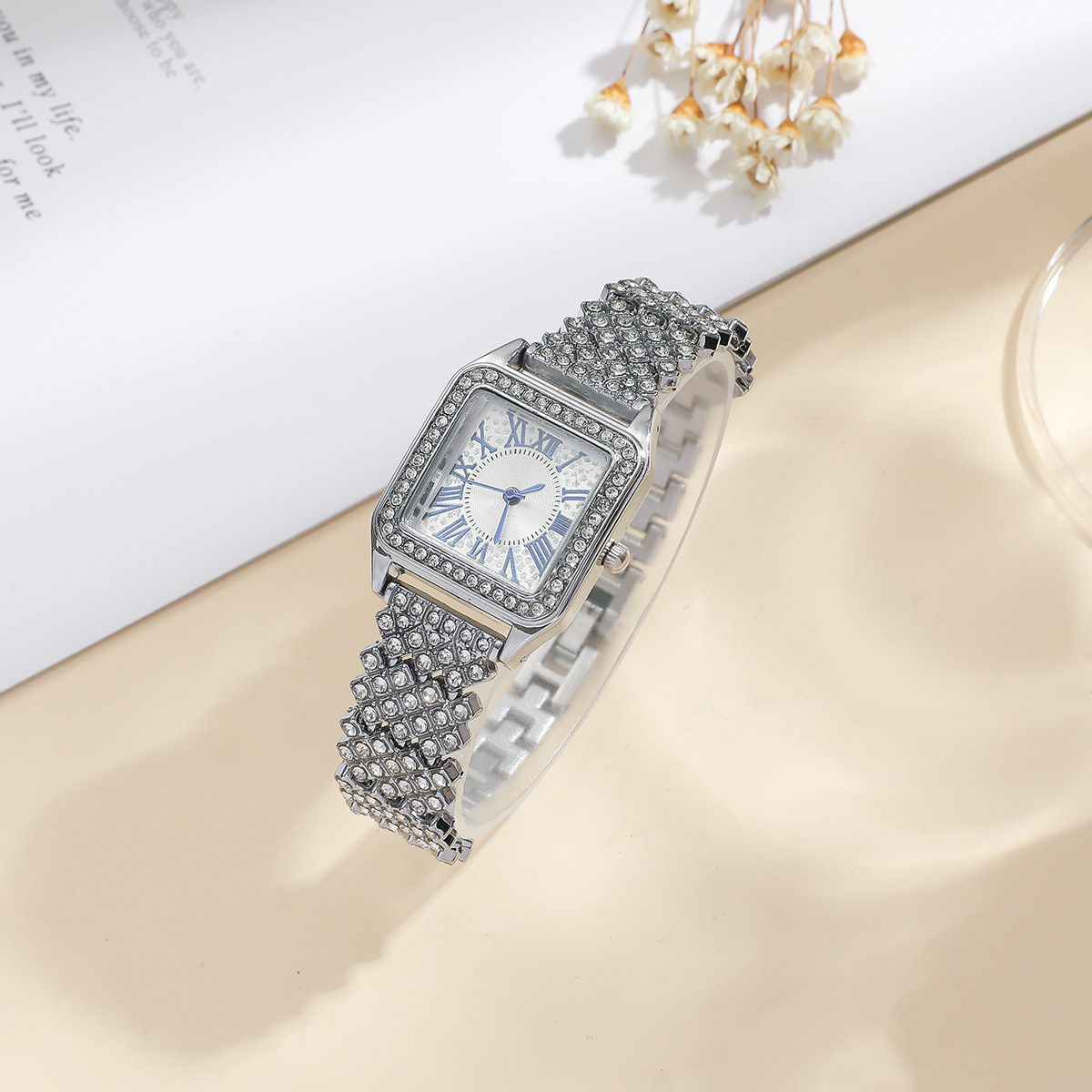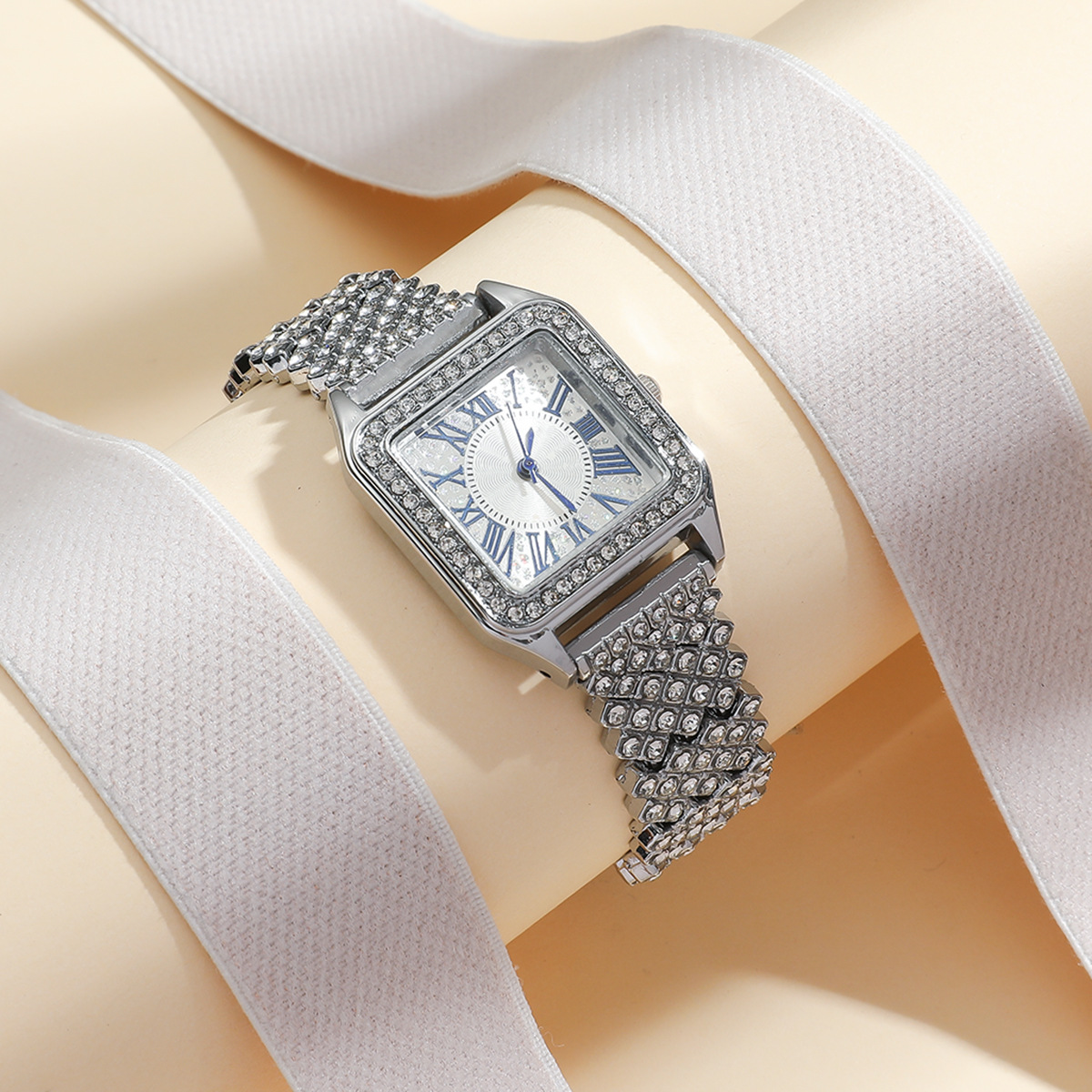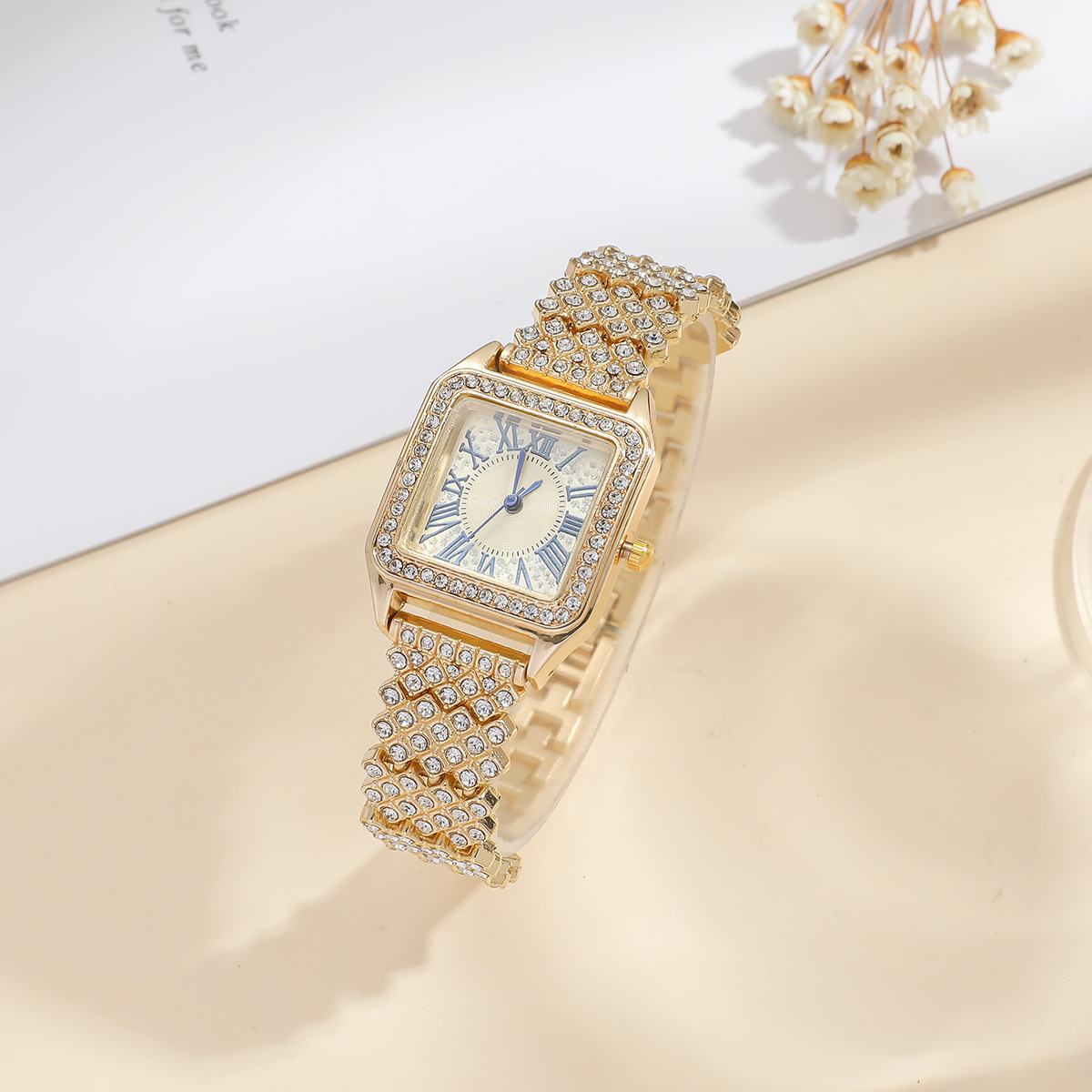 Jam tangan persegi modis dengan berlian, angka Romawi, desain langit berbintang, gelang wanita, jam tangan wanita elegan, langit berbintang retro, tren retro.