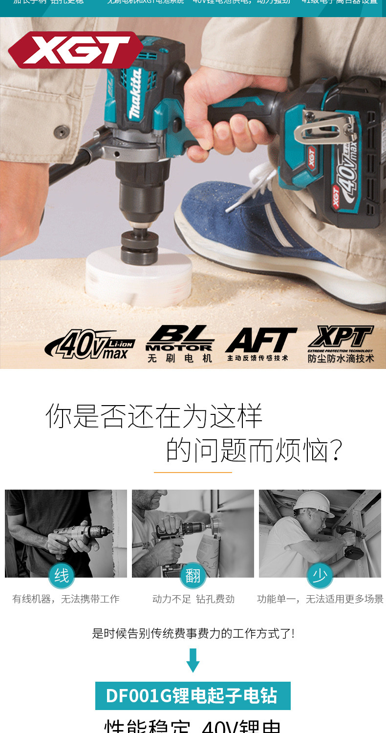 Mutian obeng listrik lithium 40V, bor listrik Lithium dapat diisi ulang, bor multifungsi 20MM