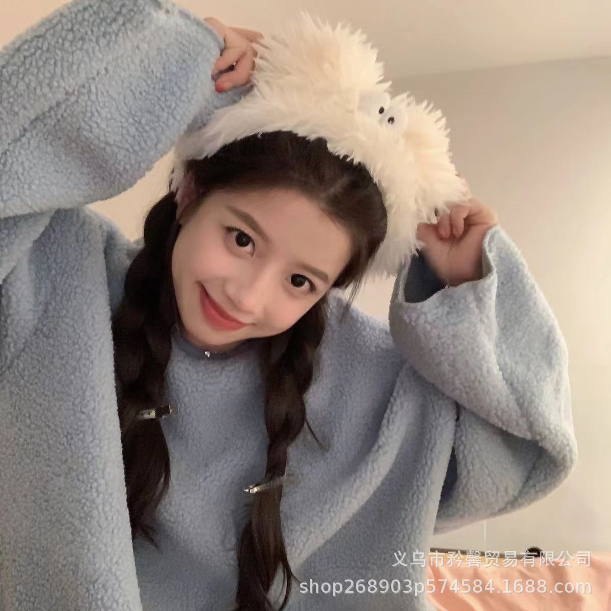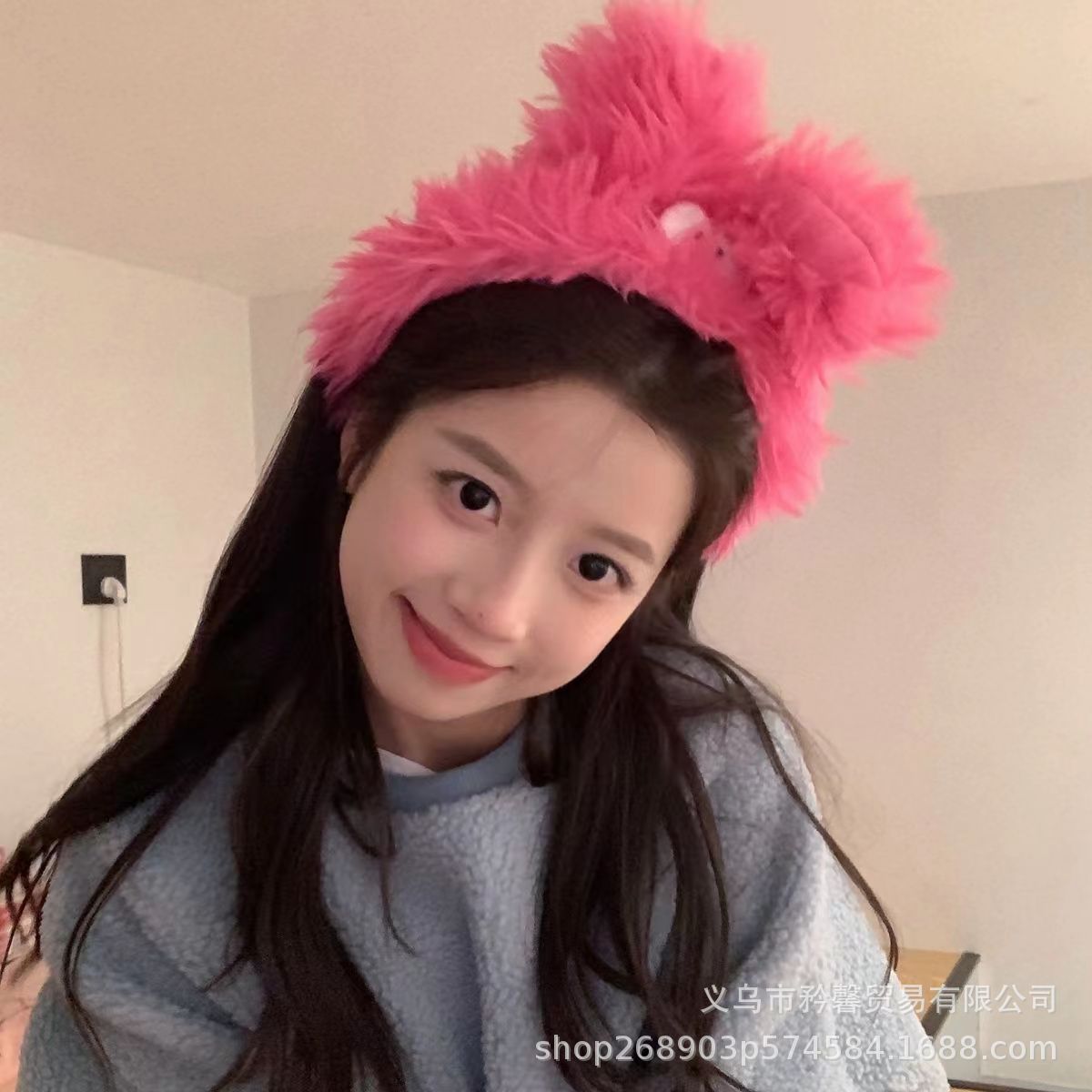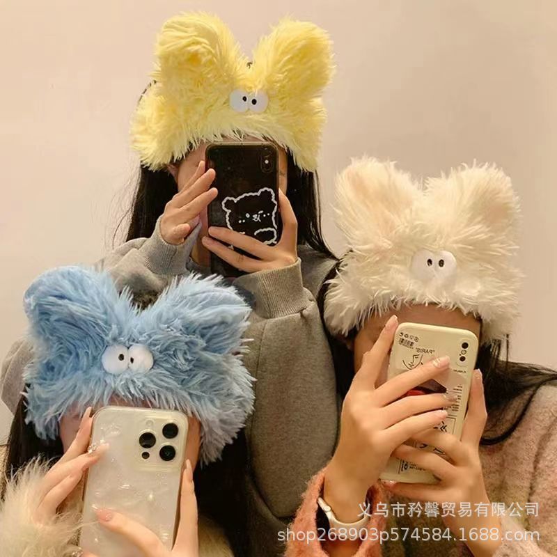 In stock lucu kreatif lucu telinga panjang besar Cuci wajah karet rambut elastis mewah poni Cuci wajah rambut elastis