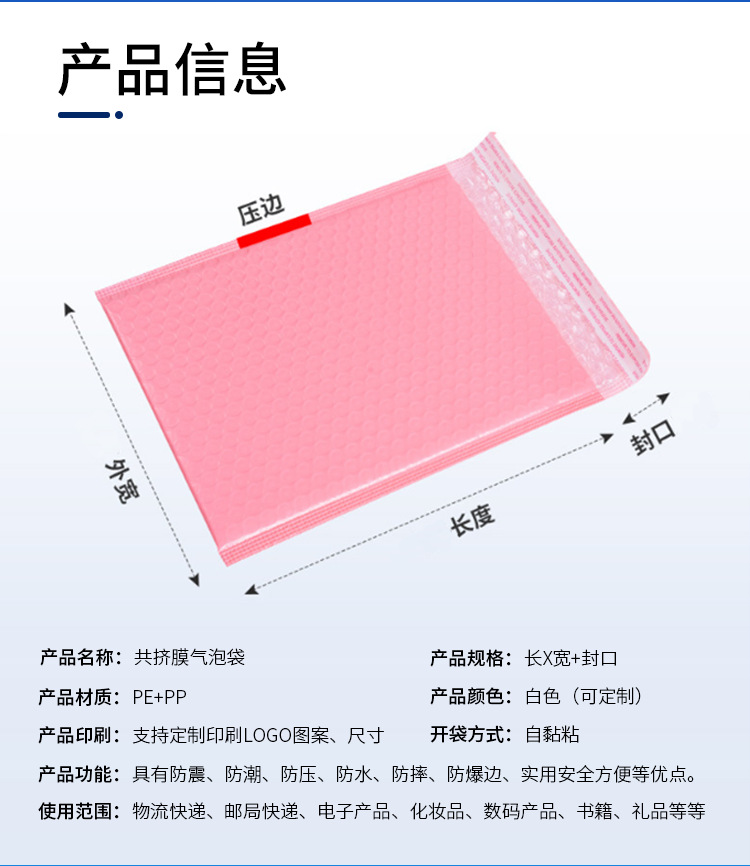 Kantong gelembung film ko-ekstrusi, kantong busa aluminium foil tebal anti-guncangan, kantong kemasan pakaian perhiasan perdagangan luar negeri pengiriman ekspres bentuk strip panjang