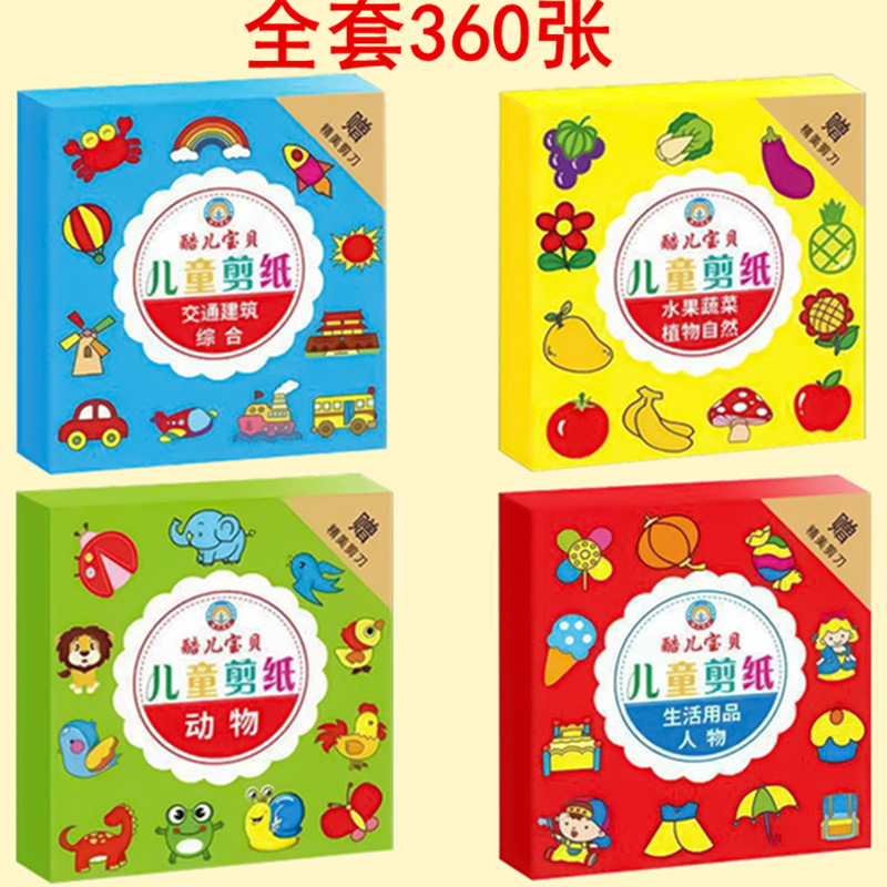 二.盒装240张剪纸.送剪刀1把.有144张线条+96张彩印(有图案).80盒/箱