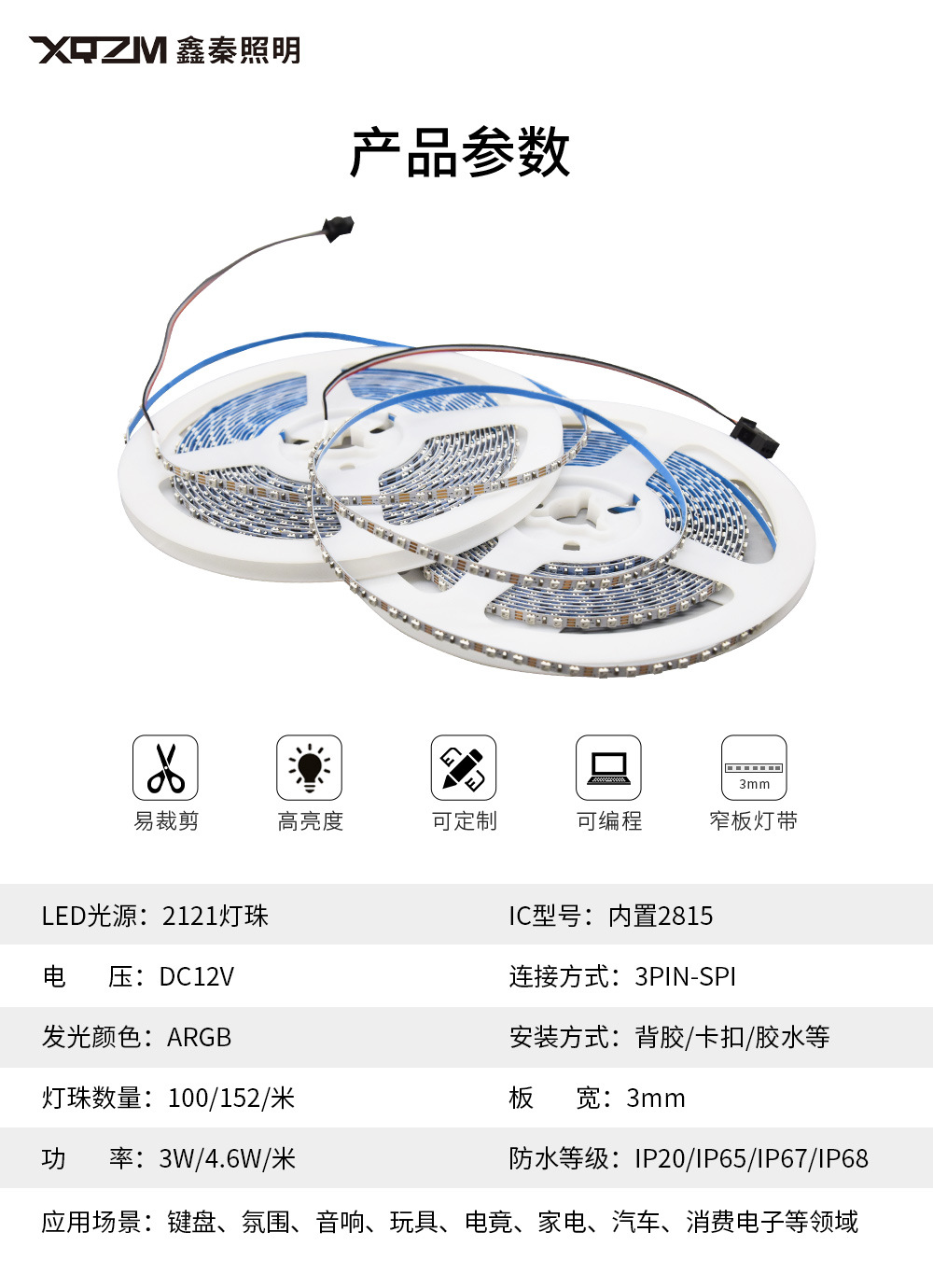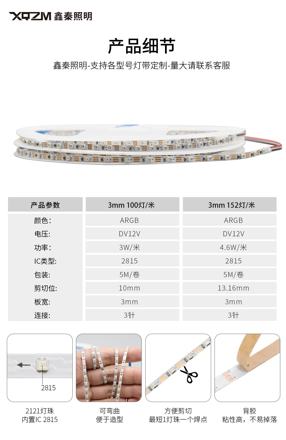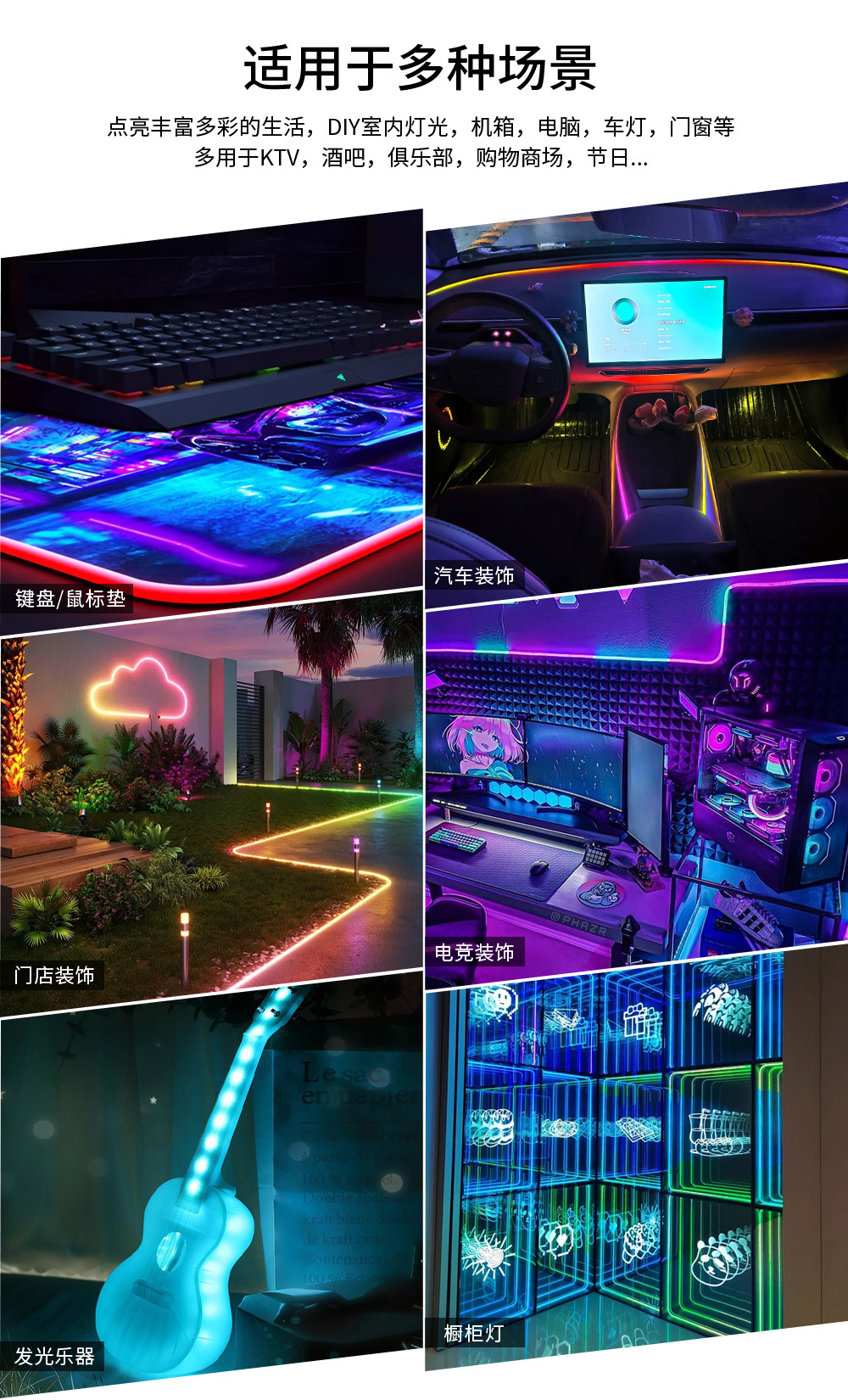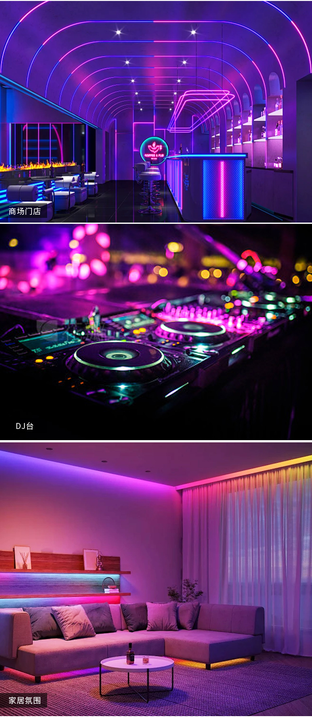 Lampu strip fantasi 3mm dengan IC 12V bawaan, lampu strip ritme berjalan titik tunggal kontrol tunggal yang dapat diprogram, lampu strip ARGB ambient.