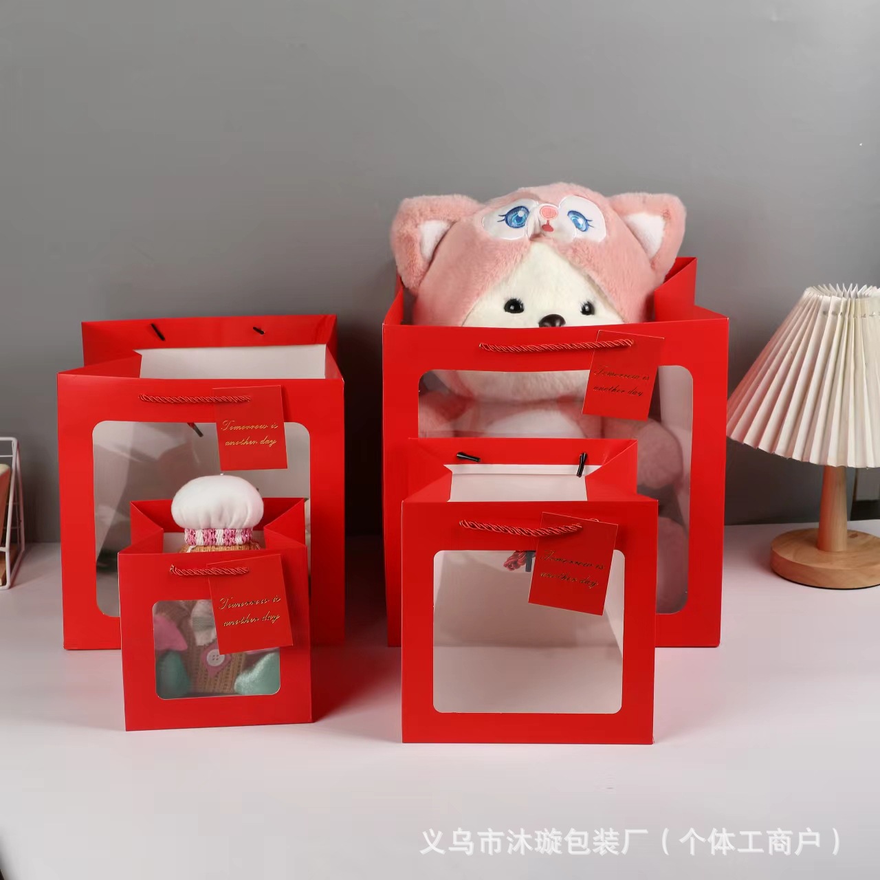 Tas hadiah transparan jendela persegi tas hadiah Hari Guru tas boneka kemasan kartu putih tas tangan grosir