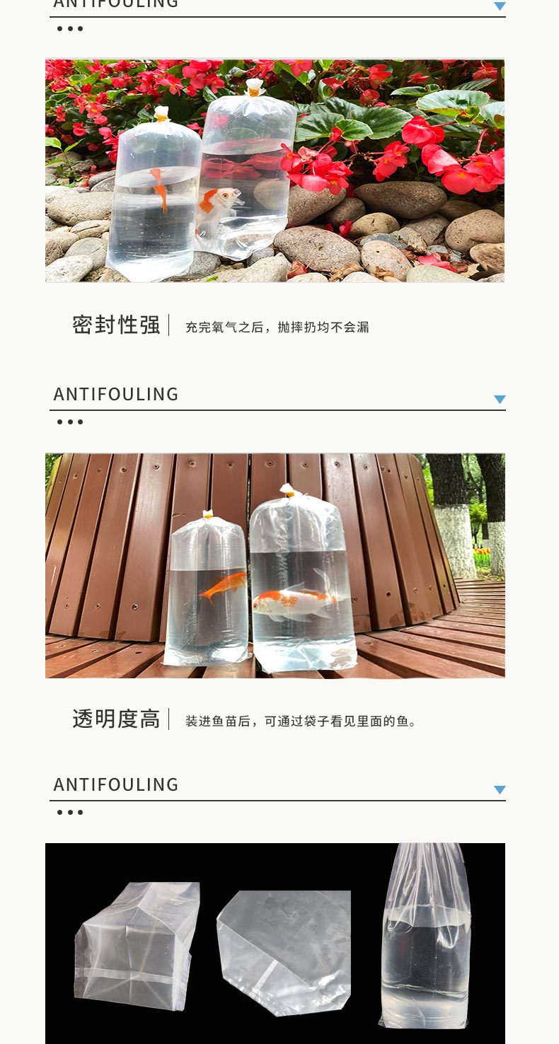 Kantong ikan hidup beroksigen empat sudut transparan, kantong transportasi, kantong plastik akuarium, kantong ikan, kantong kemasan ikan hias, kantong oksigen