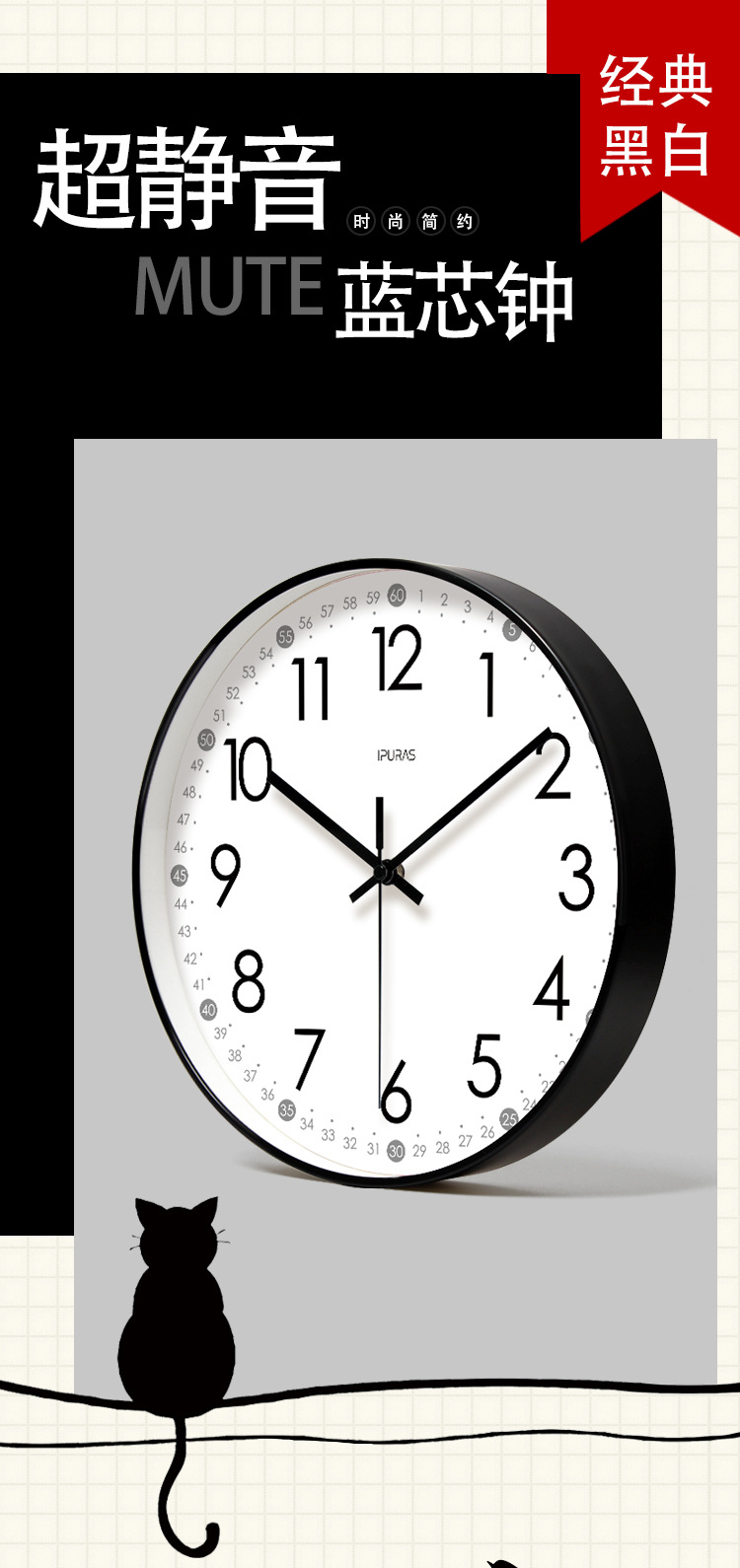 IPRA 6373 jam dinding ruang tamu senyap, jam tangan dinding edukasi dini kartun, jam kuarsa pemindai bisu