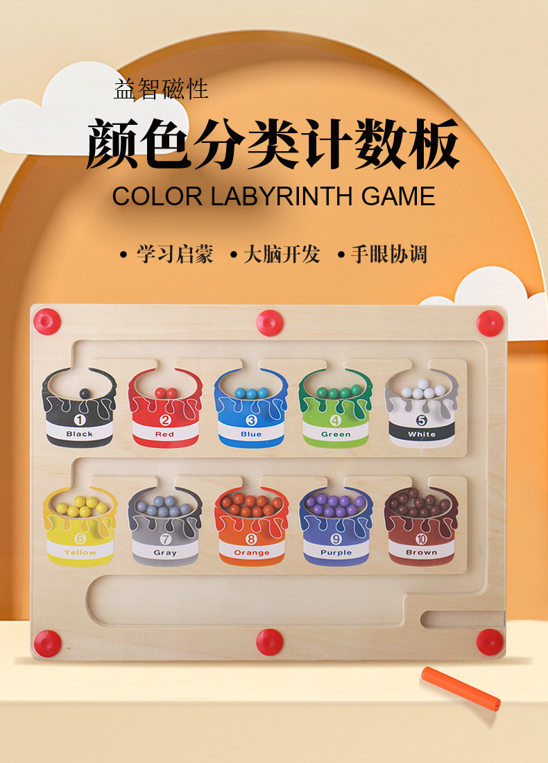 Papan hitung klasifikasi magnetik mainan papan hitung warna magnetik permainan bola labirin anak