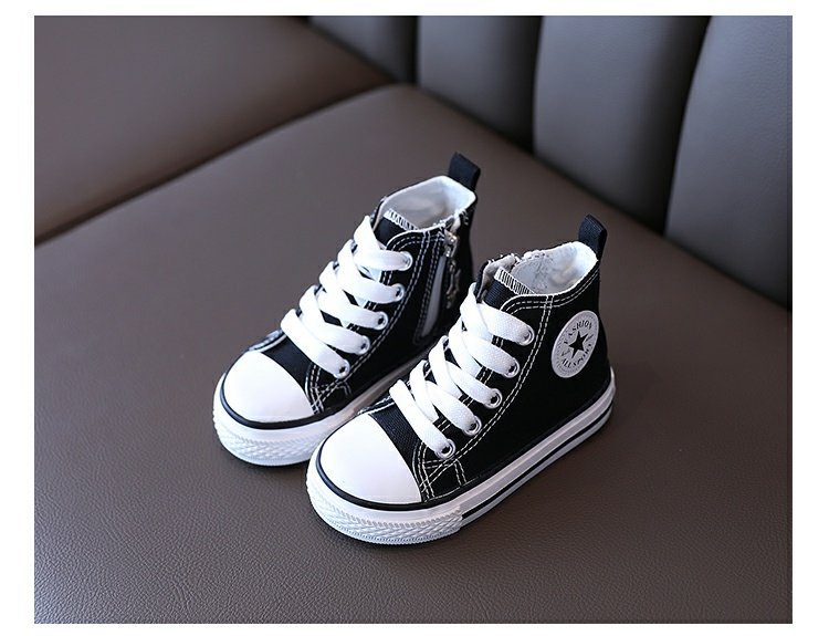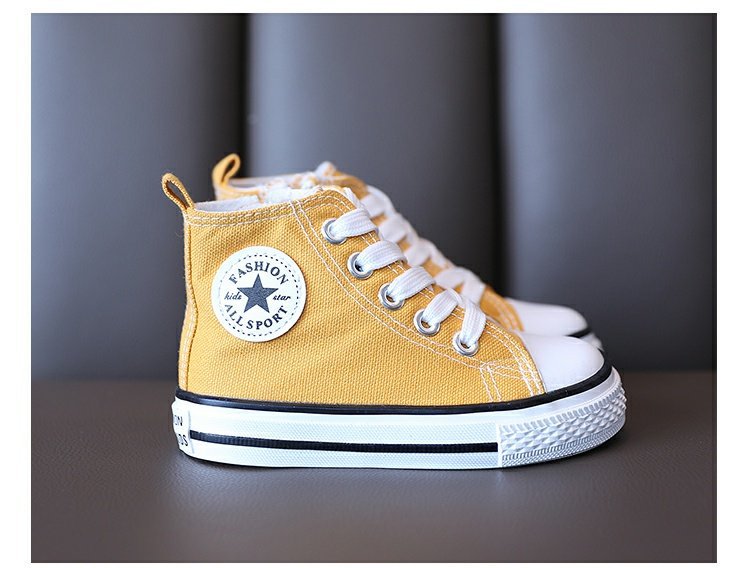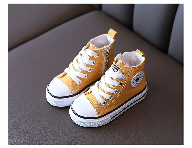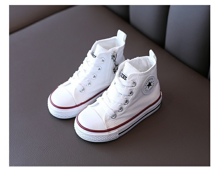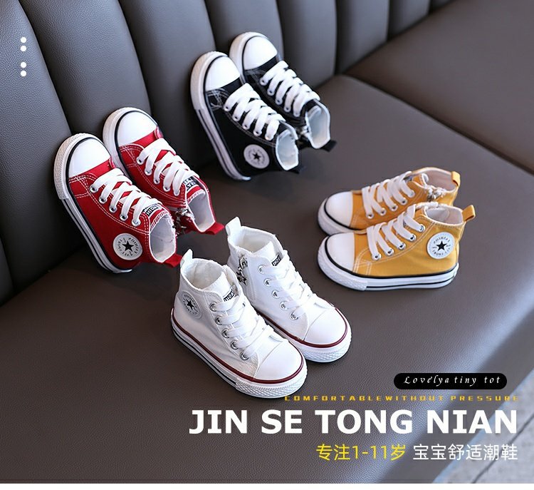 Sepatu kanvas high-top untuk anak laki-laki, SEPATU papan kanvas gaya Korea warna putih kasual Musim Semi dan Gugur 2023, sepatu kasual untuk anak perempuan