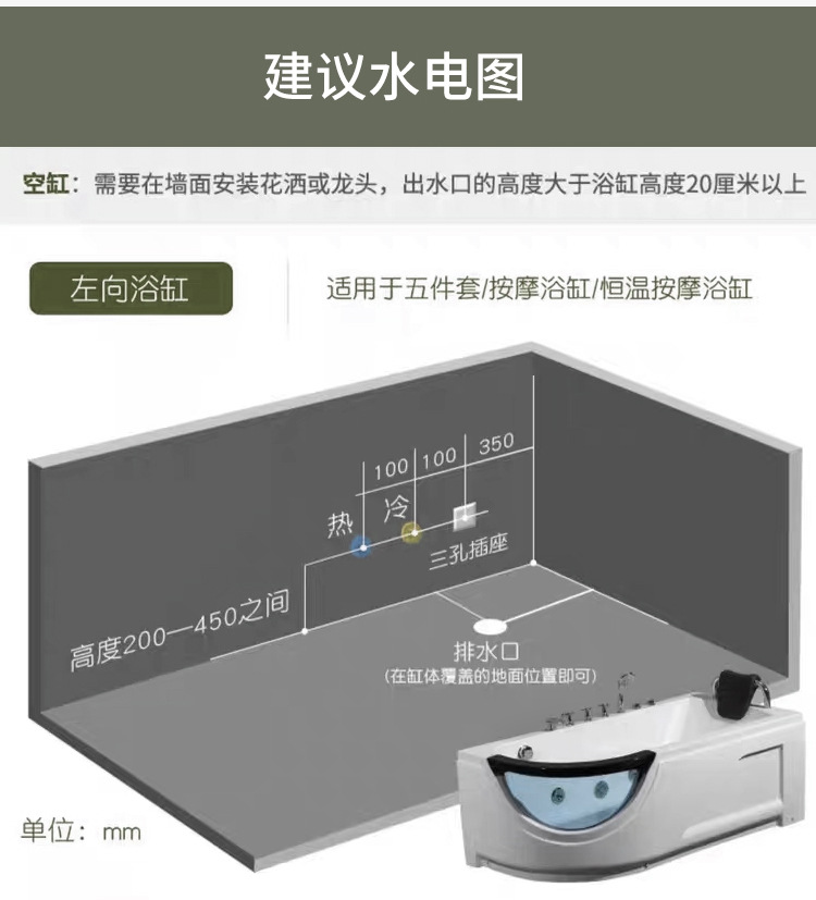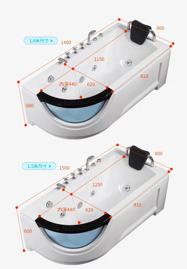Jingying bak mandi rumah tangga akrilik, salon kecantikan, bak mandi, bak mandi Selancar, pijat, apartemen kecil mewah 1.4 m