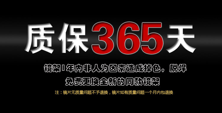 买家在收到货时,在10天内请仔细检查商品,如有镜架断裂、脱皮、镜片有大面积划痕的质量问题,可联系客服退换货,如超过10天本店不接受退换货。因为是厂家批发,我们无法保证每个产品都完好,有小的瑕疵问题,我们不接受退换货,还望谅解!我们拒绝**,拒绝中间商,让利润真正回归消费者!