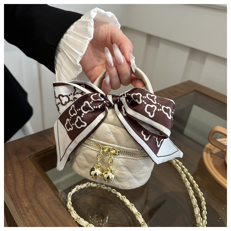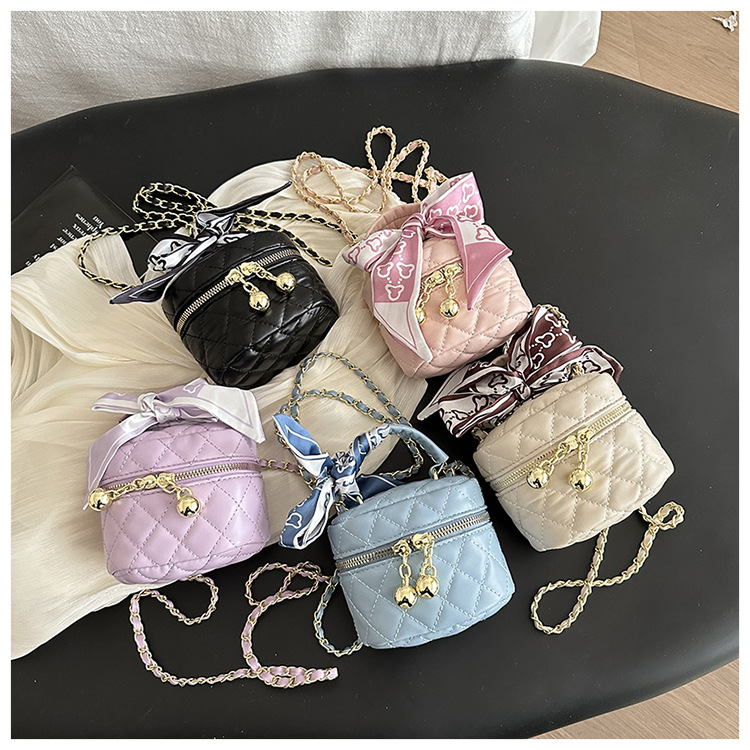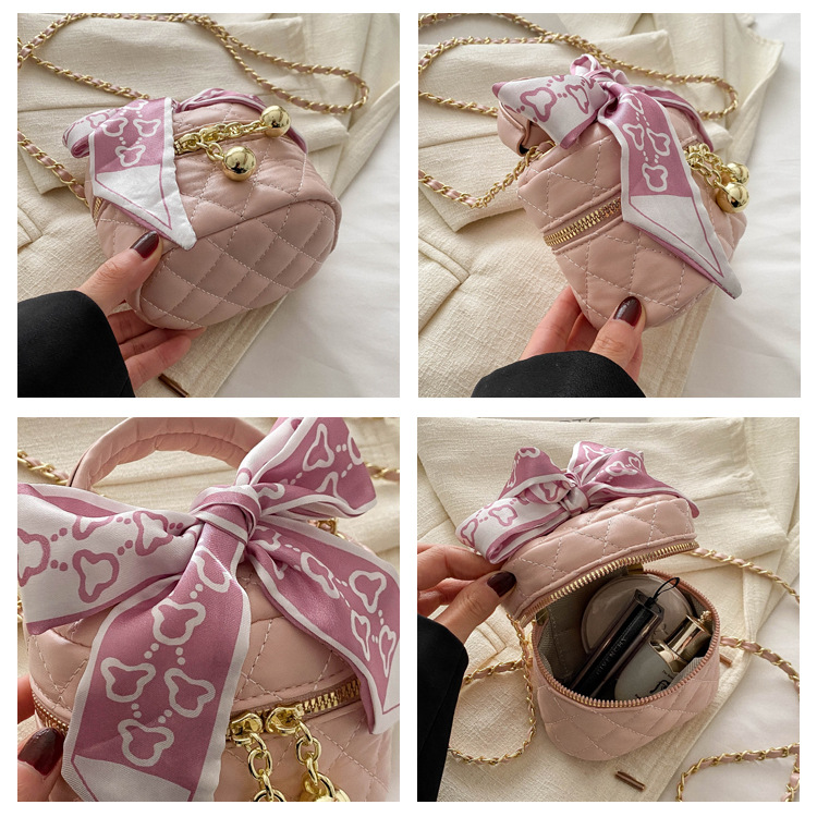 Tas mini populer tahun ini untuk wanita 2024 tas kurir fashion rantai belah ketupat bola emas kecil serbaguna baru musim panas
