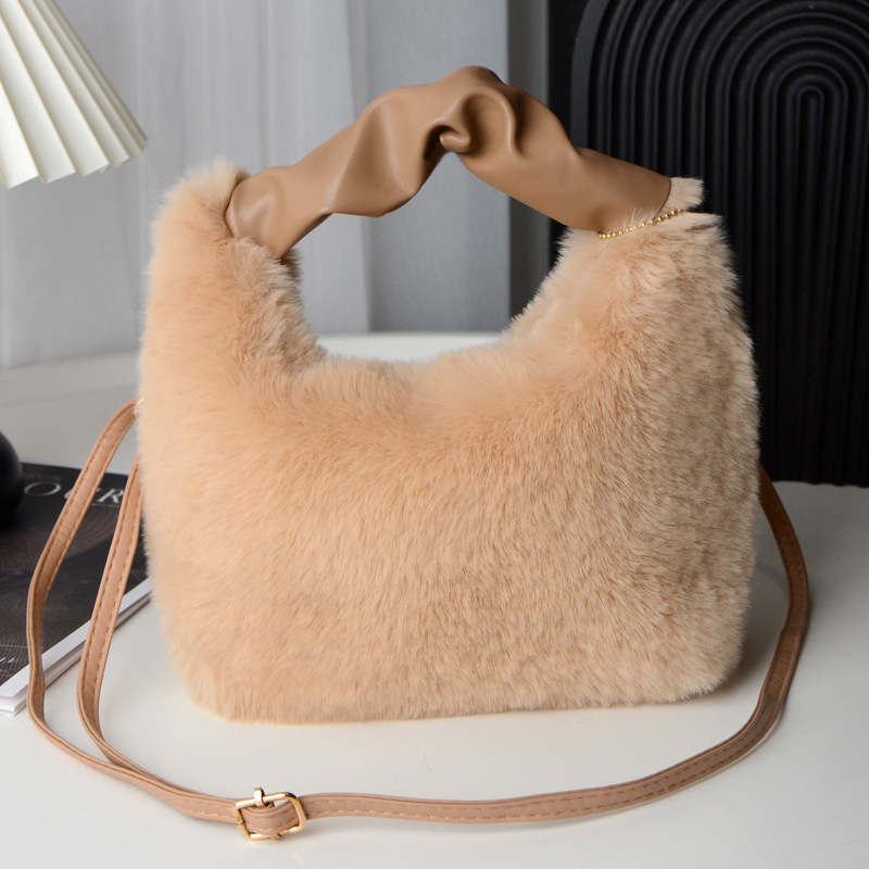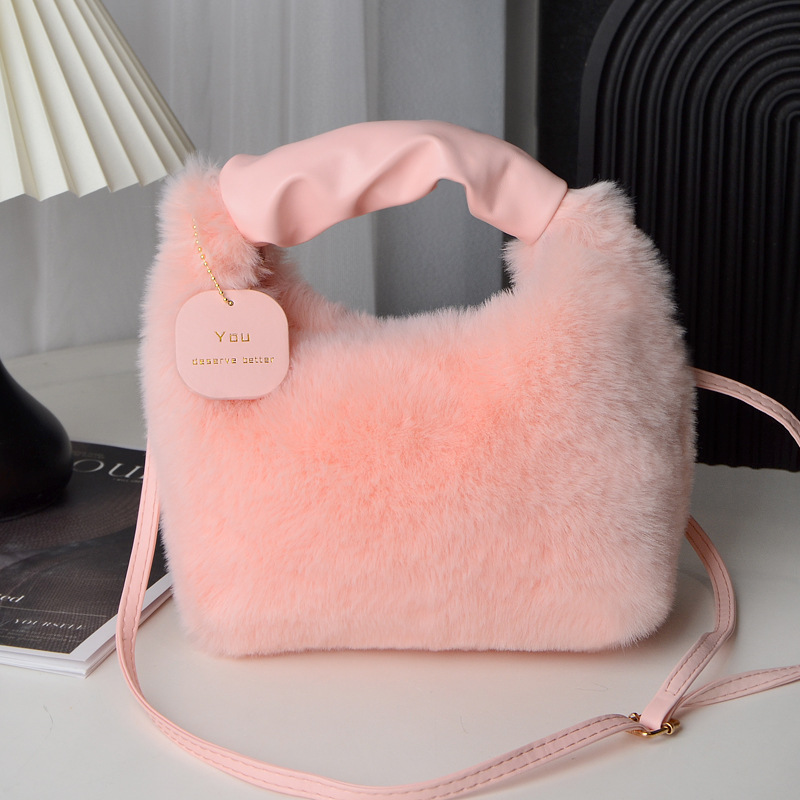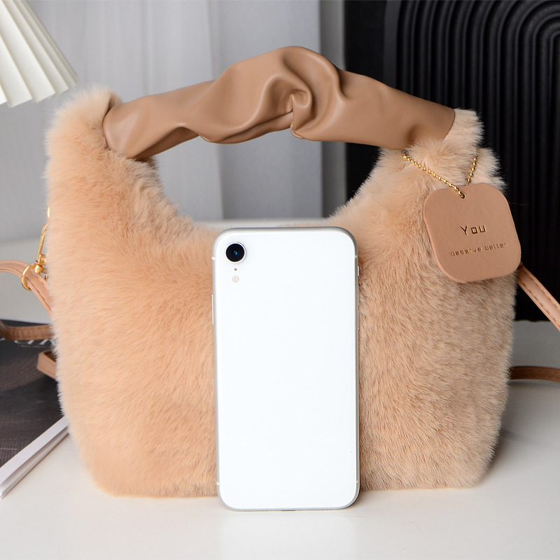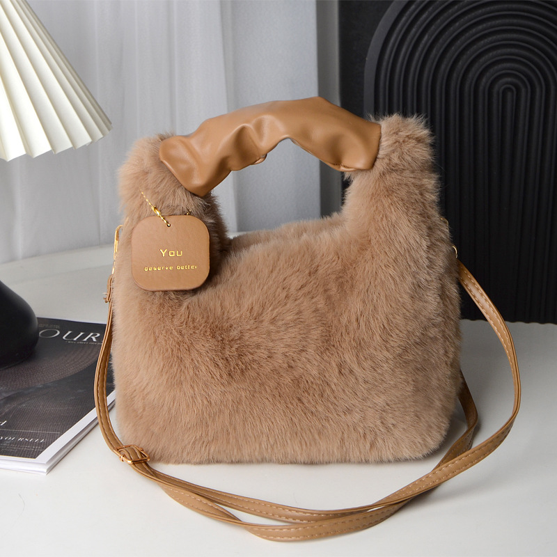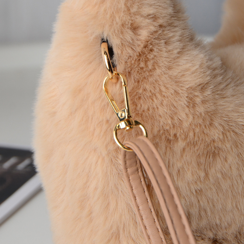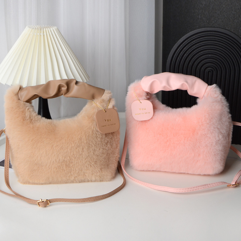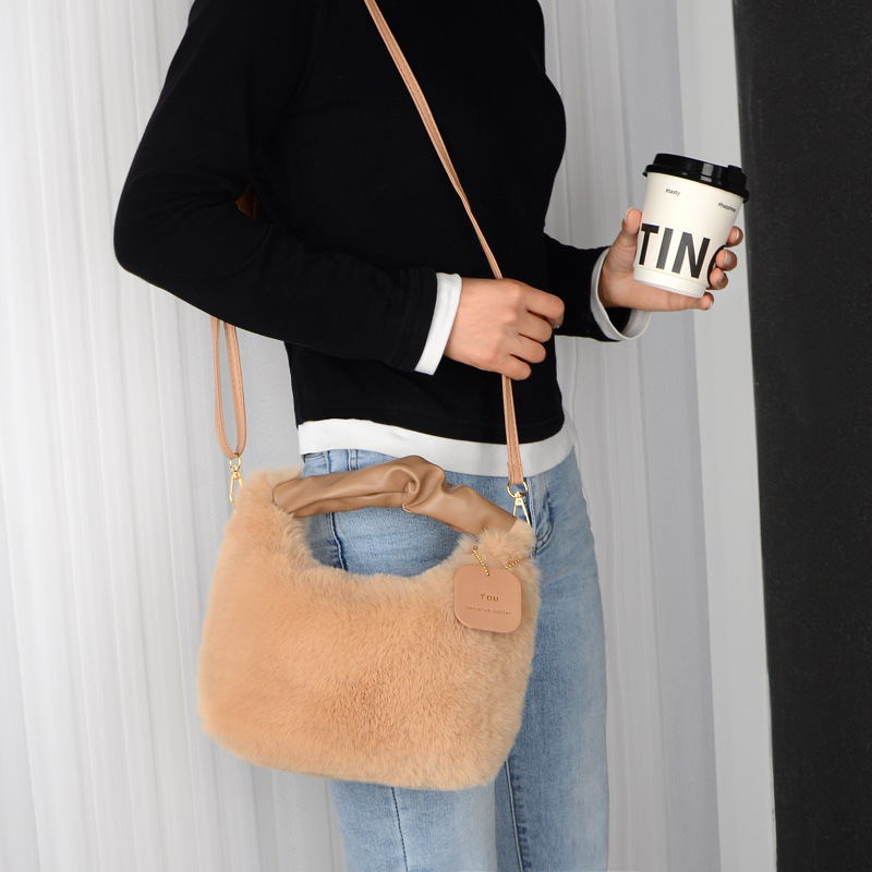 Tas wanita bulu palsu, tas selempang satu Bahu musim gugur dan musim dingin, tas wanita bulu palsu portabel Jinjing tangan imut