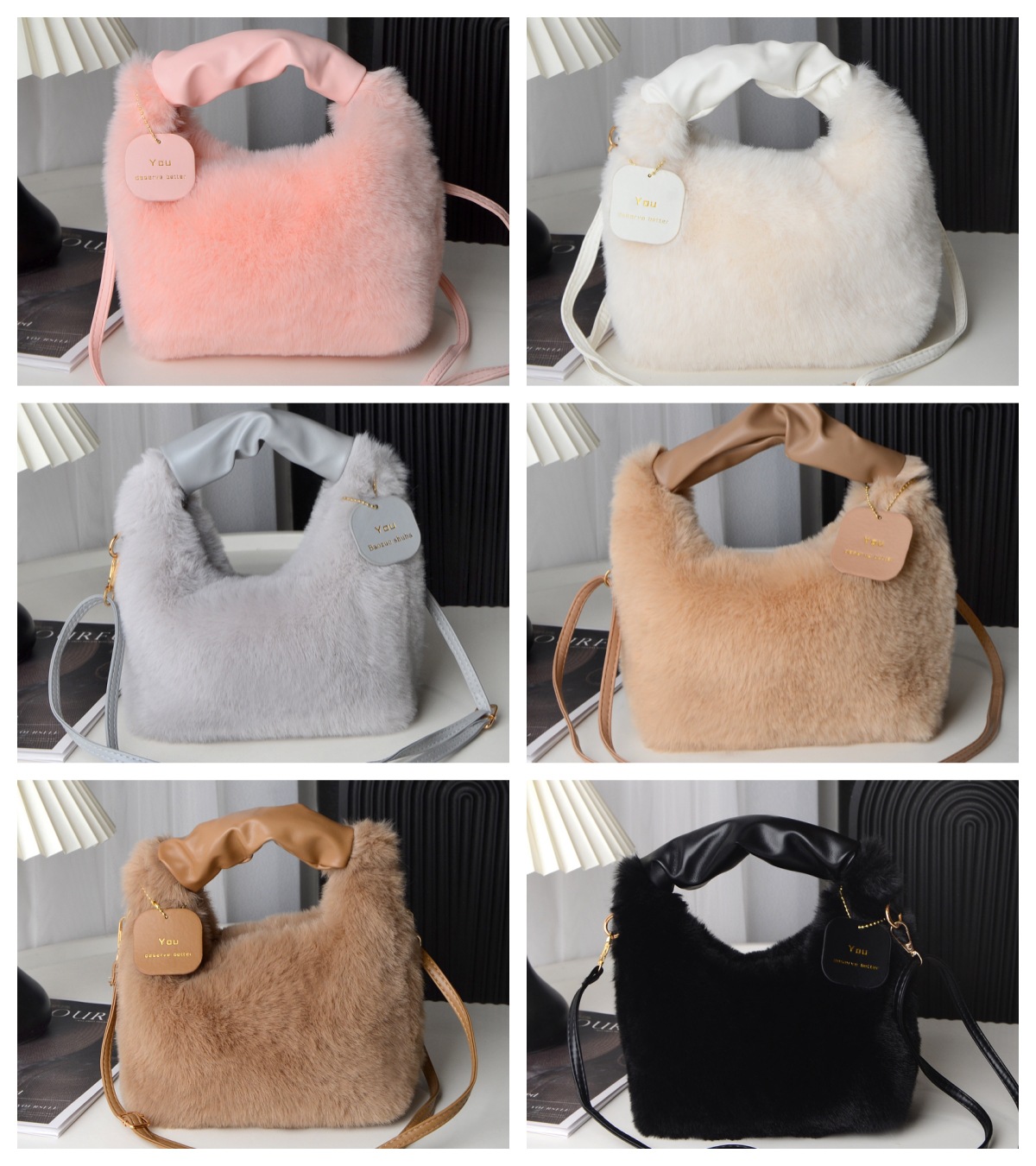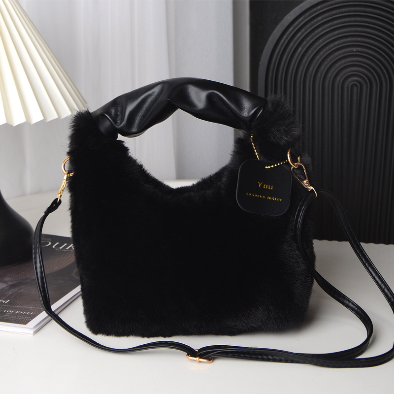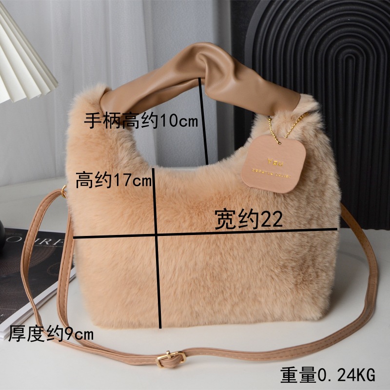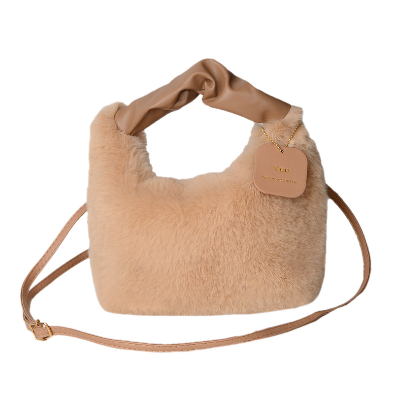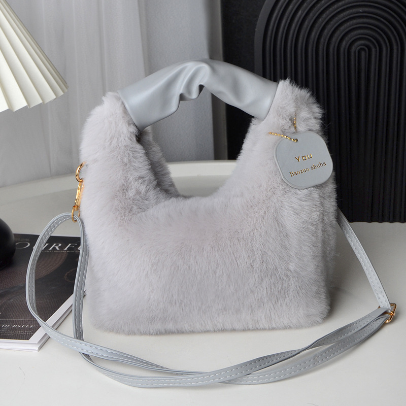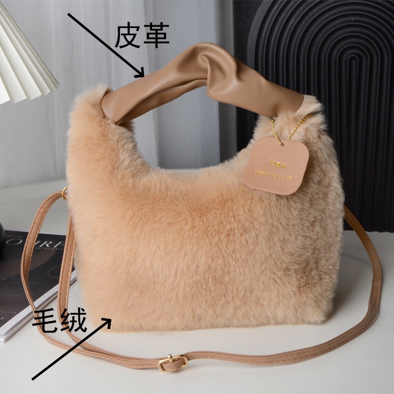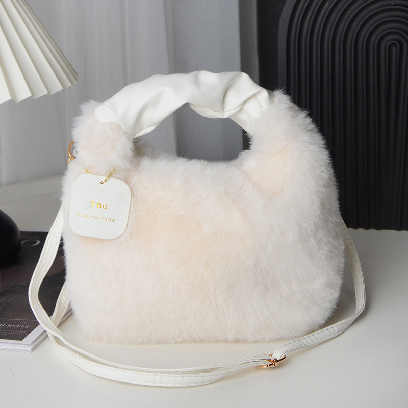 Tas wanita bulu palsu, tas selempang satu Bahu musim gugur dan musim dingin, tas wanita bulu palsu portabel Jinjing tangan imut