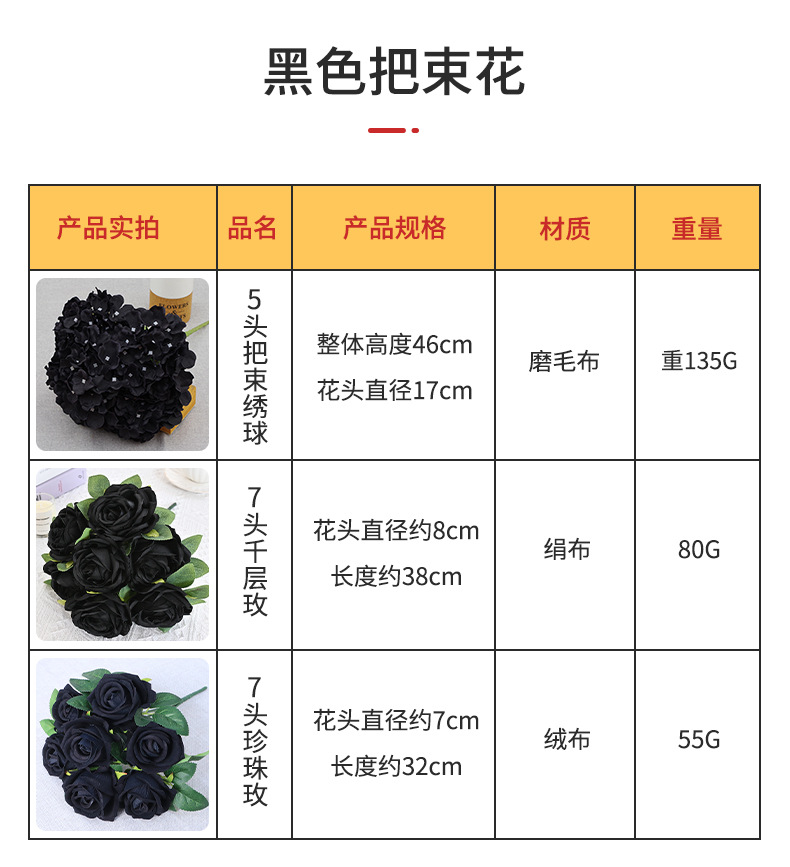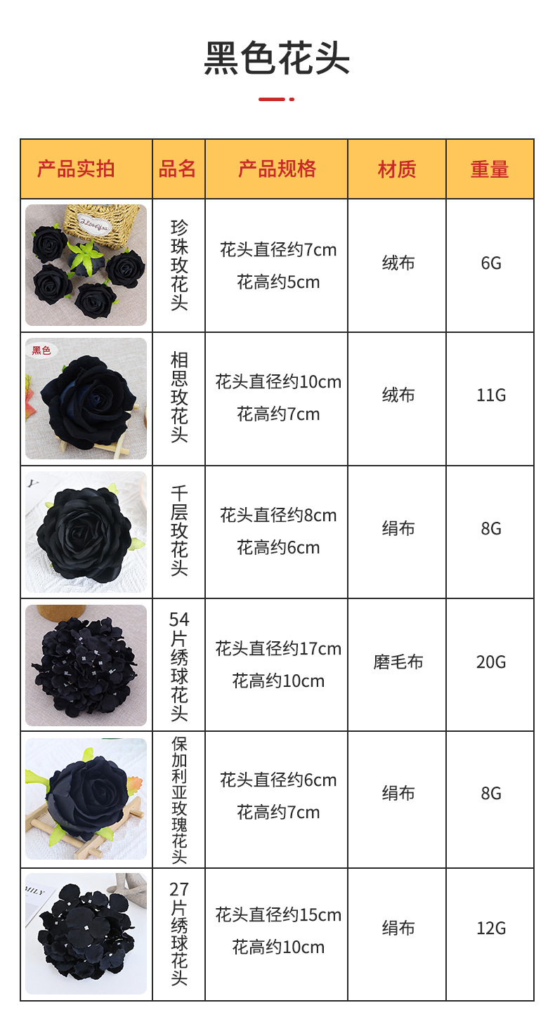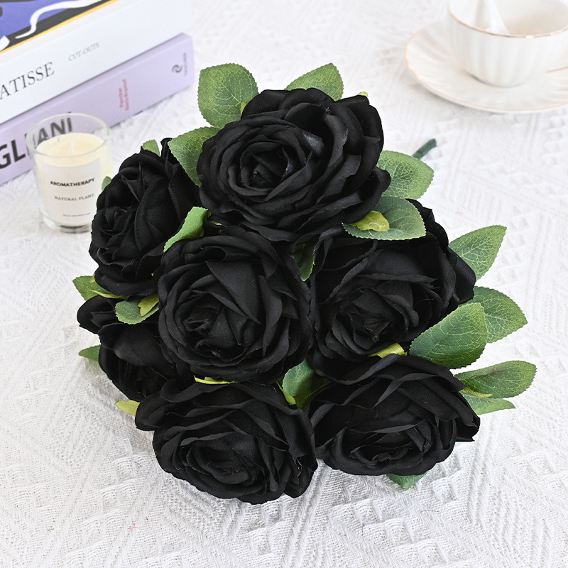Produsen grosir seri bunga artificial hitam hydrangea mawar hitam dekorasi Halloween perdagangan luar negeri lintas batas