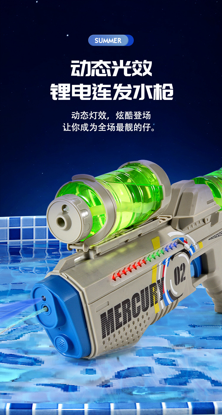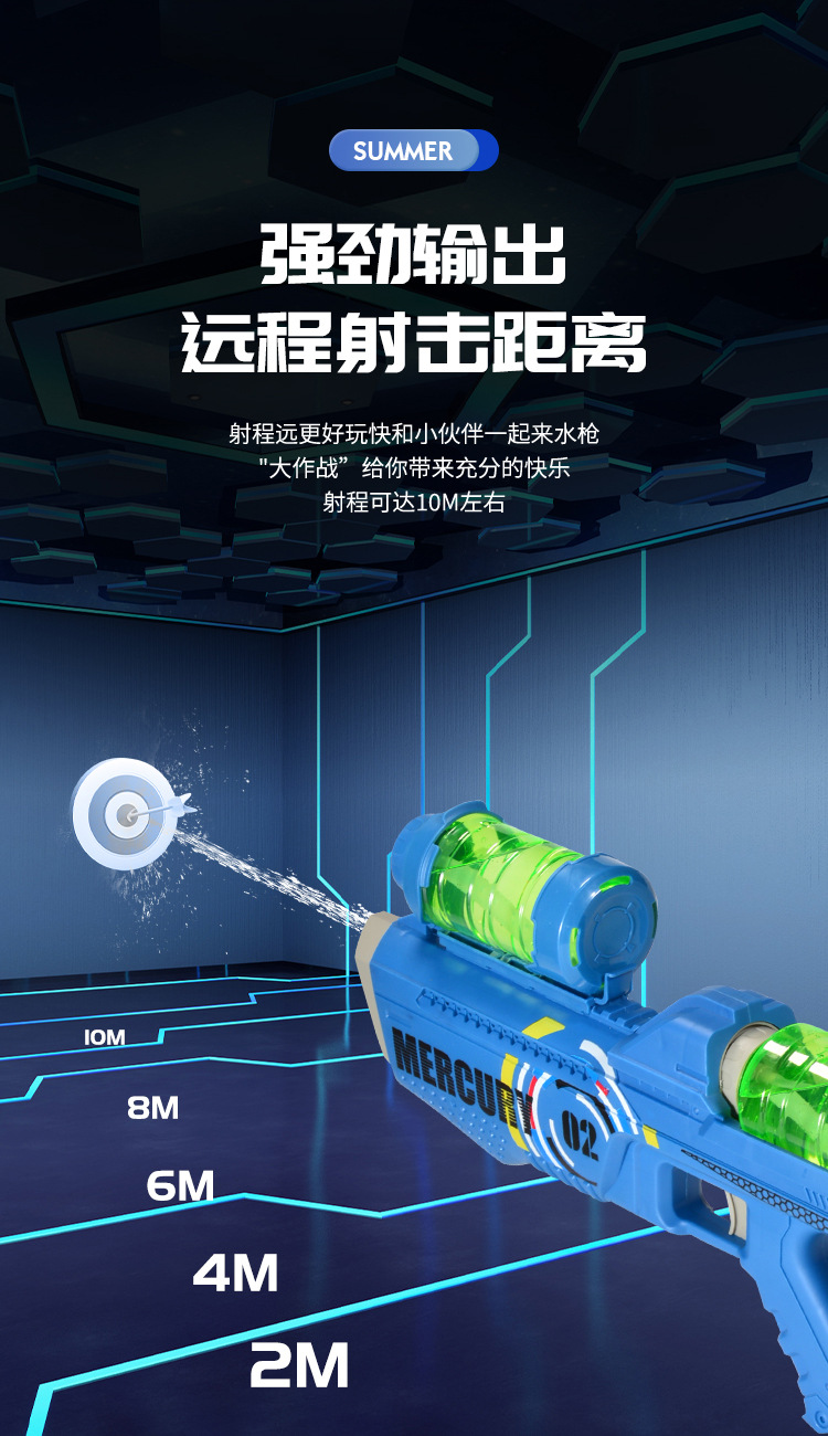Pistol semprot air otomatis kapasitas besar musim panas lampu mainan pistol rambut terus-menerus elektrik M2 merkuri besar lintas batas grosir