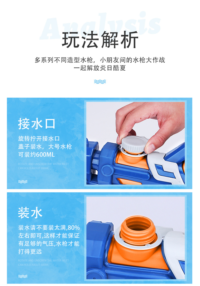 Semprotan air nosel ganda anak-anak, mainan pistol air tekanan tinggi, pistol air tarik keluar, artefak pertempuran air anak laki-laki