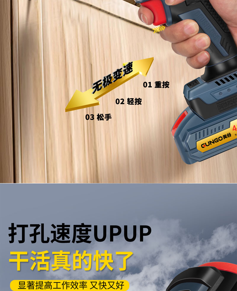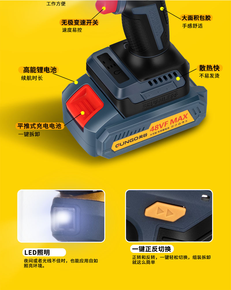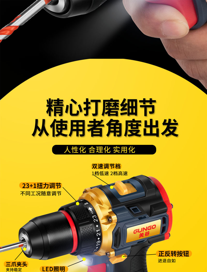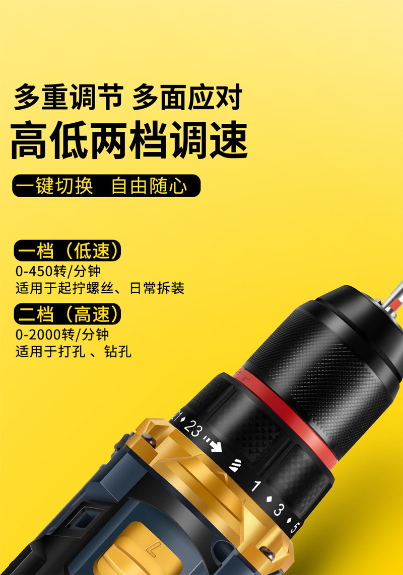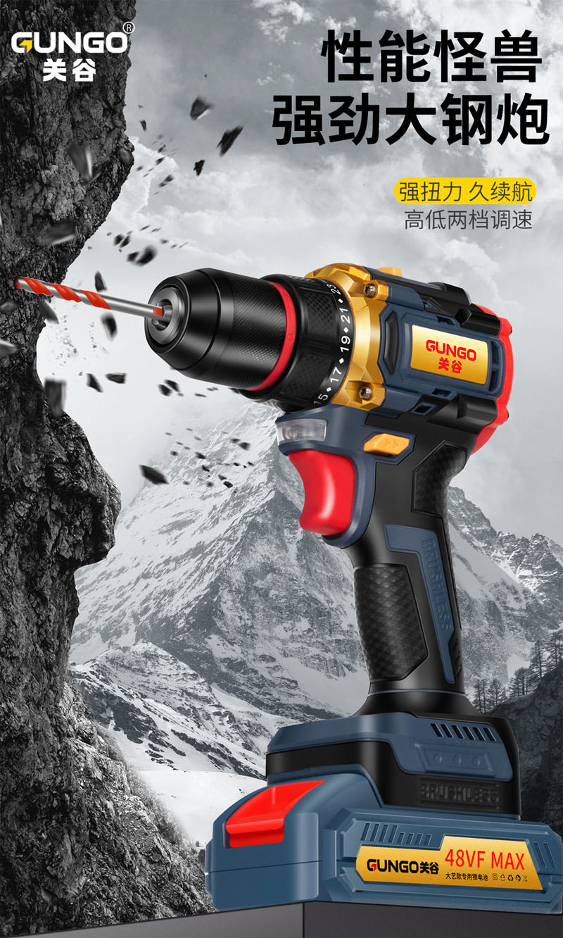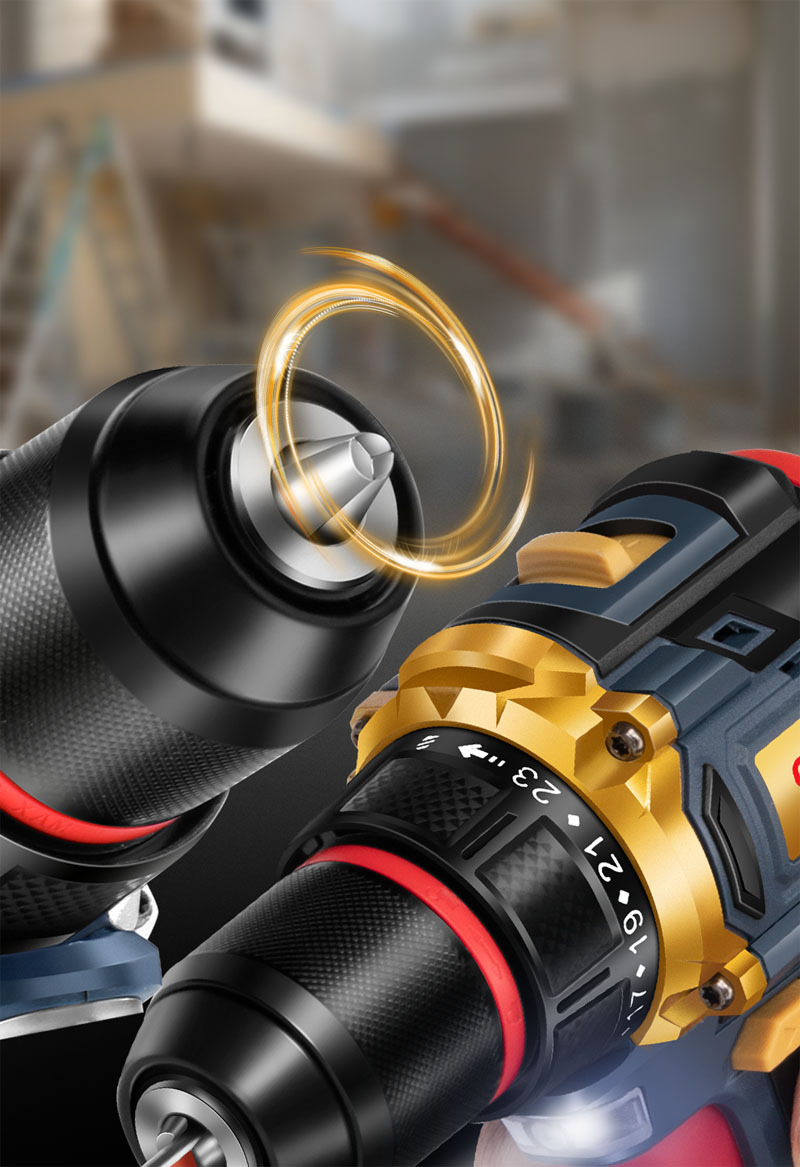 PT02 Pabrik 21V Brushless Brushless Drill dengan Impact Lintas Batas Khusus Nirkabel Kecepatan Ganda Tembaga Murni Lithium Bor Listrik