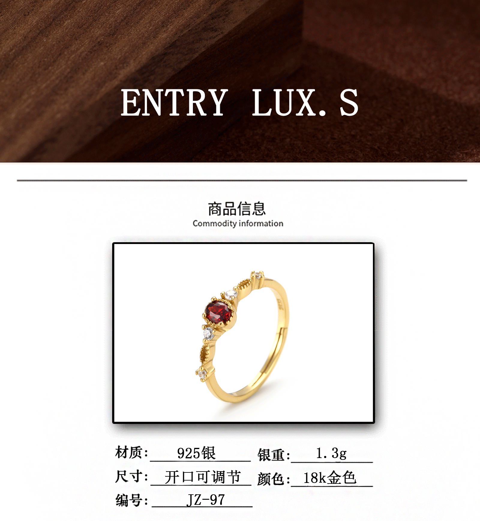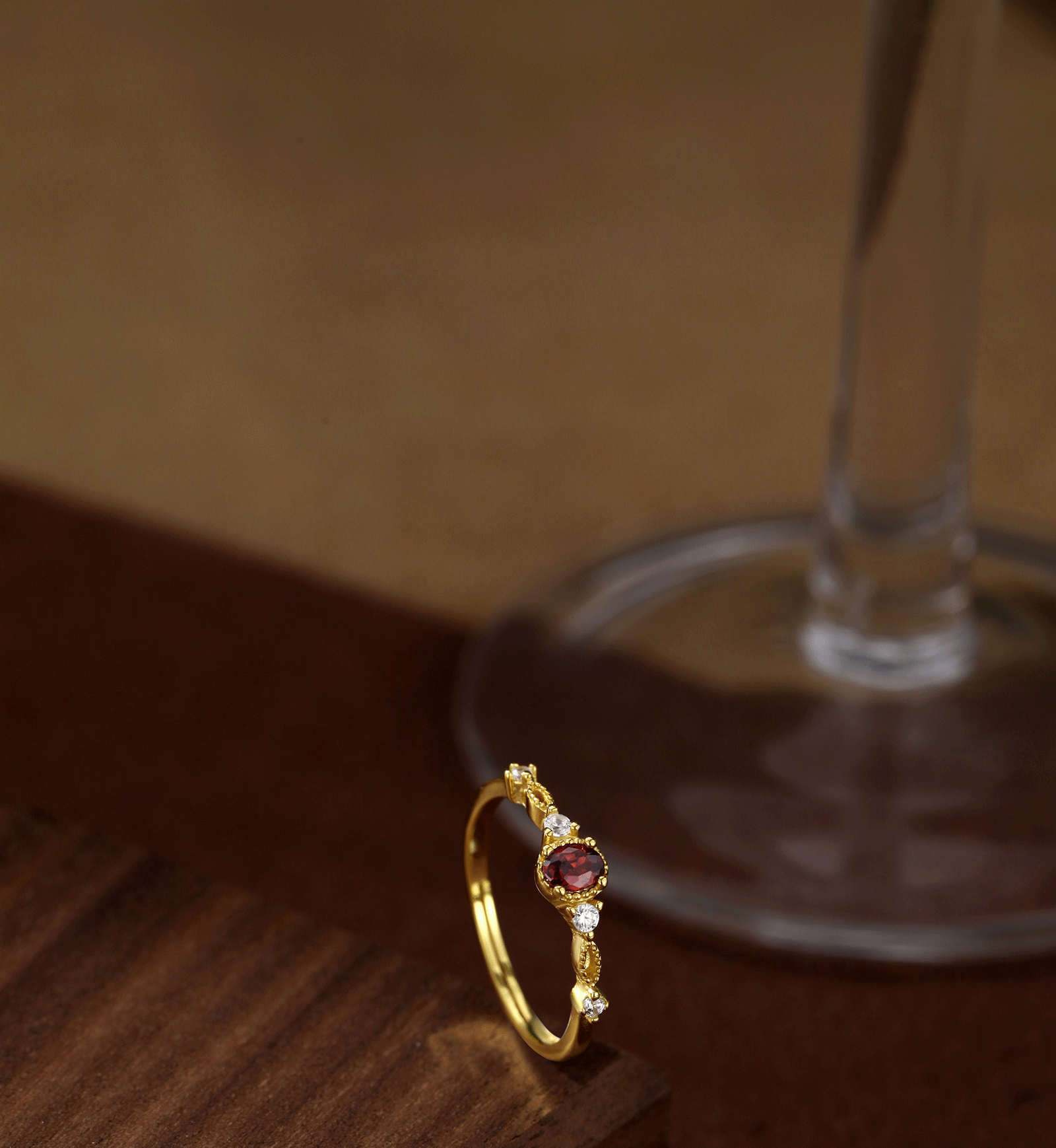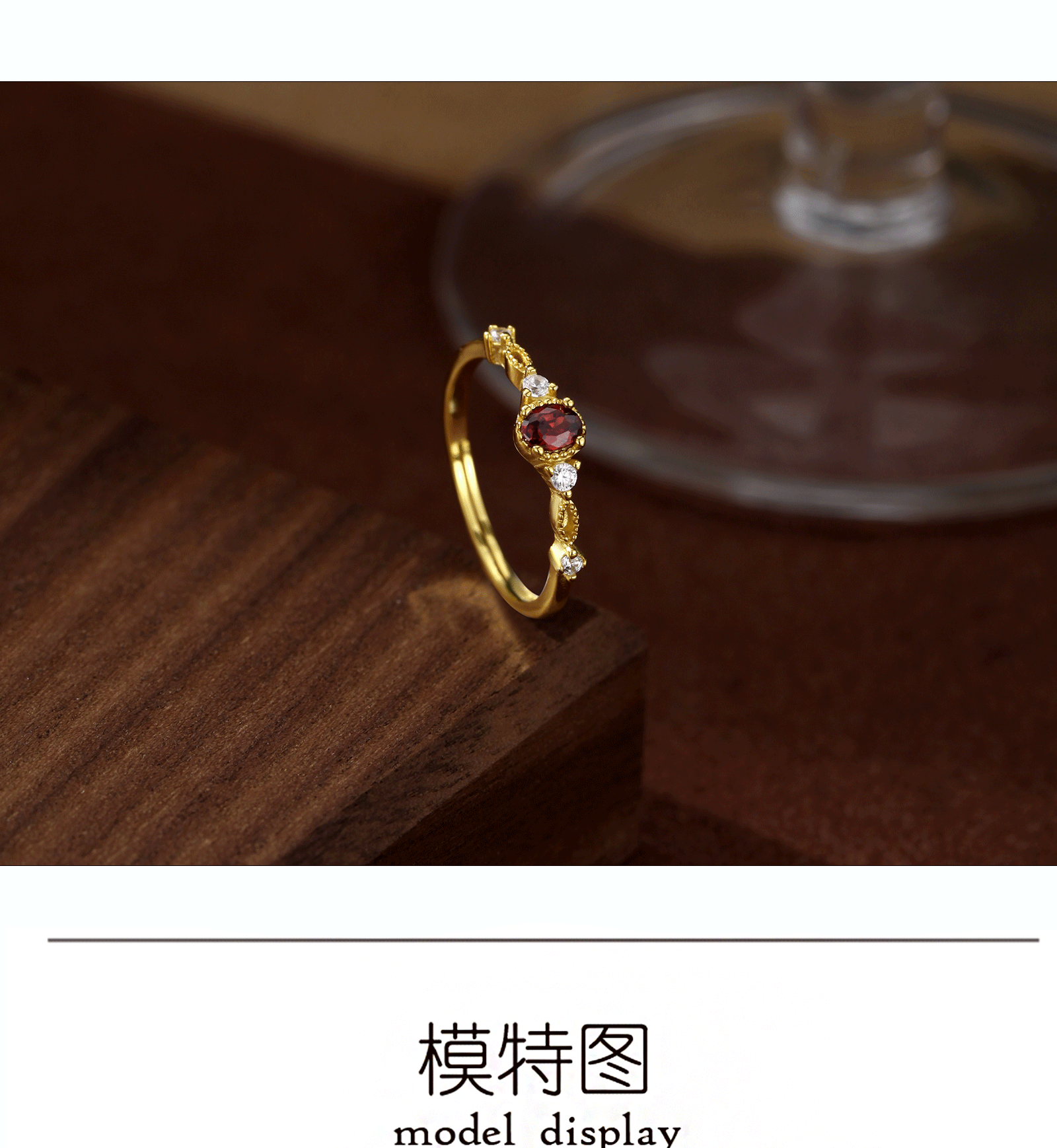 Desain ceruk mewah yang dapat diakses di Jepang Cincin garnet alami retro Seiko perak murni S925 memotong rasa geometris kelas atas