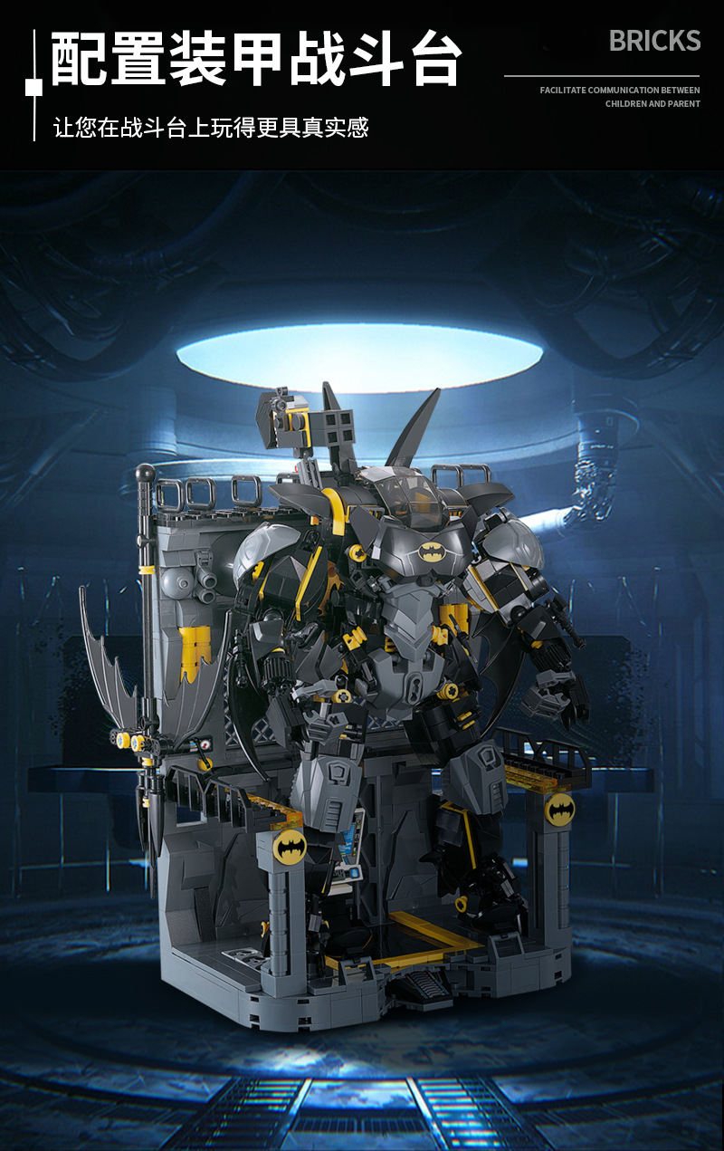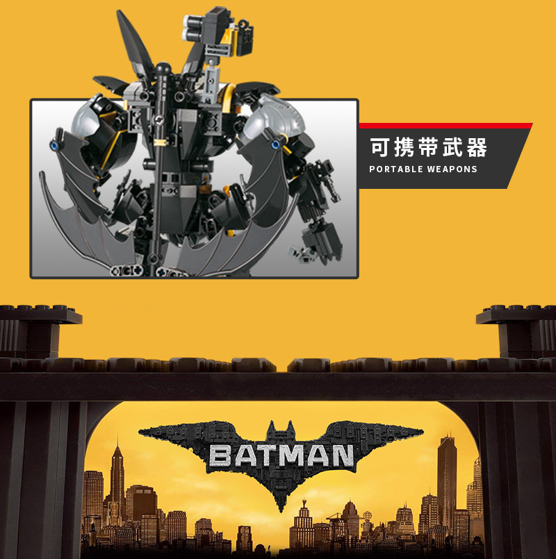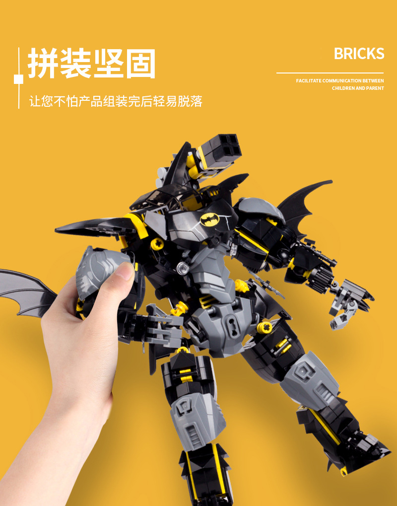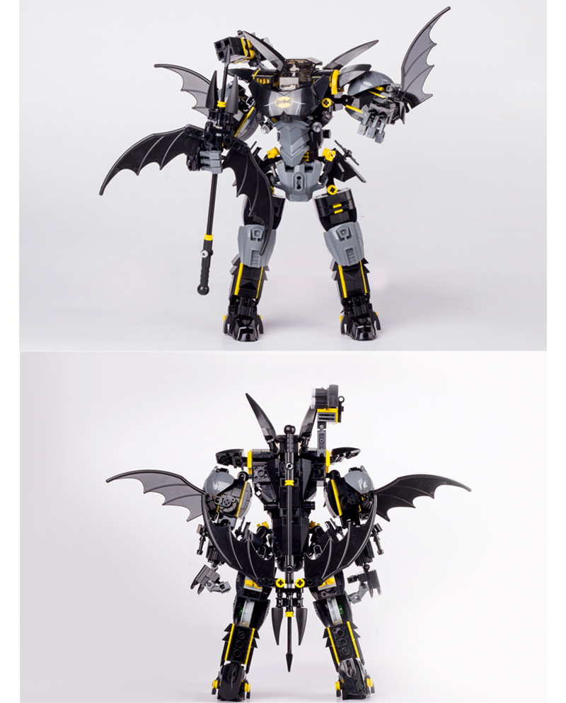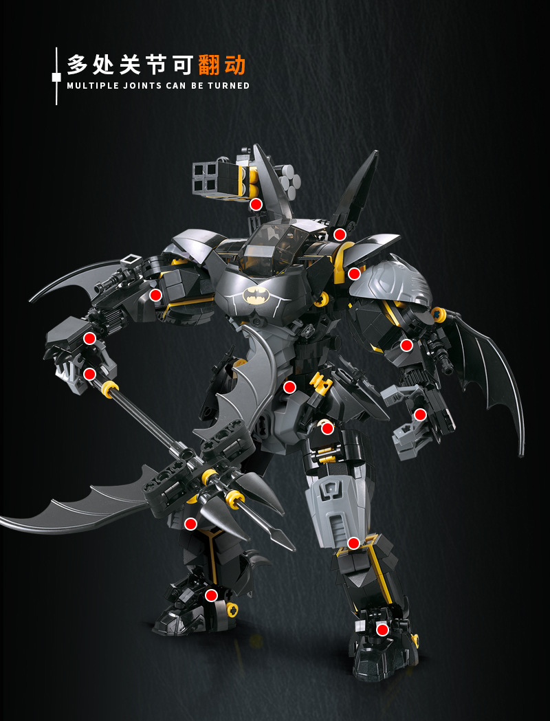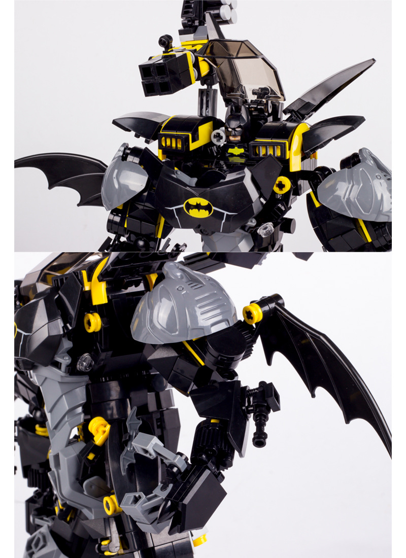 Blok Bangunan Buatan Dalam Negeri Elemen Batu Bata Hitam Batman Mech Robot Model Plastik Rakitan Blok Bangunan Mainan Hadiah