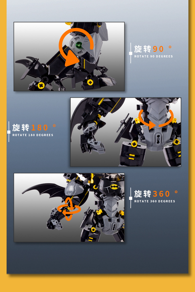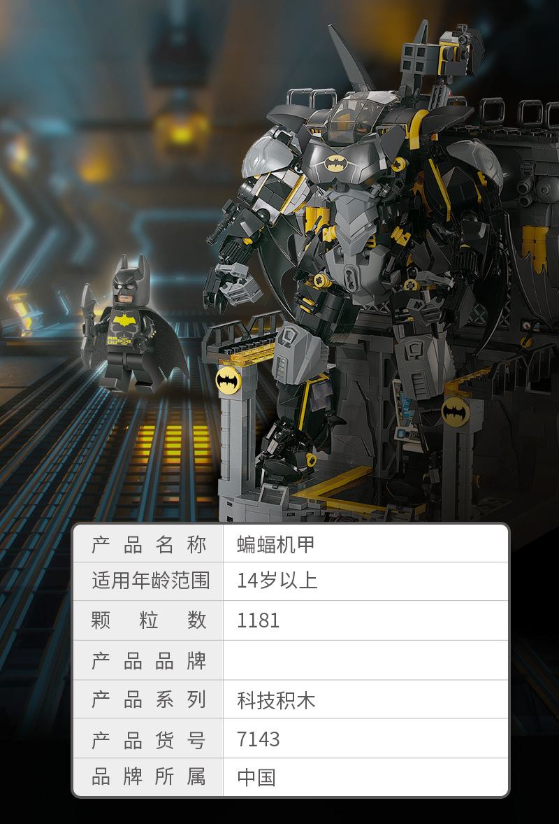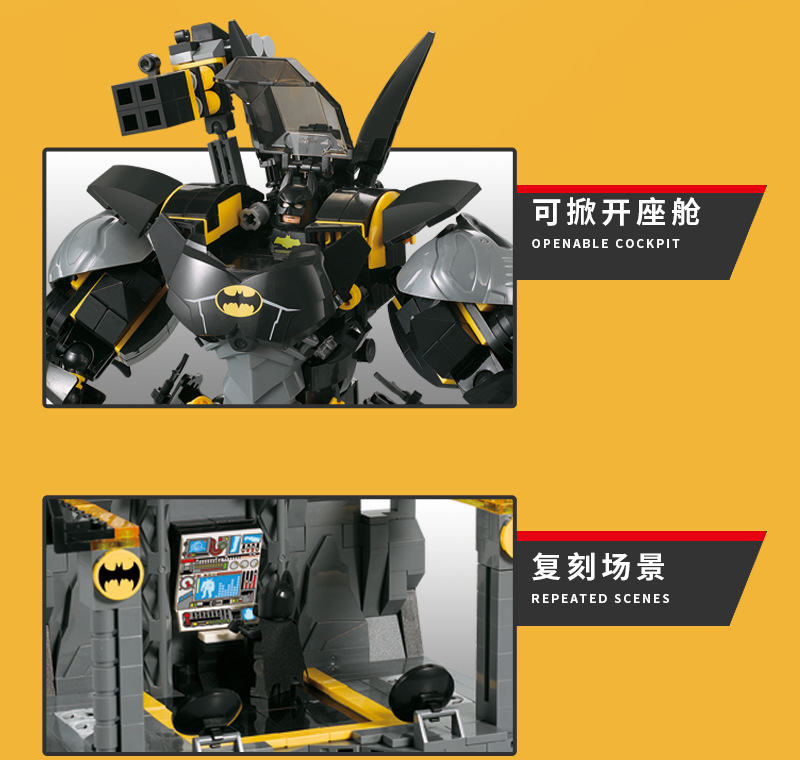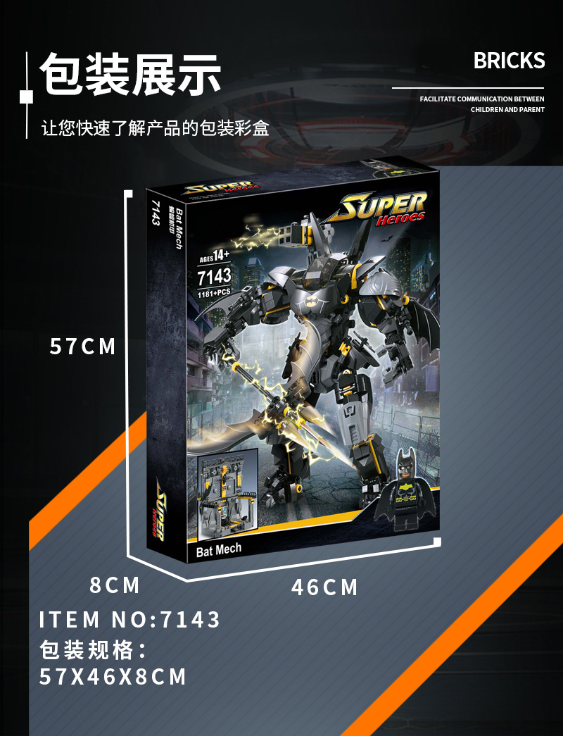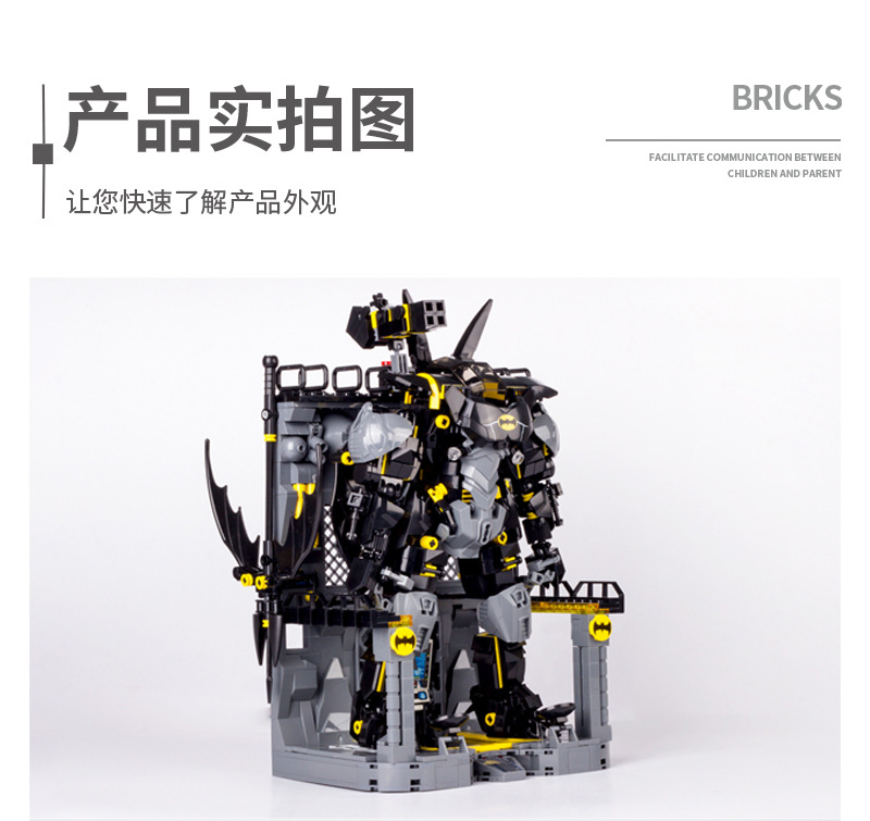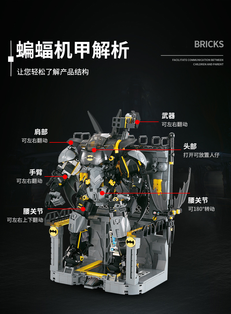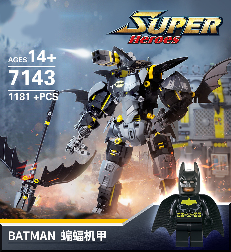 Blok Bangunan Buatan Dalam Negeri Elemen Batu Bata Hitam Batman Mech Robot Model Plastik Rakitan Blok Bangunan Mainan Hadiah