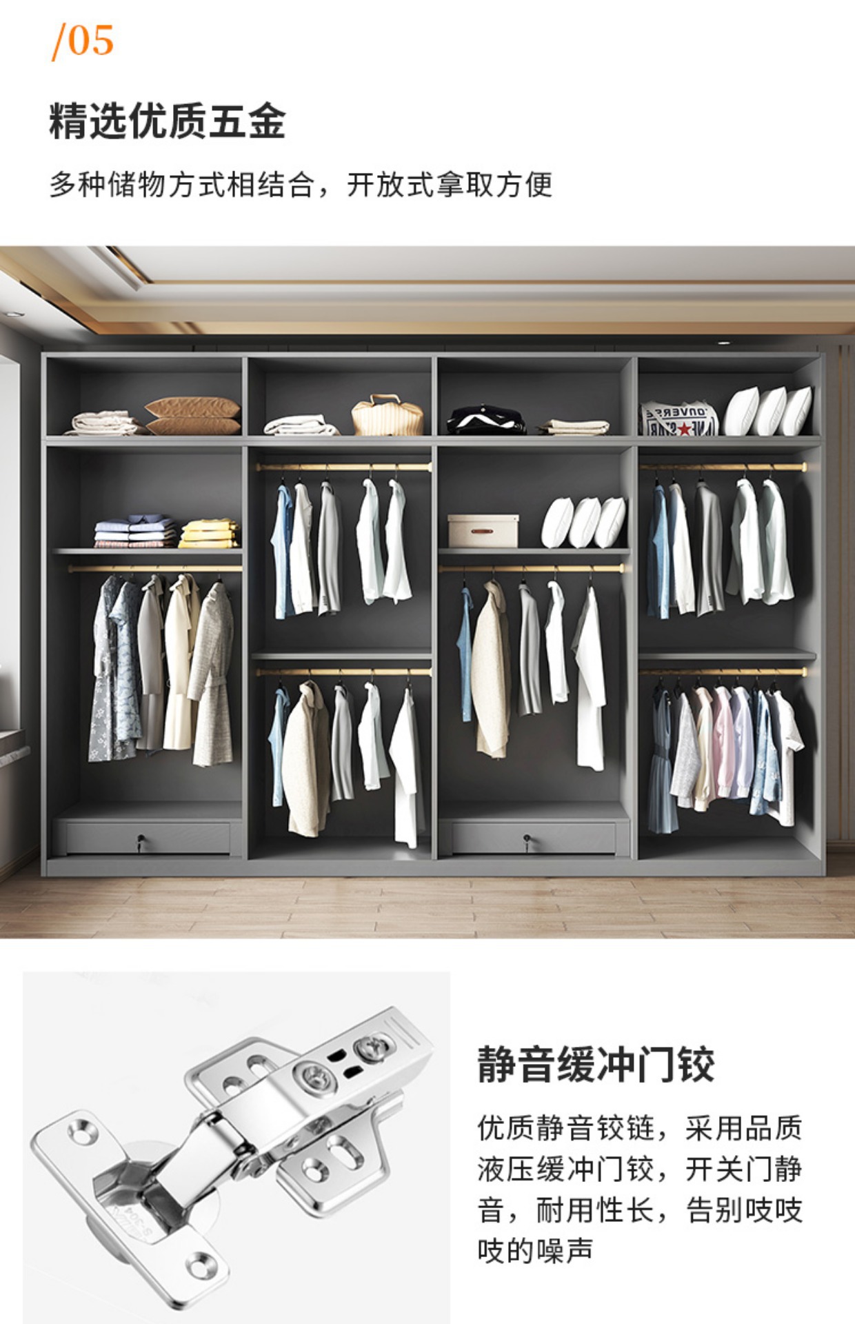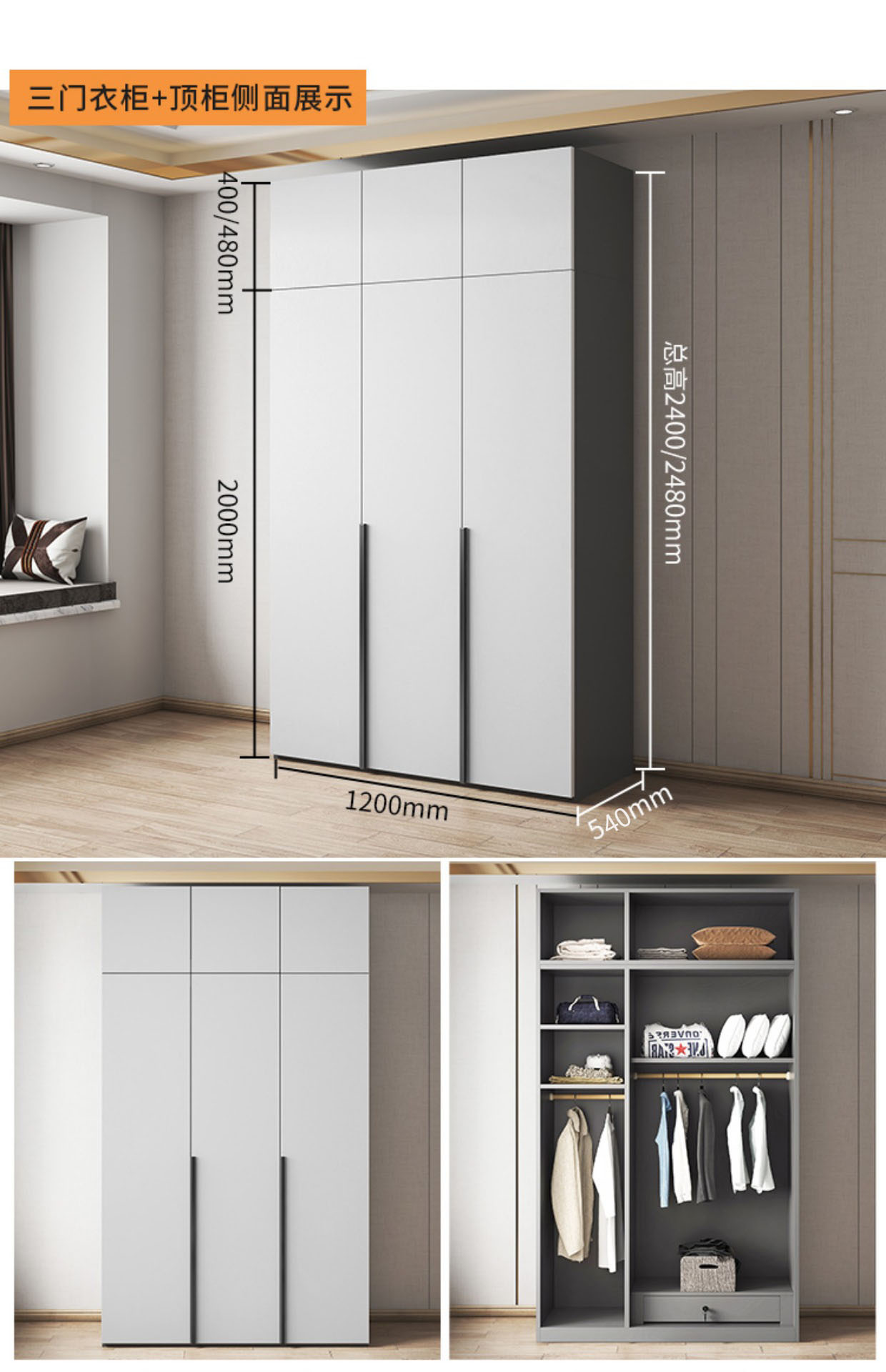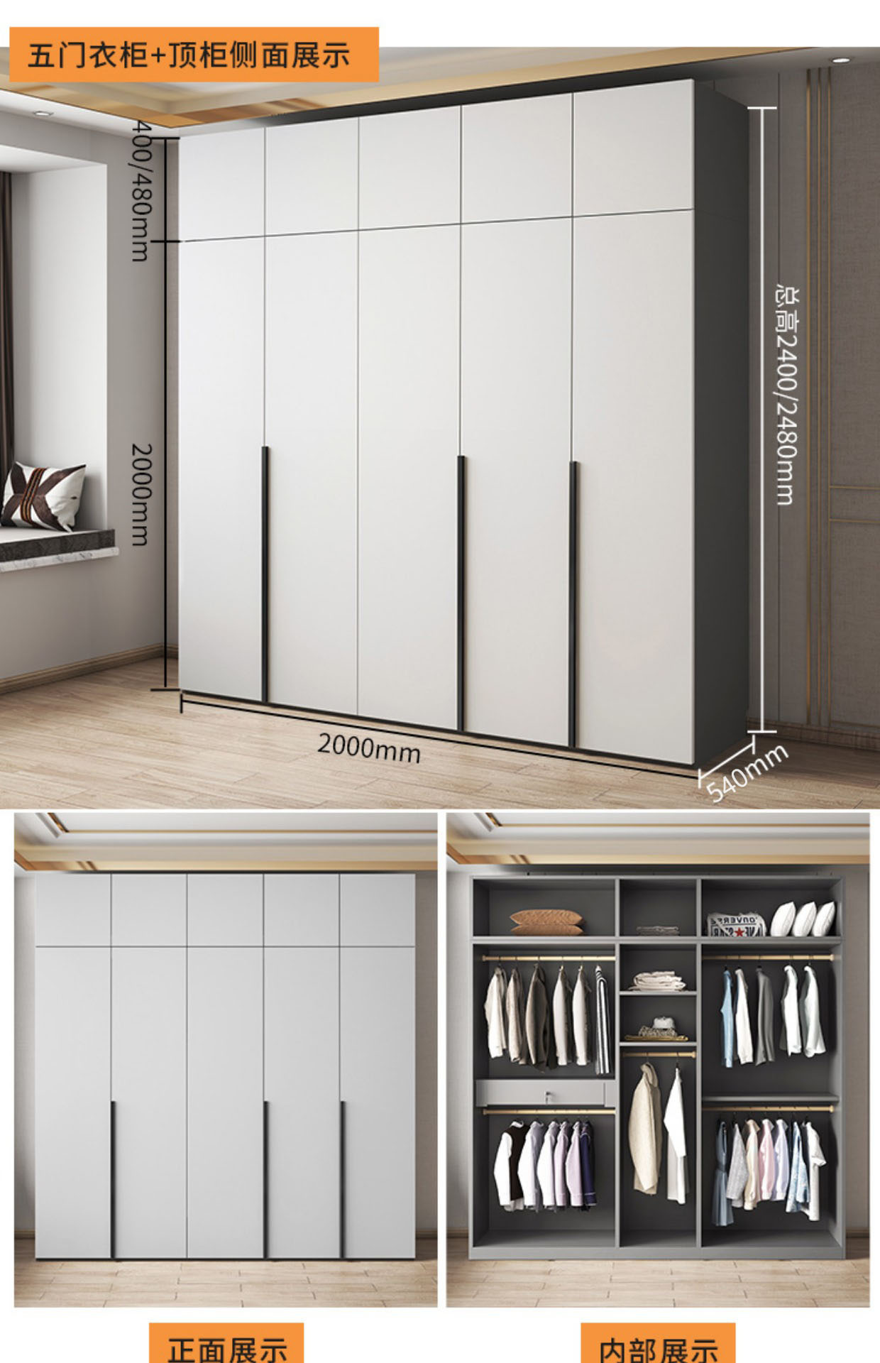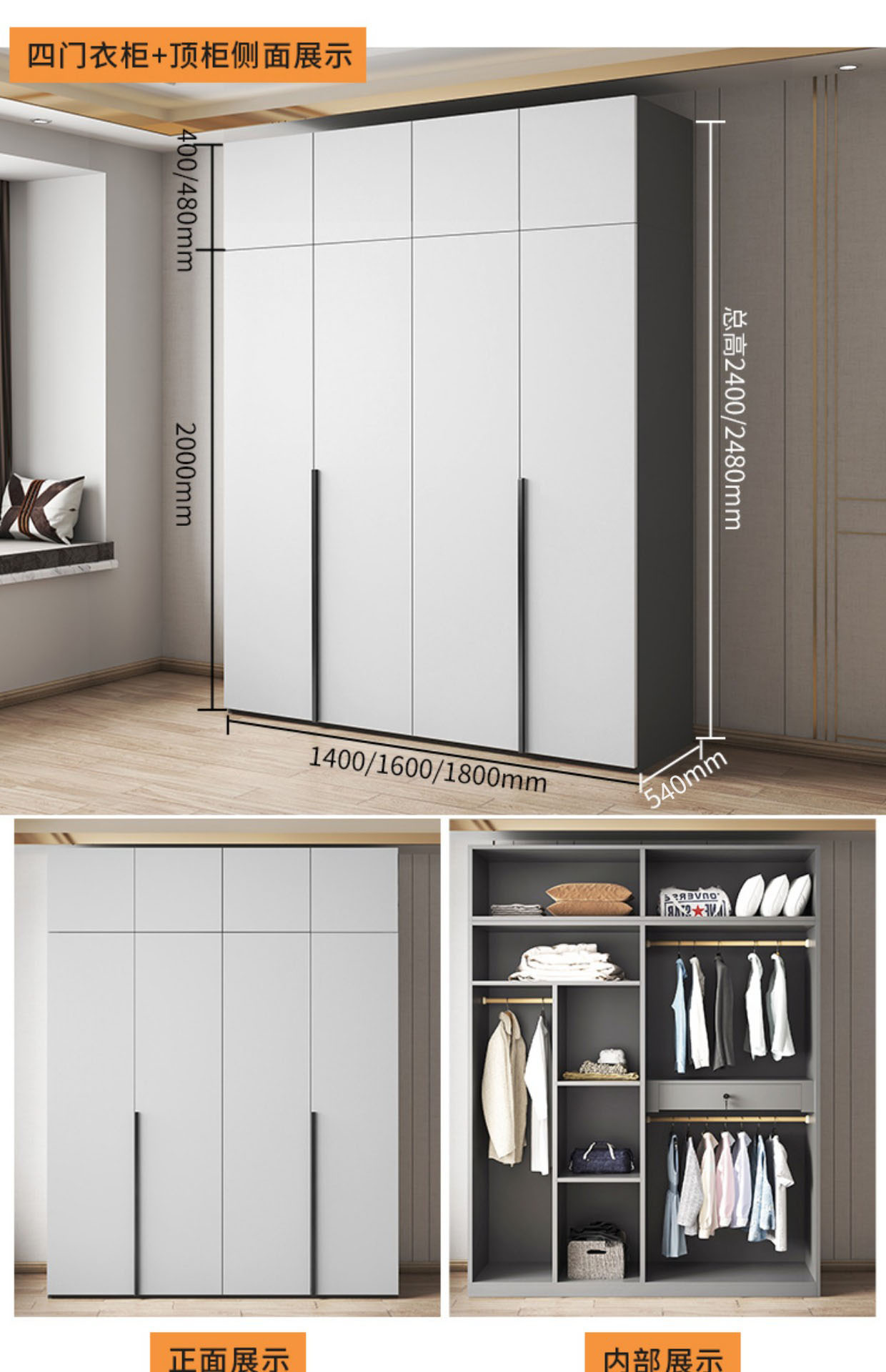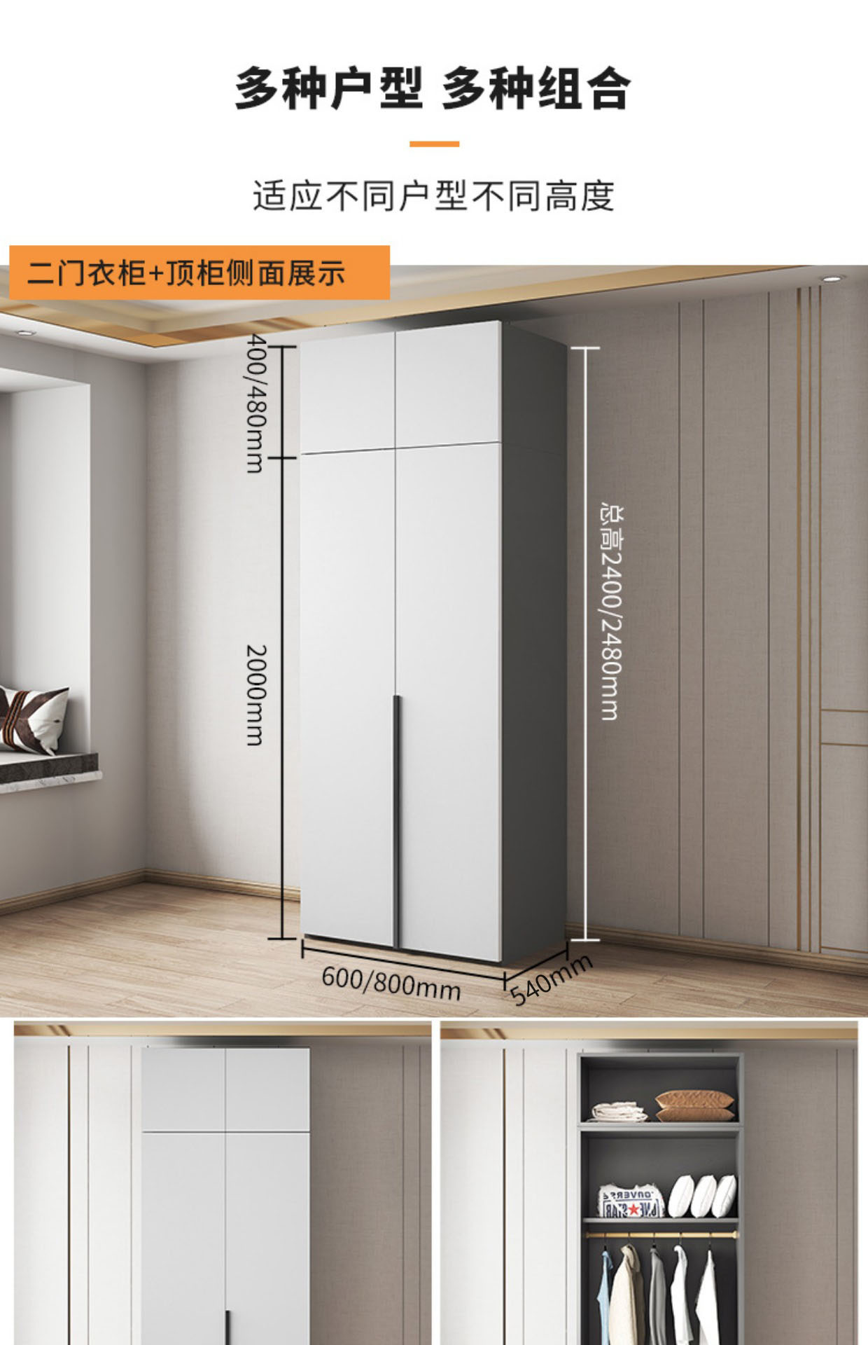 Lemari pakaian siap pakai untuk kamar tidur, gaya minimalis, pintu terbuka, papan partikel kayu solid, lemari putih, lemari penyimpanan, desain sederhana.