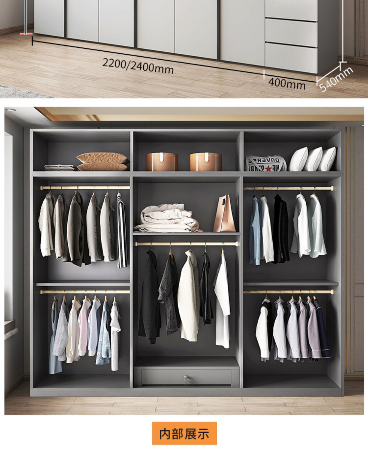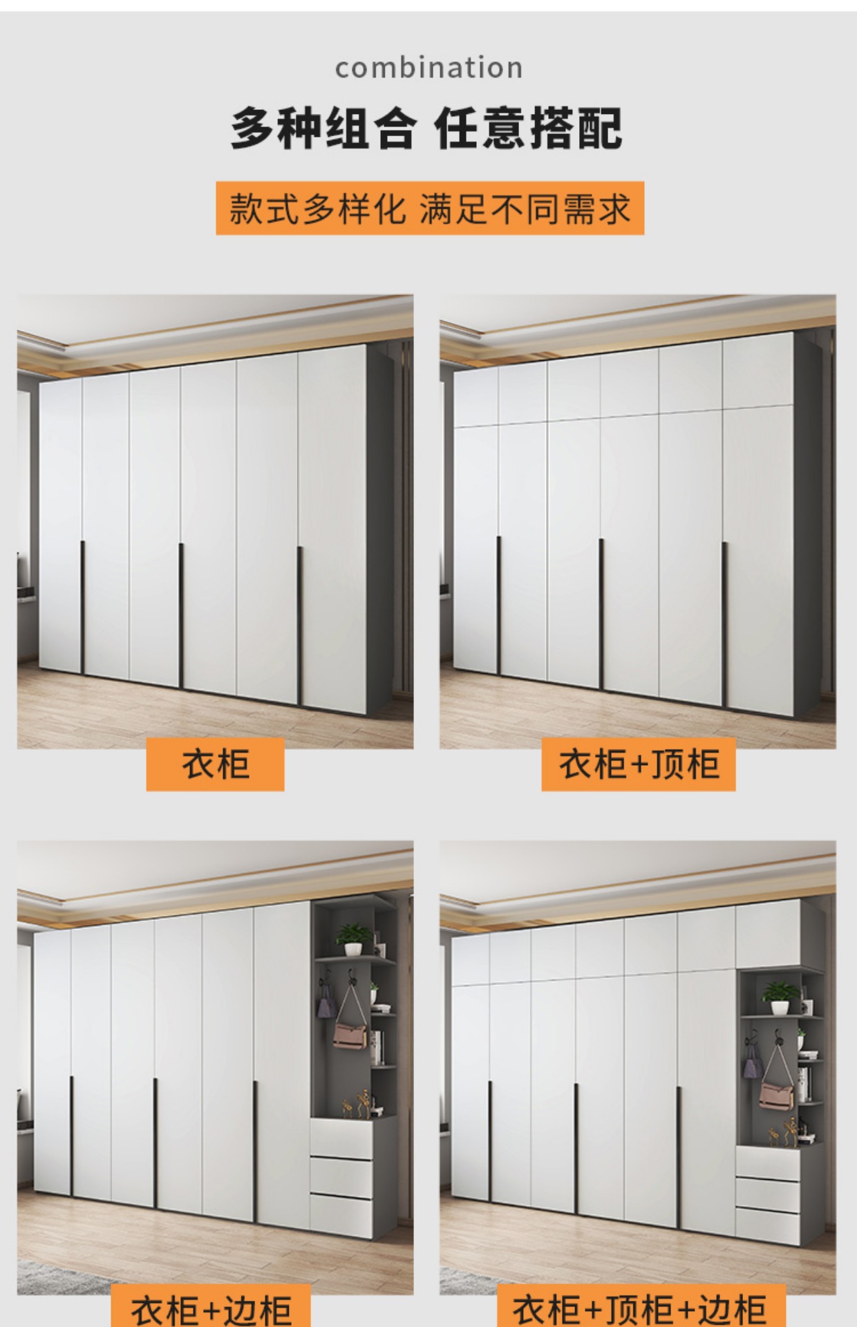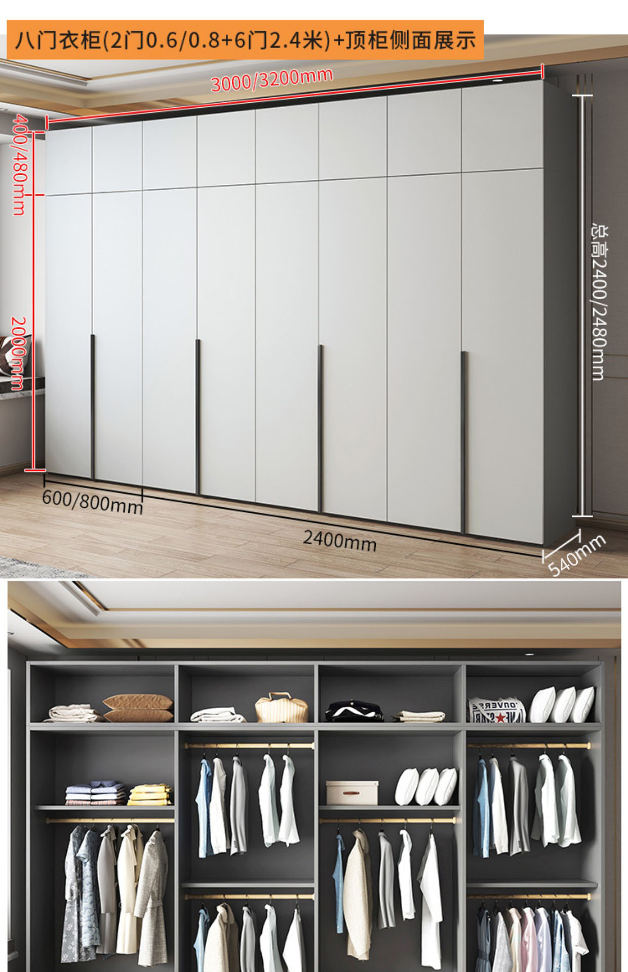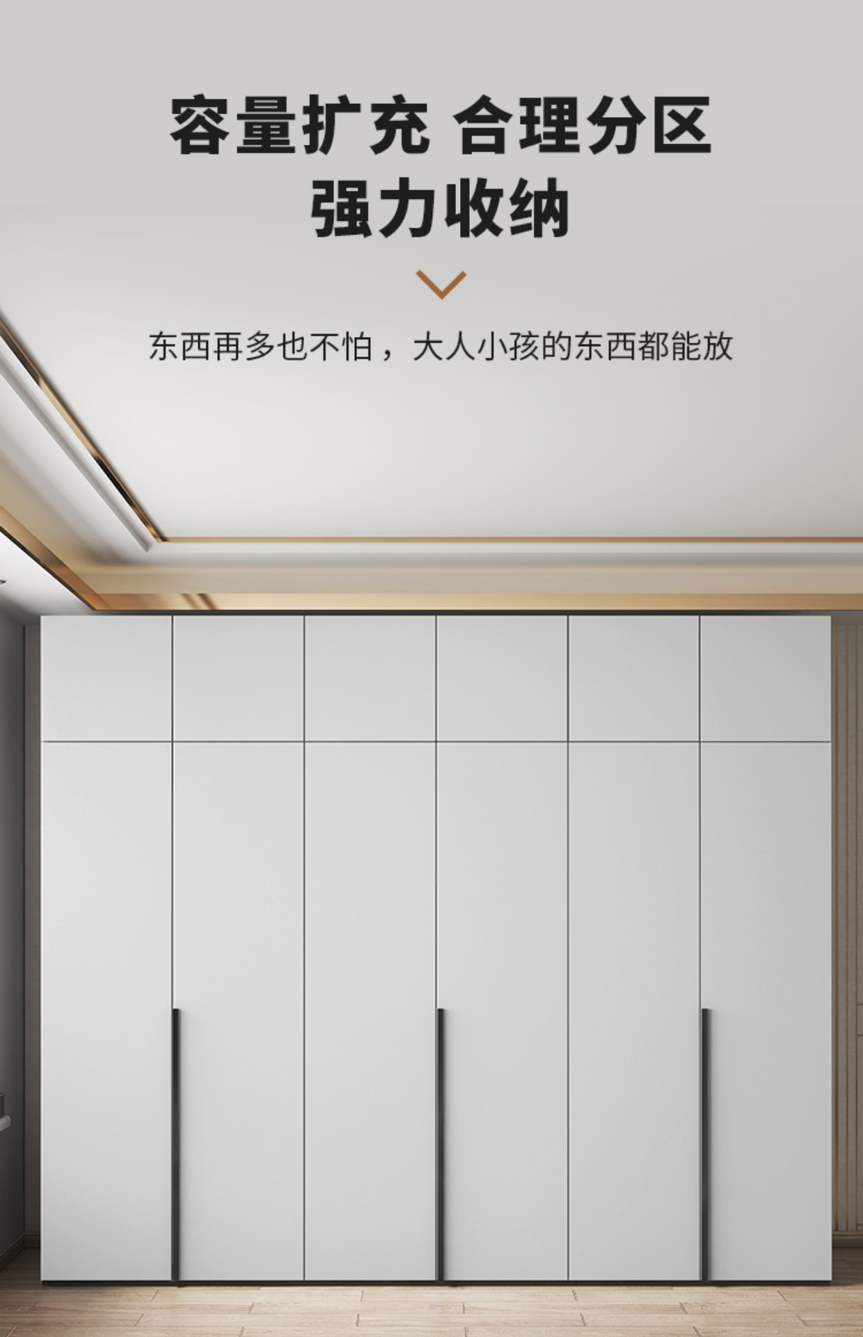 Lemari pakaian siap pakai untuk kamar tidur, gaya minimalis, pintu terbuka, papan partikel kayu solid, lemari putih, lemari penyimpanan, desain sederhana.