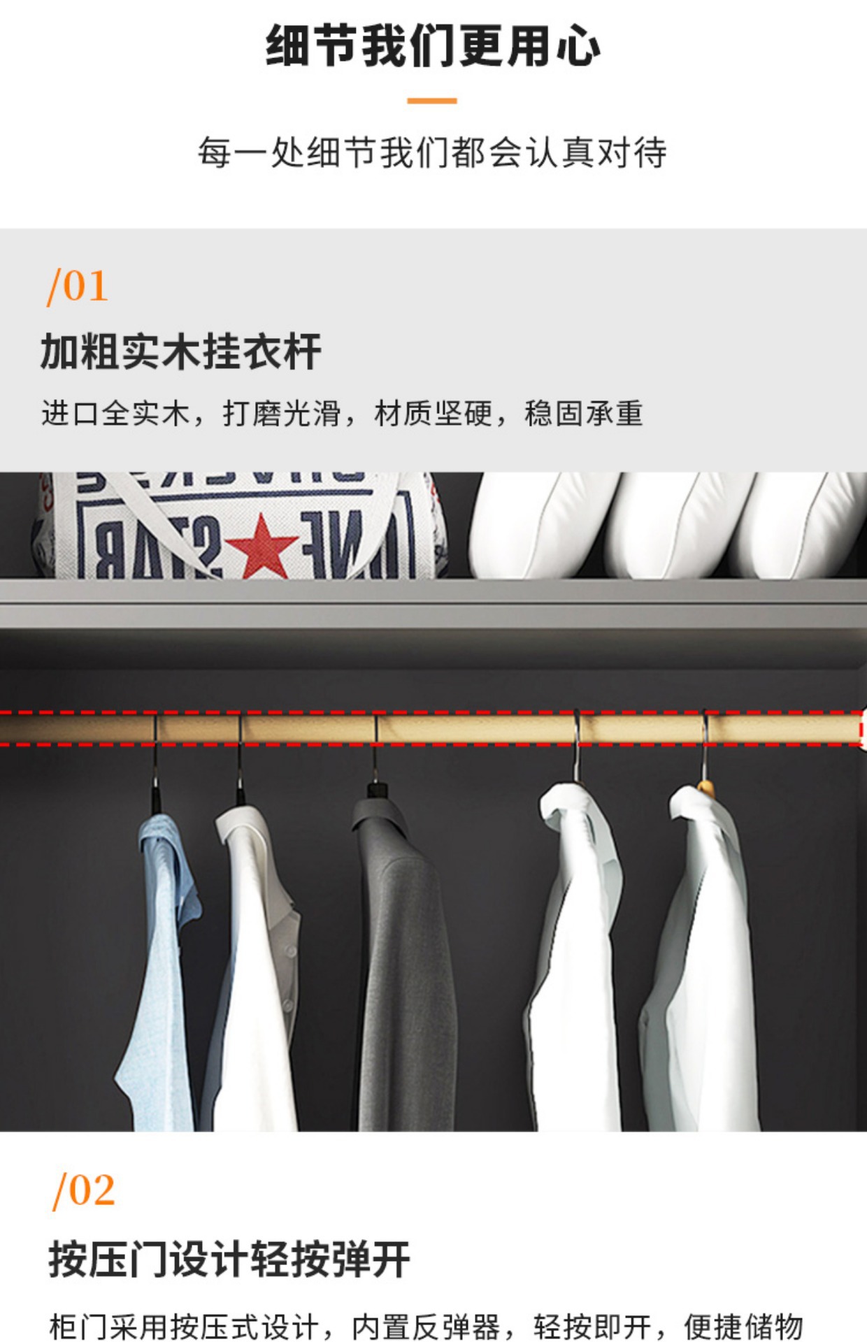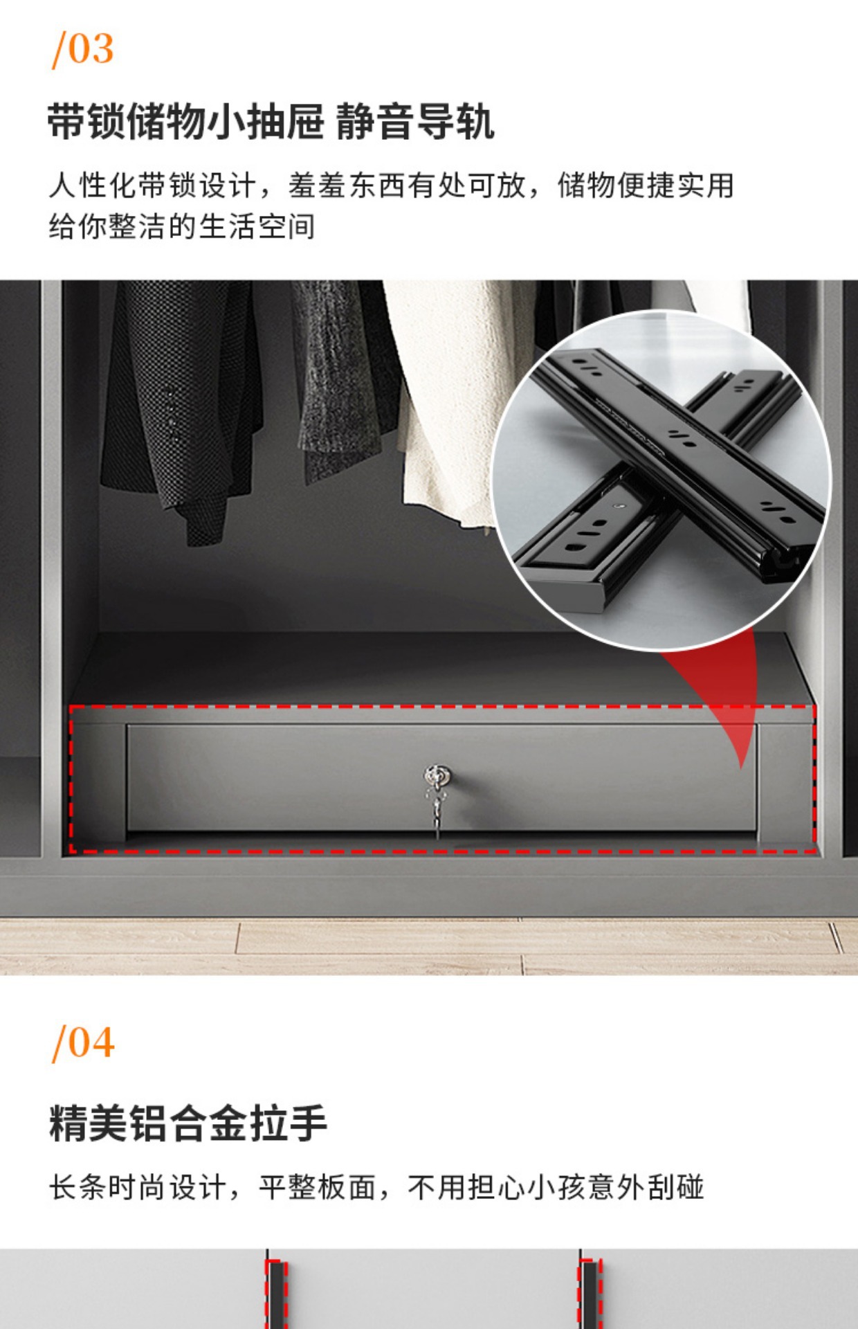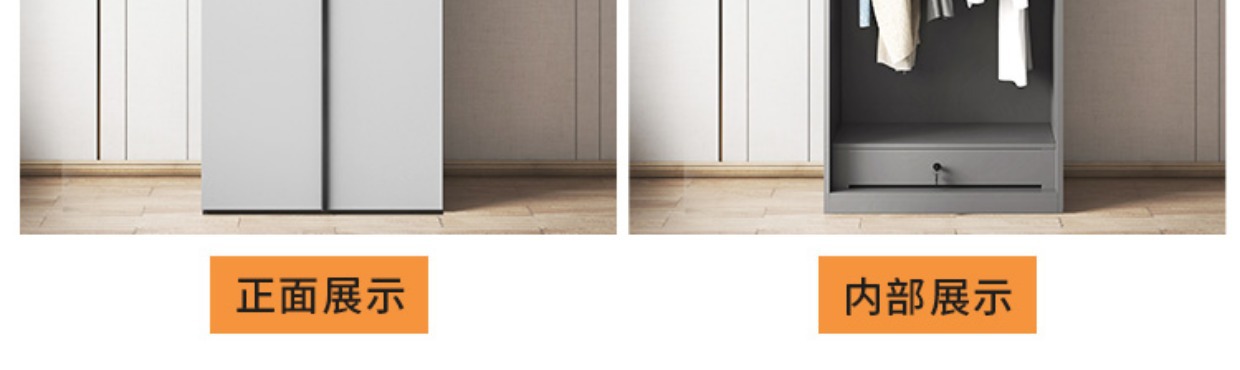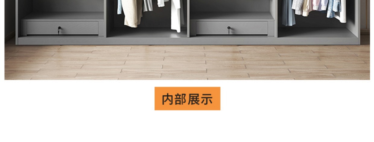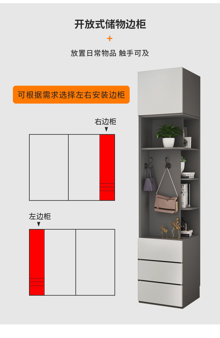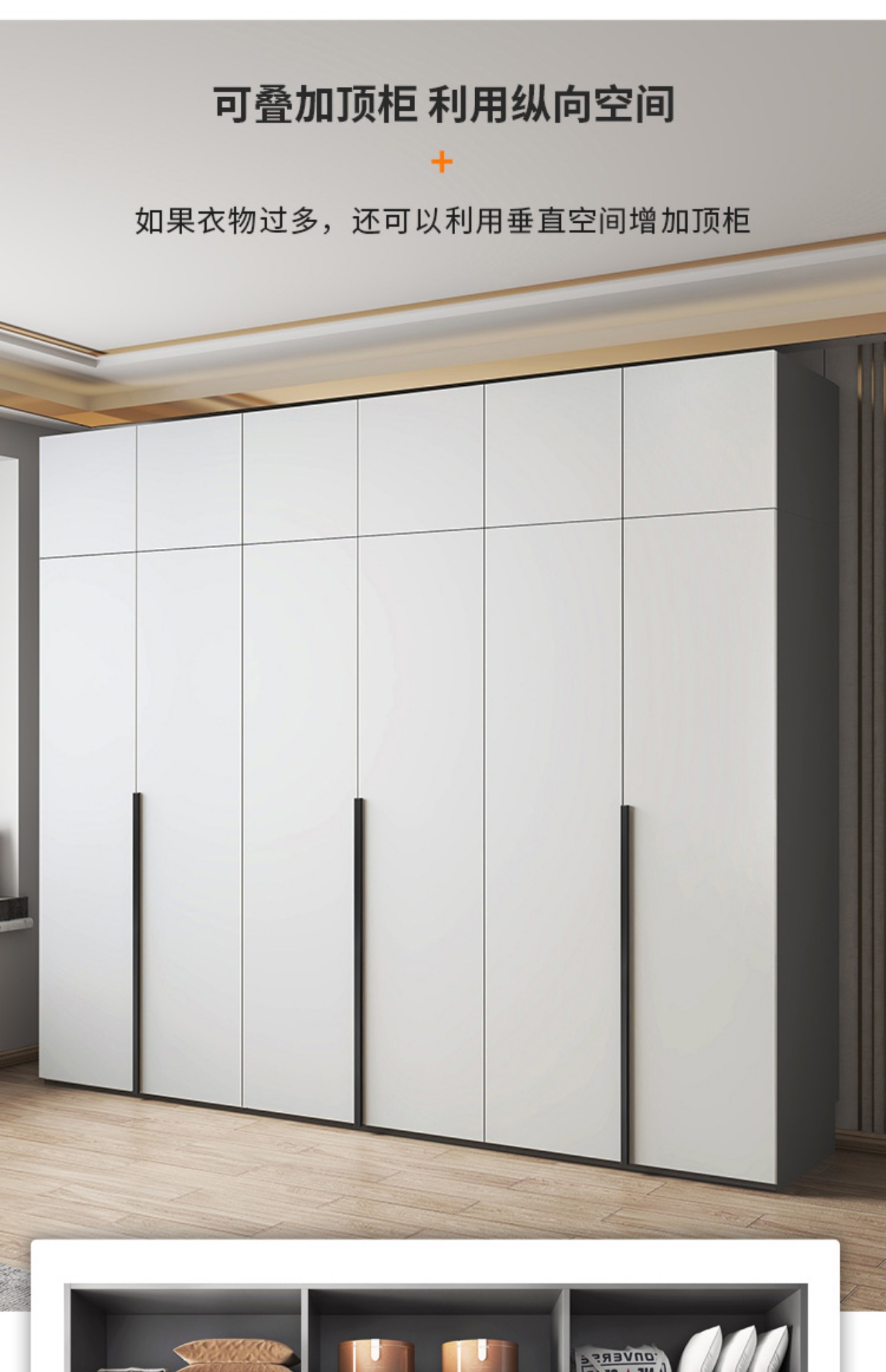 Lemari pakaian siap pakai untuk kamar tidur, gaya minimalis, pintu terbuka, papan partikel kayu solid, lemari putih, lemari penyimpanan, desain sederhana.